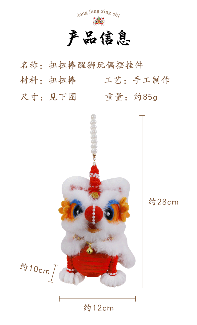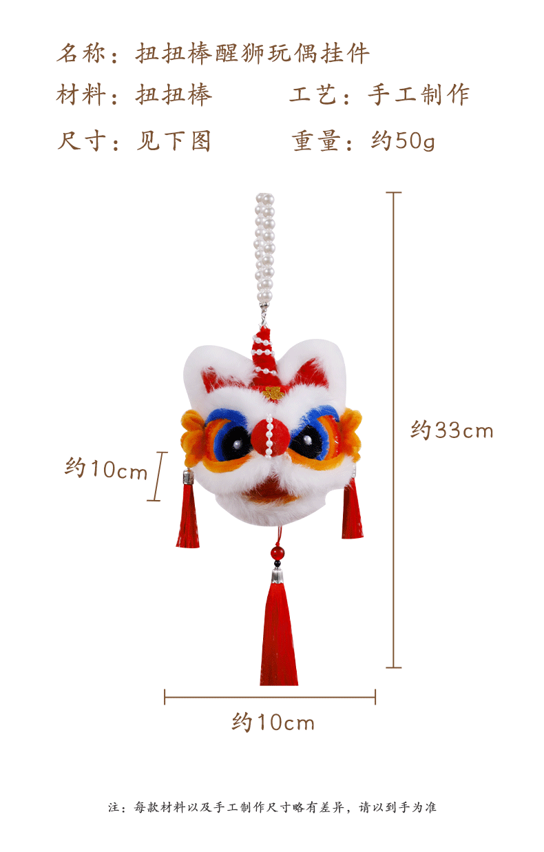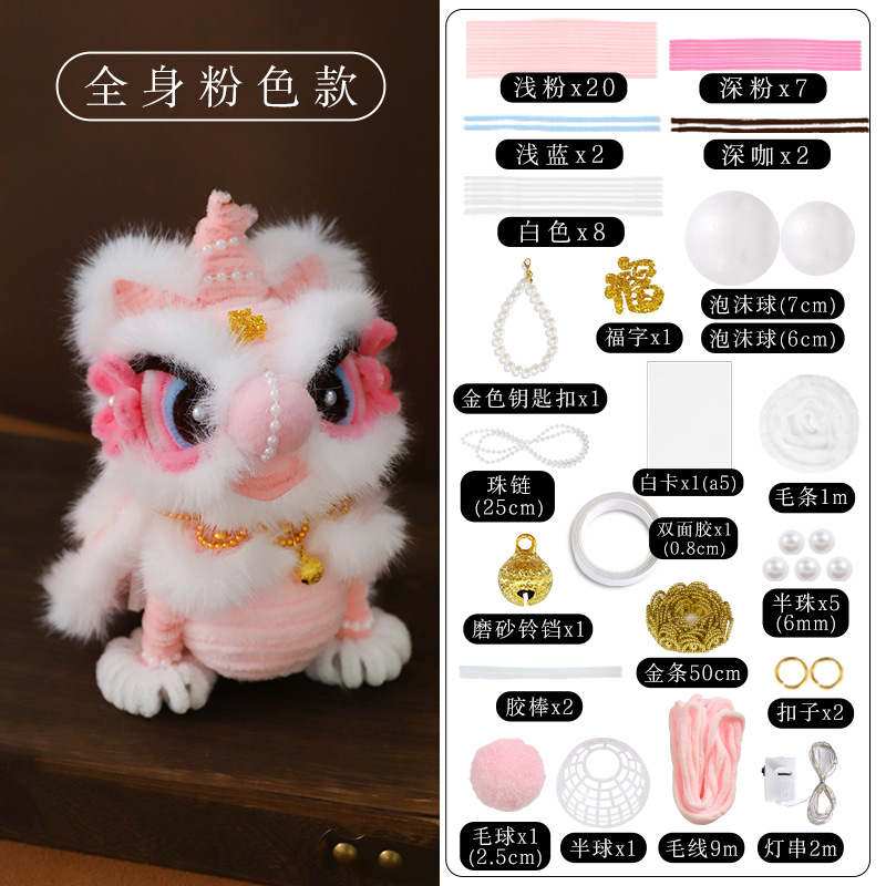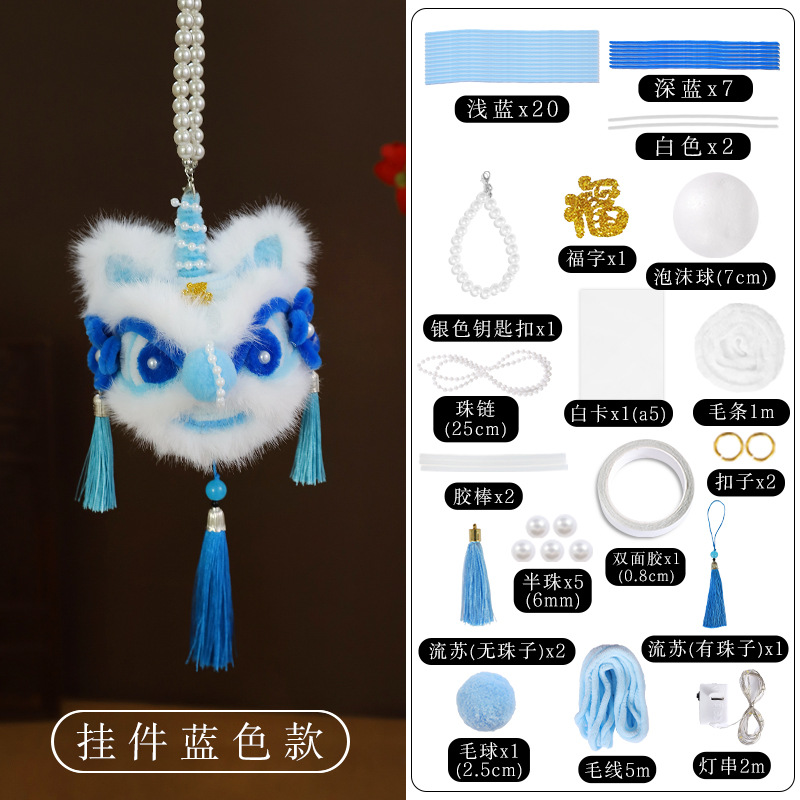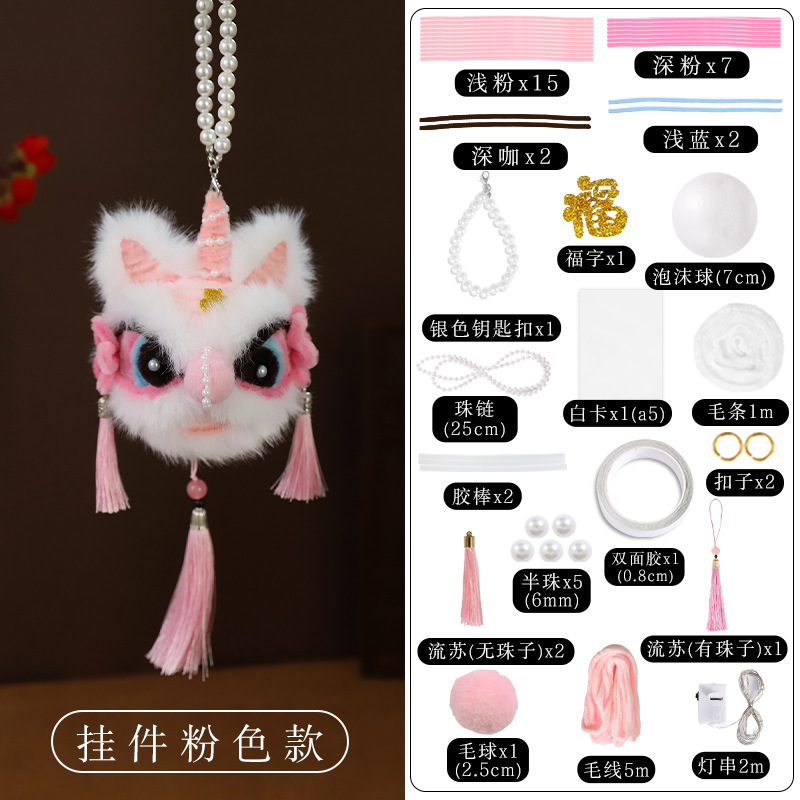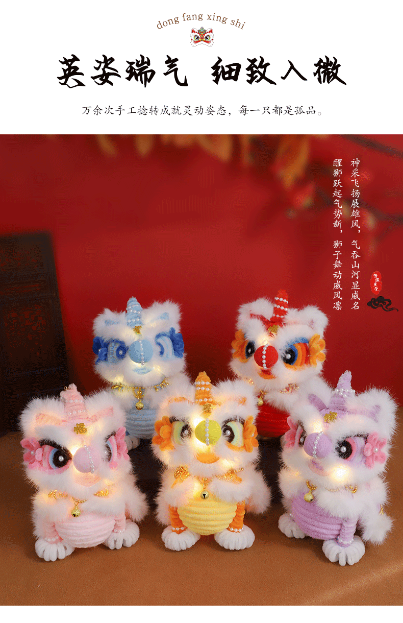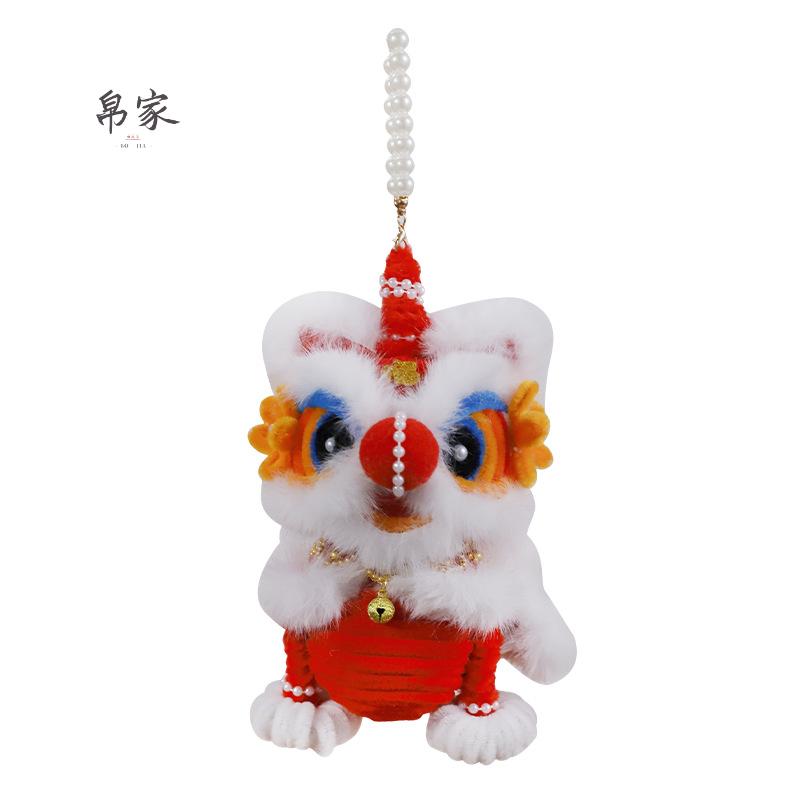 ✅新年儿童毛绒醒狮灯笼手提挂件成品材料包元旦节儿童手提镭射灯