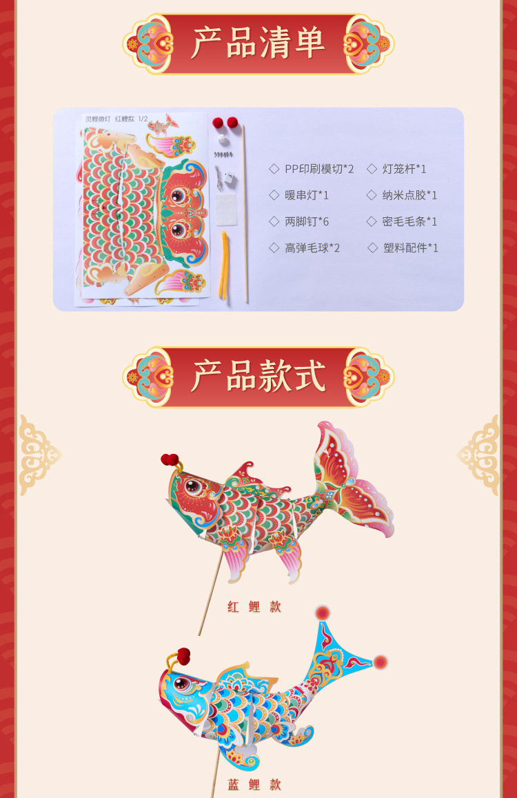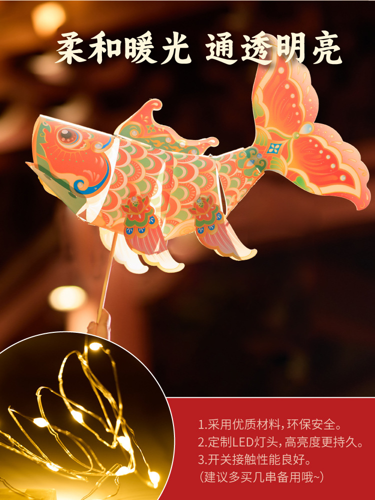 马年灵鲤鱼灯笼手工diy儿童制作材料手持拍照装饰鱼跃龙门锦鲤