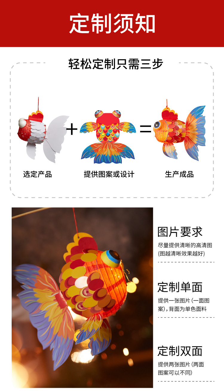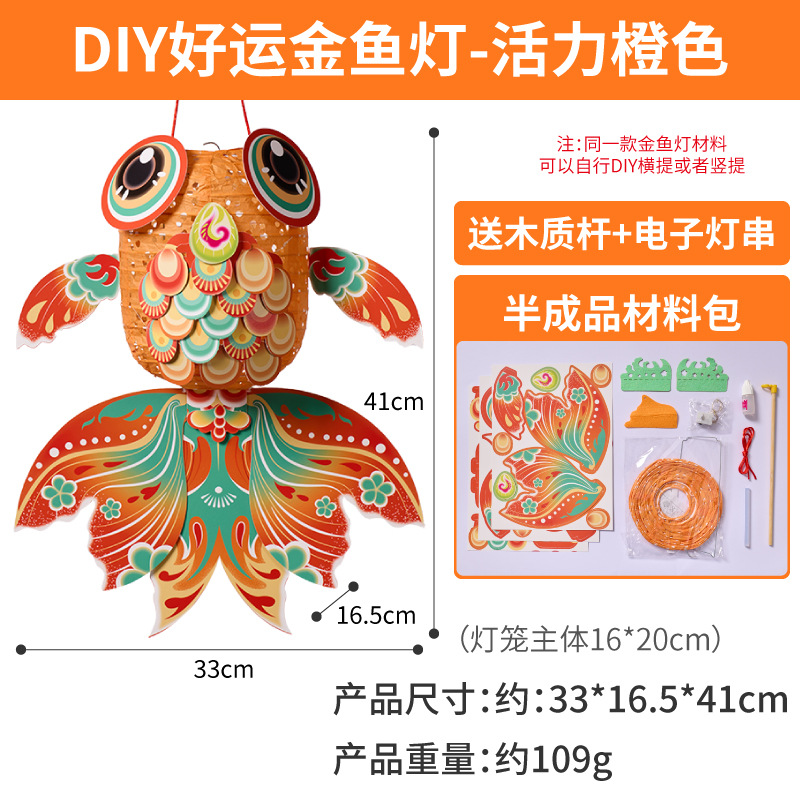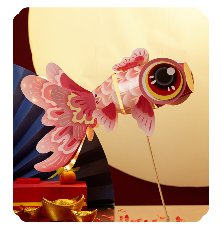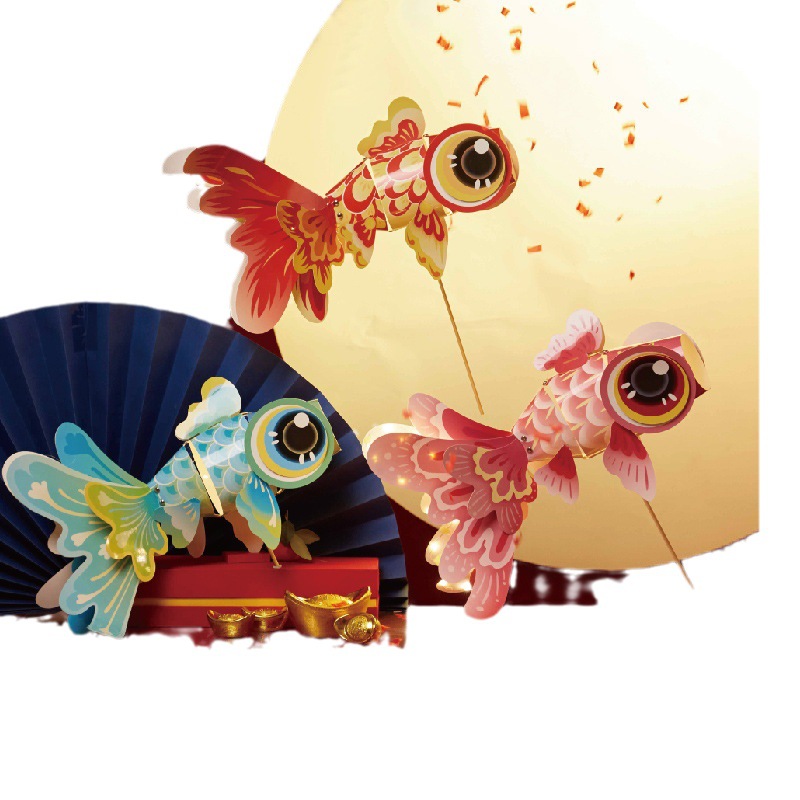 新春元宵diy新年金鱼灯笼儿童制作 发光玩具幼儿园订制logo图案