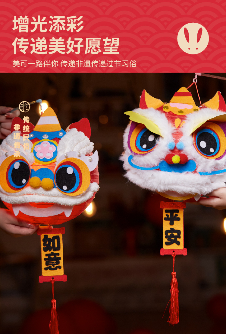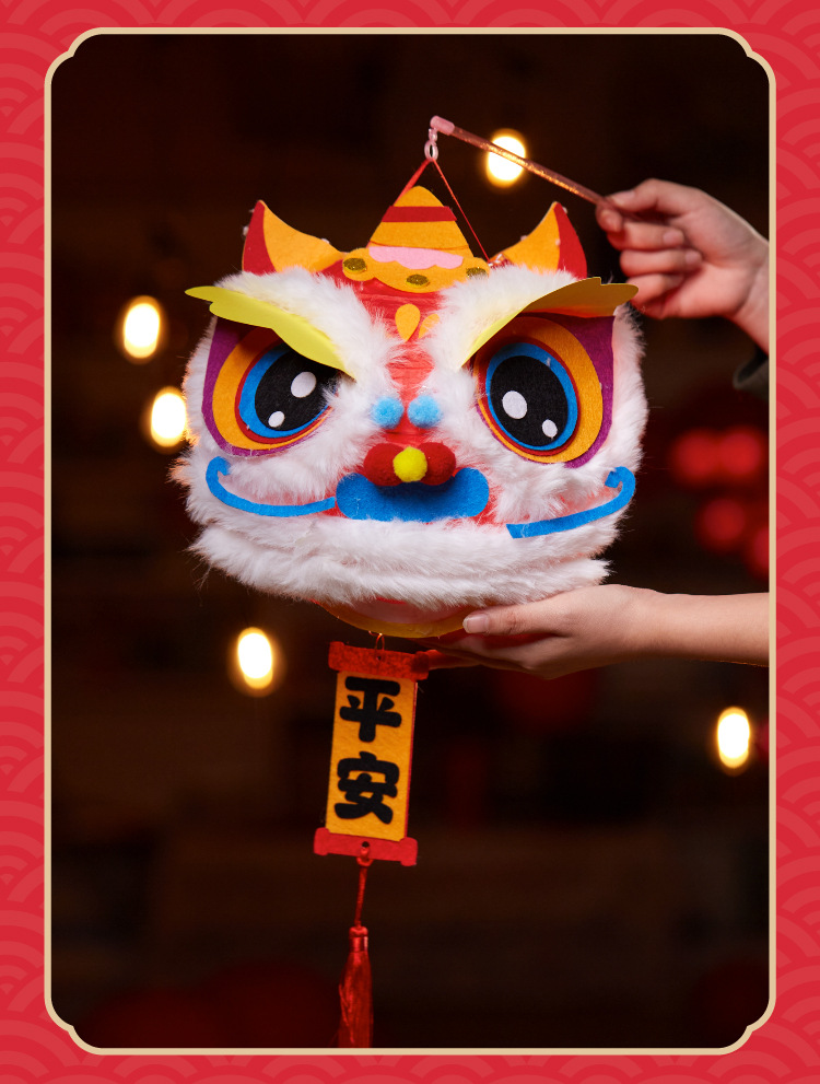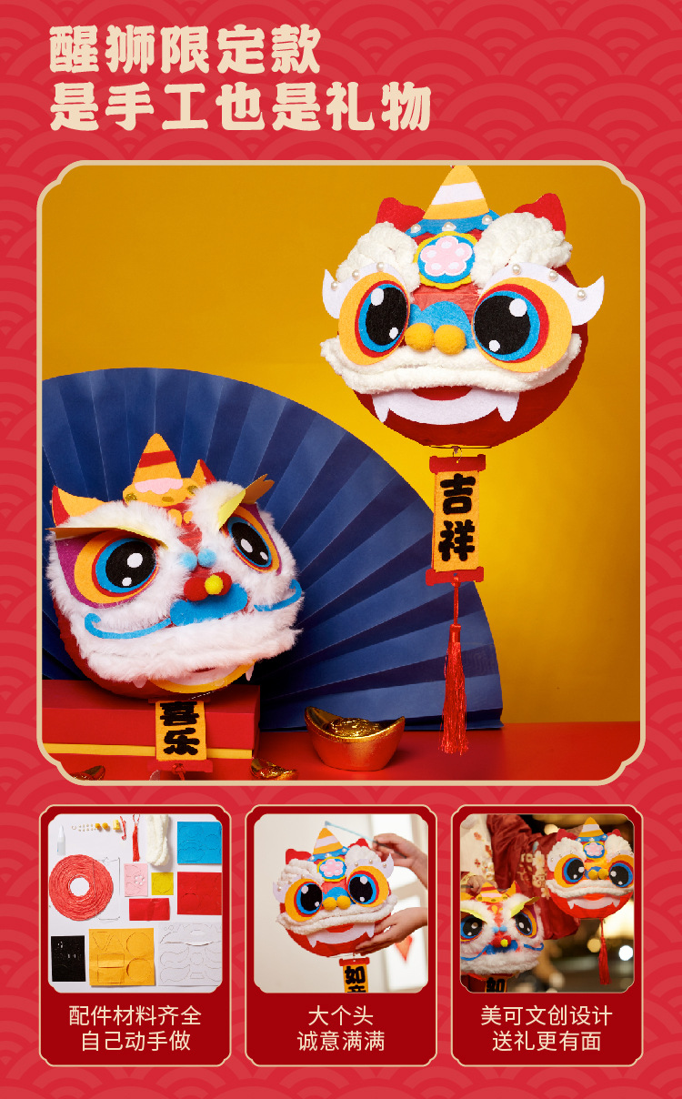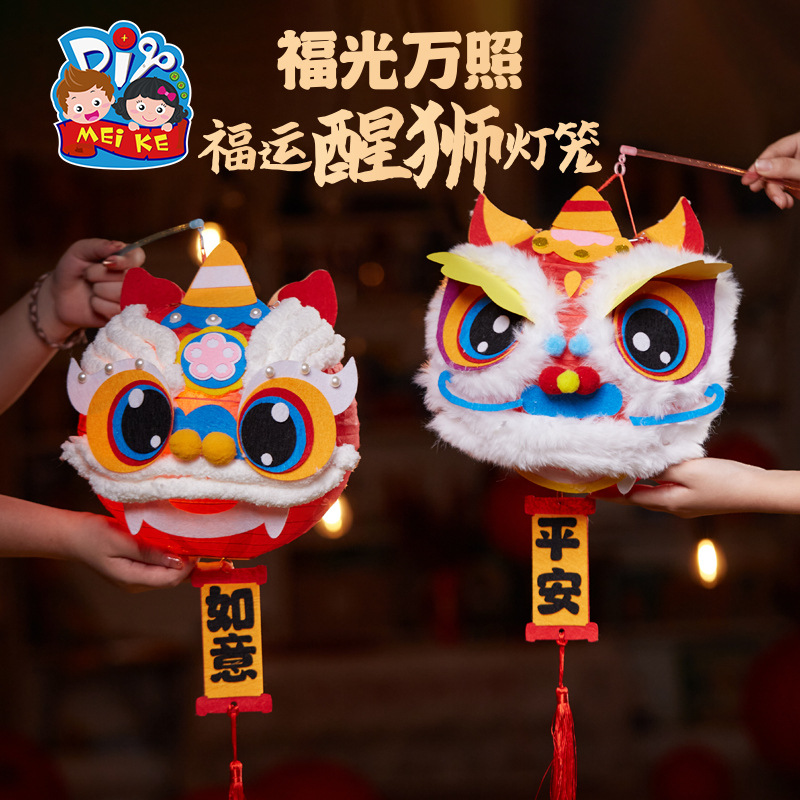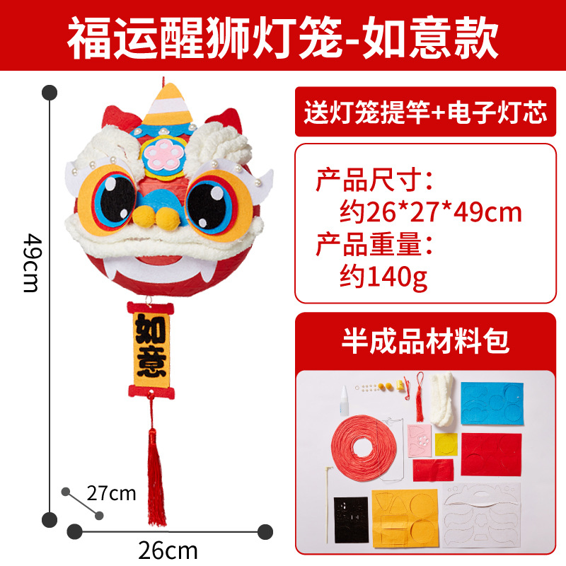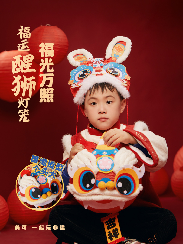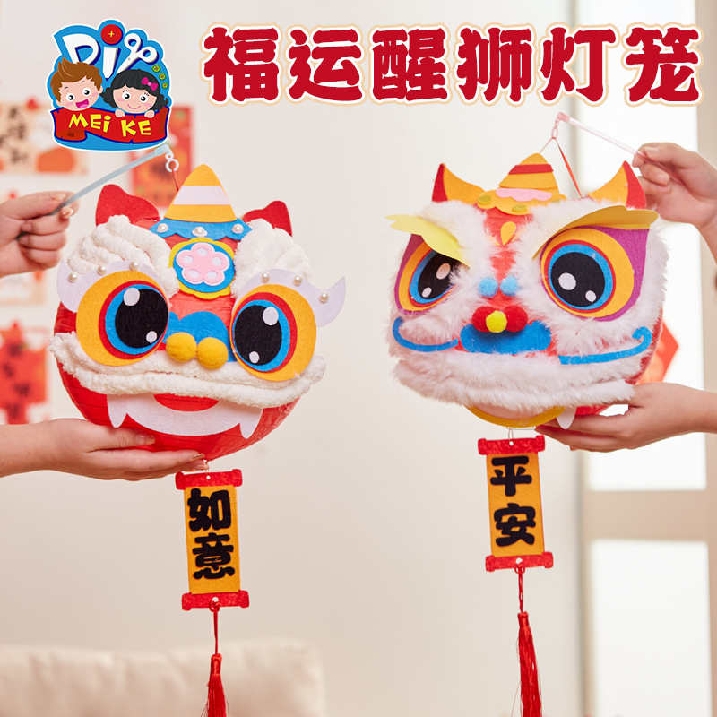 马年礼物福运醒狮灯笼手工diy儿童制作材料非遗古风批发