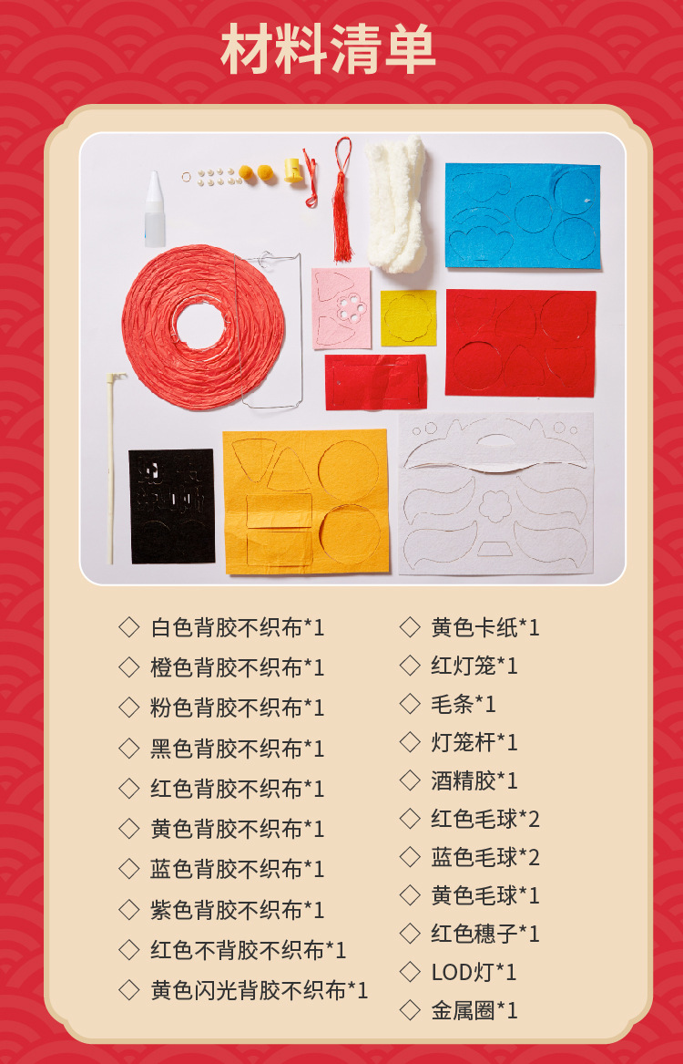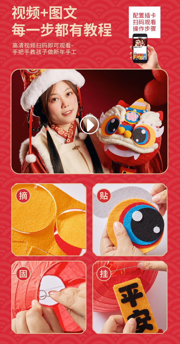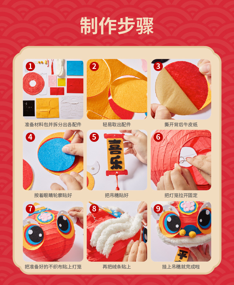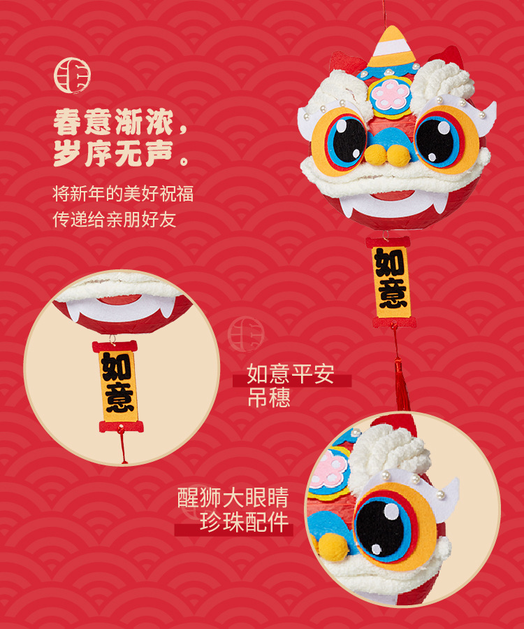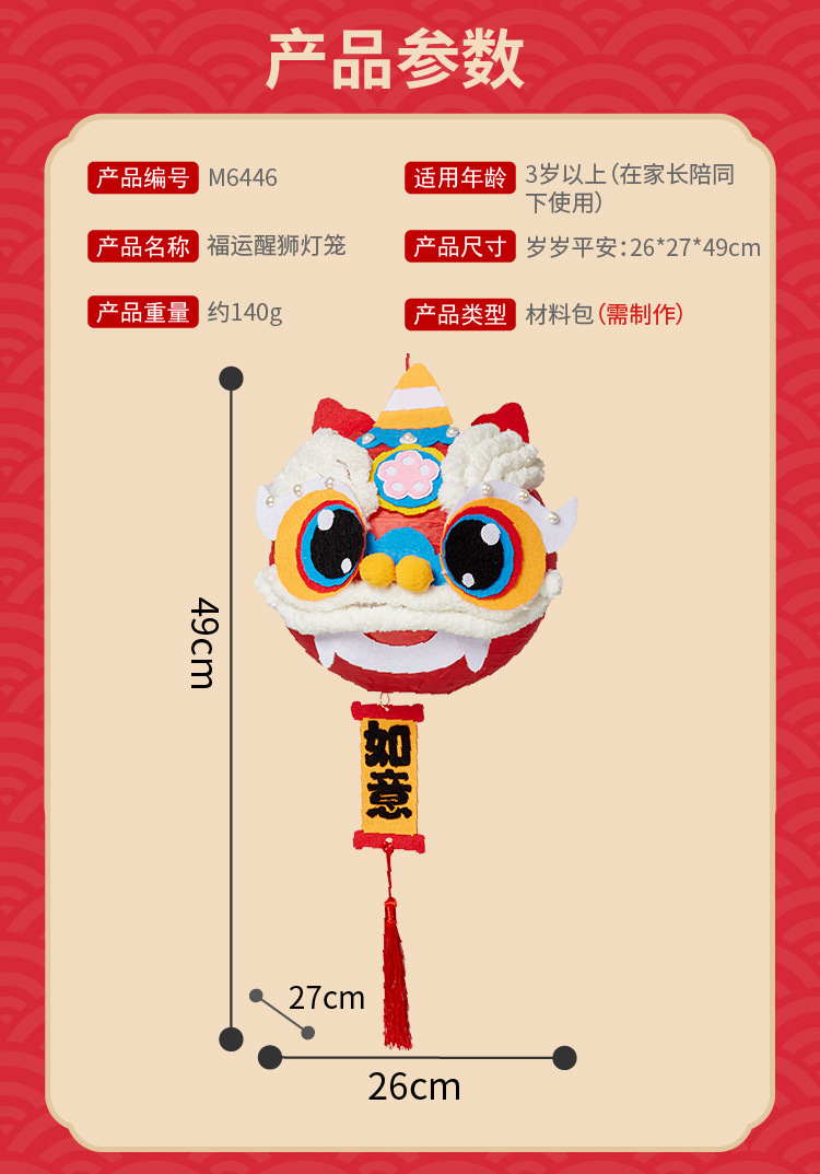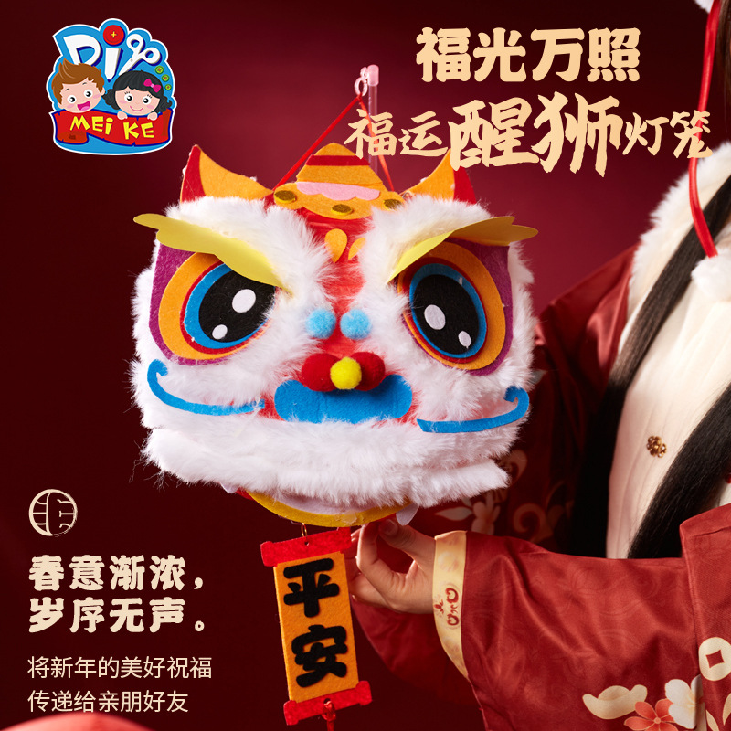 马年礼物福运醒狮灯笼手工diy儿童制作材料非遗古风批发