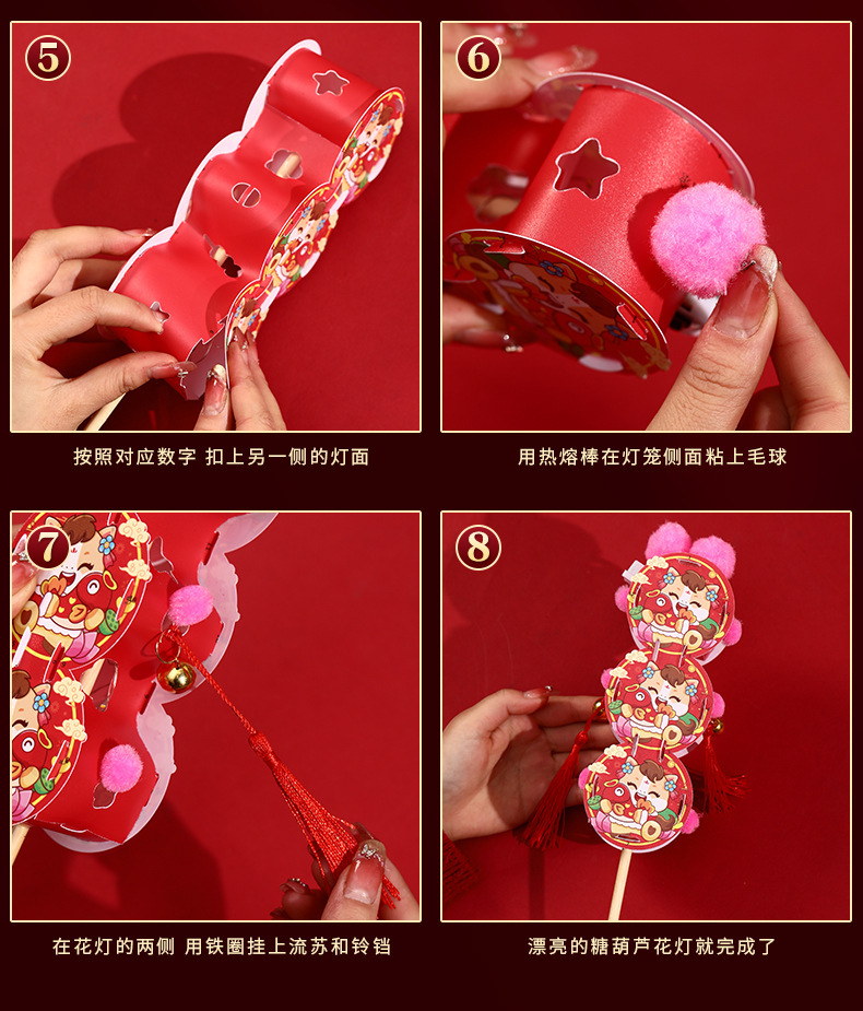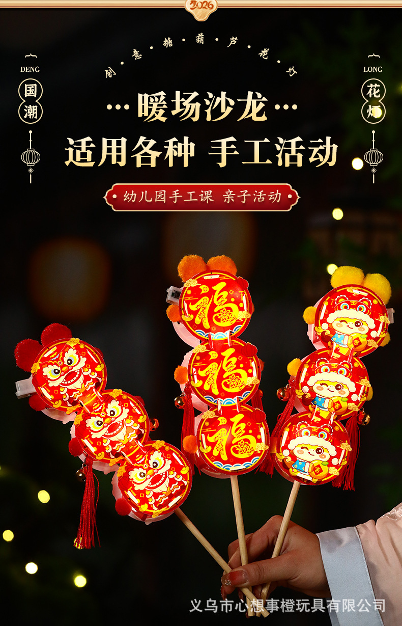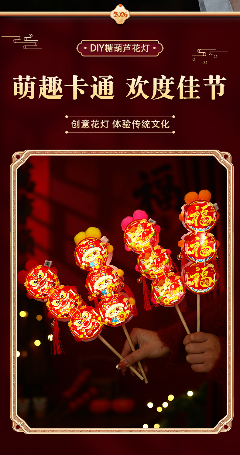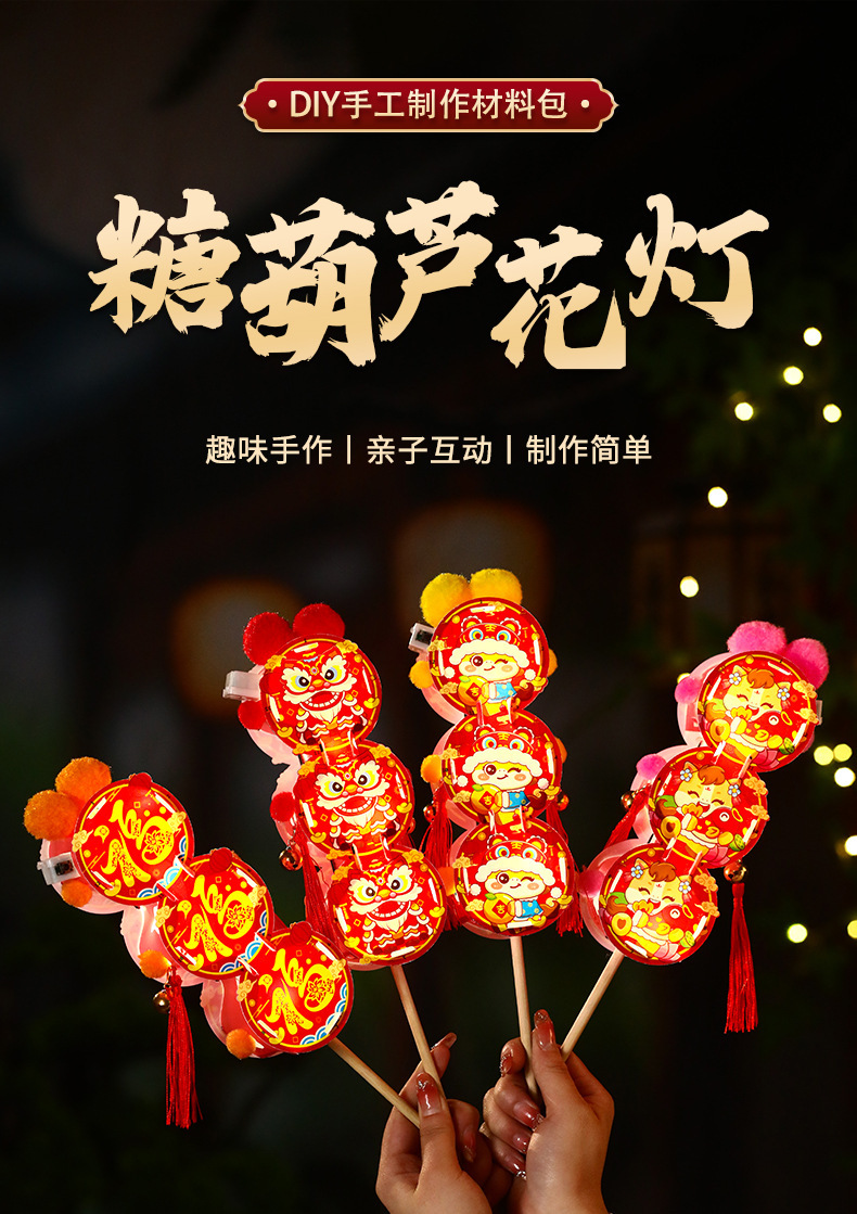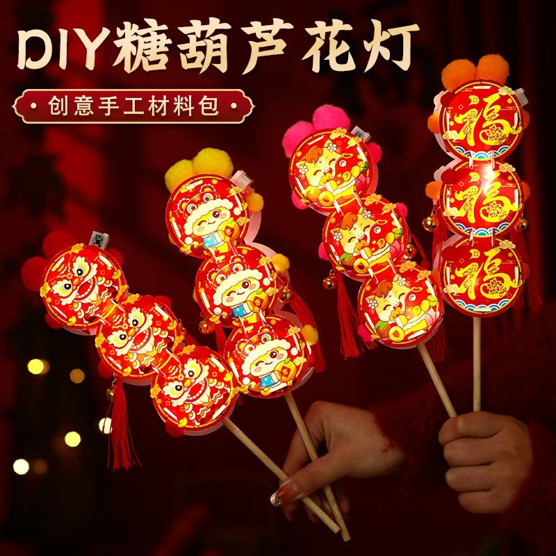 新年儿童手工diy糖葫芦发光花灯拍照制作材料包春节元宵灯笼批发