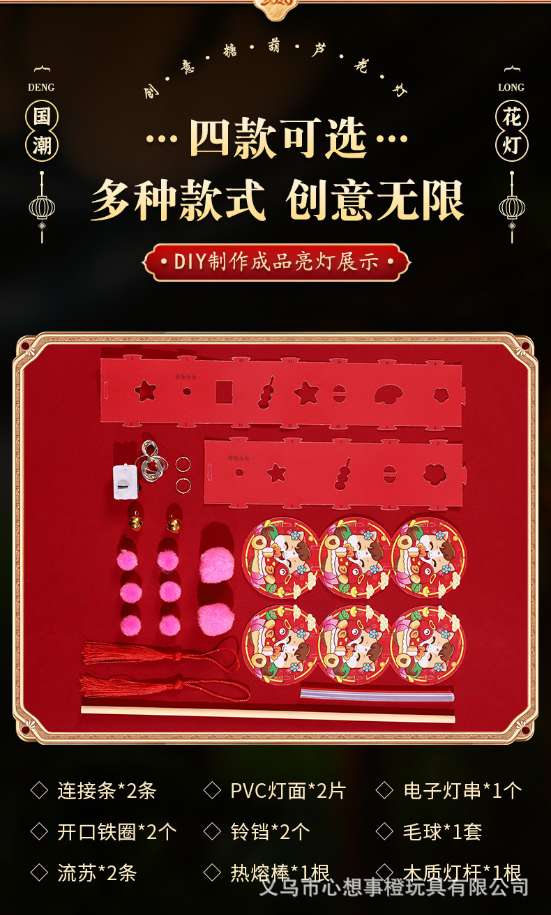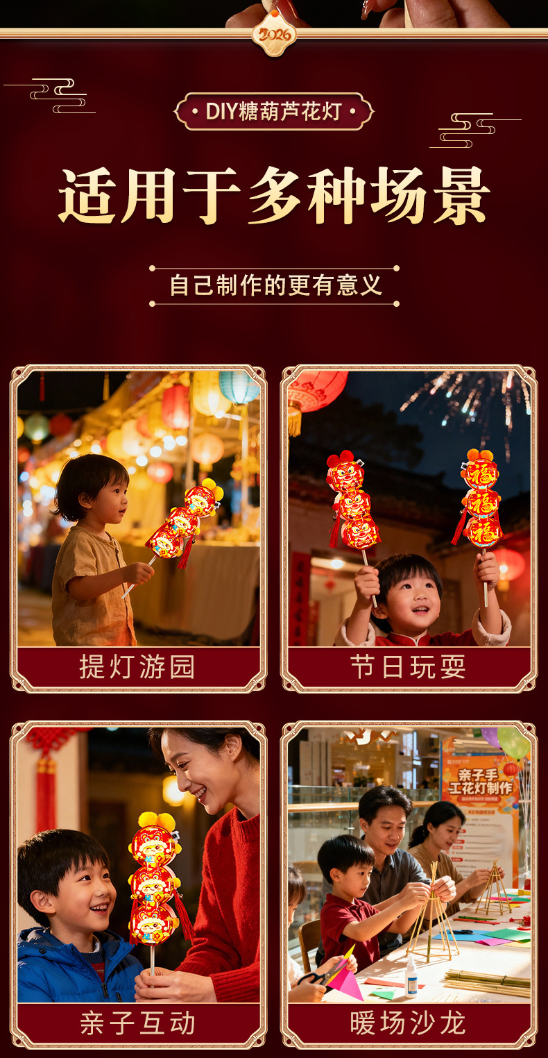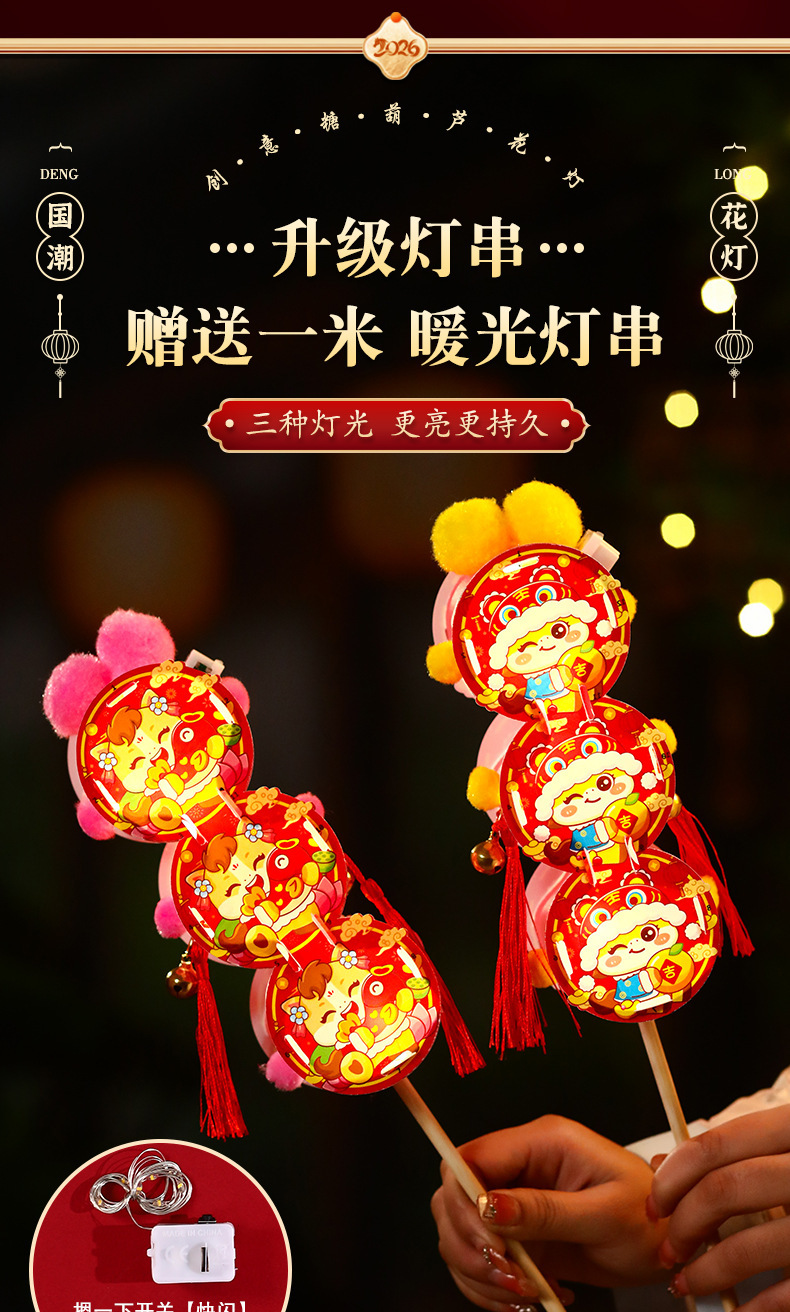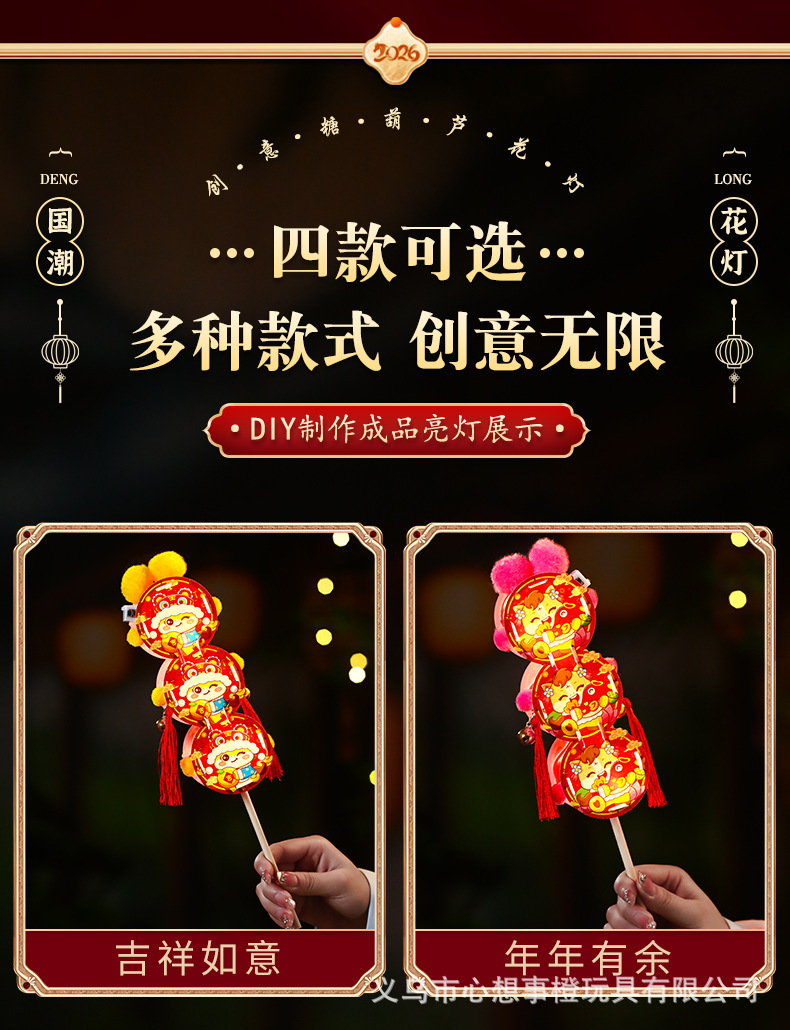 新年儿童手工diy糖葫芦发光花灯拍照制作材料包春节元宵灯笼批发