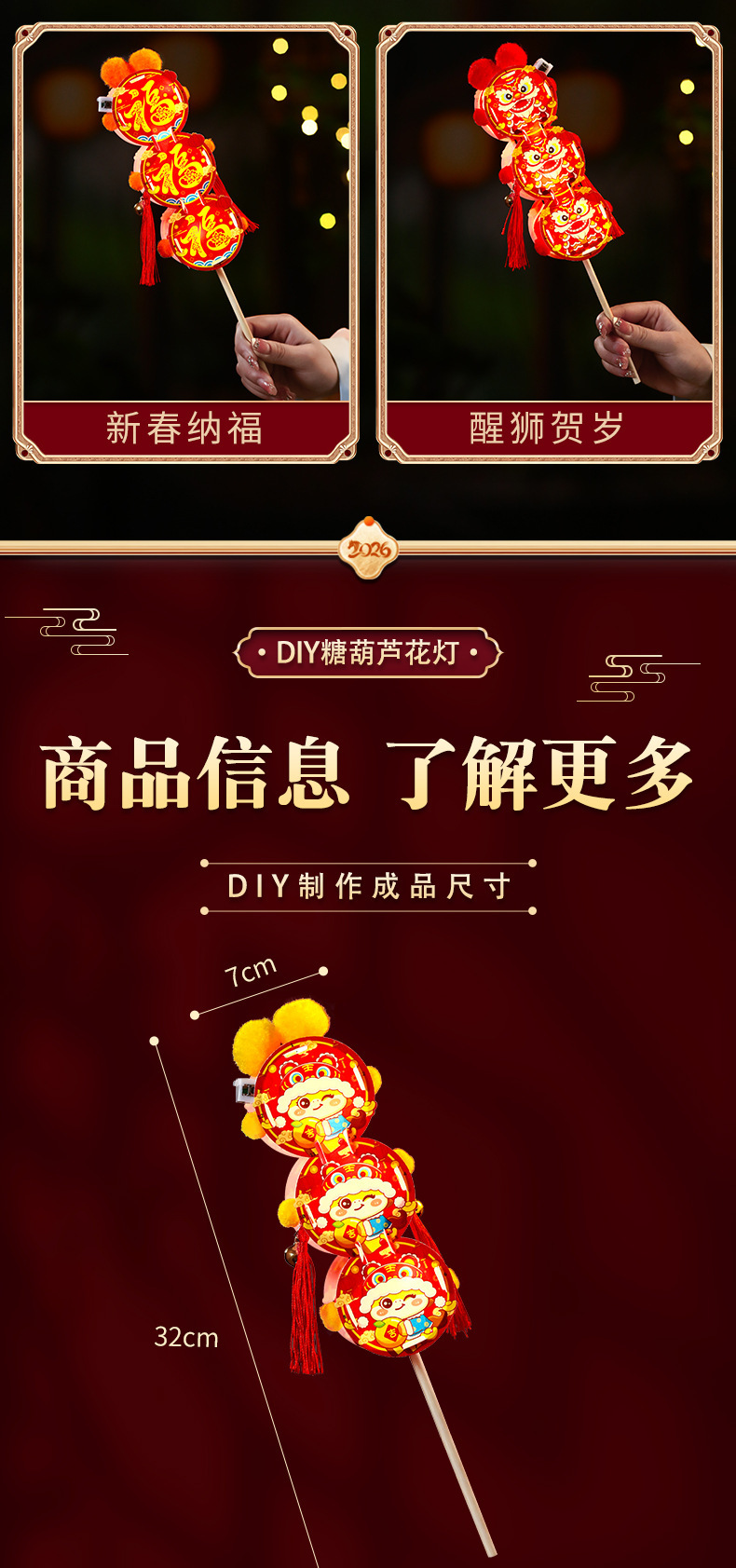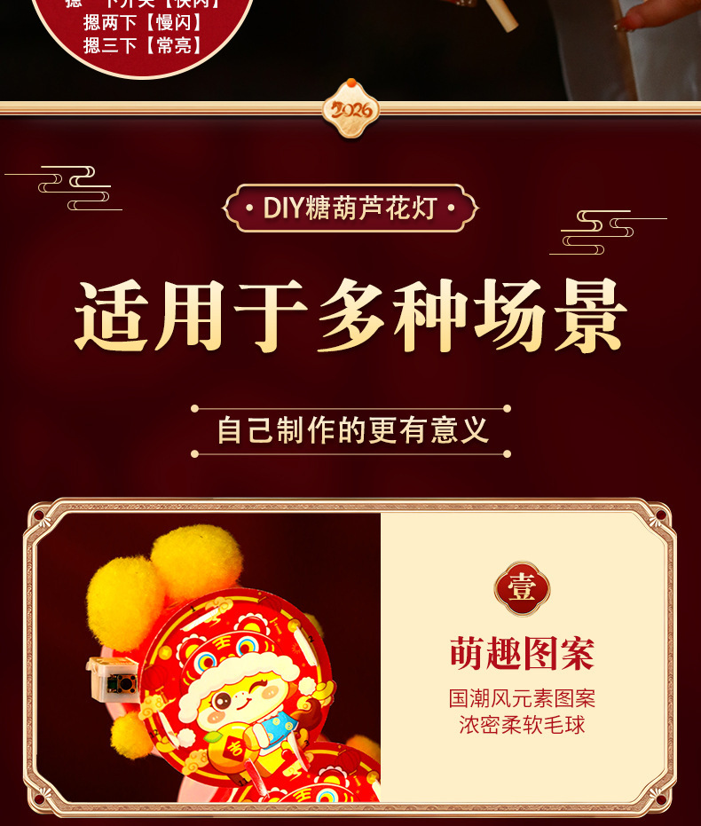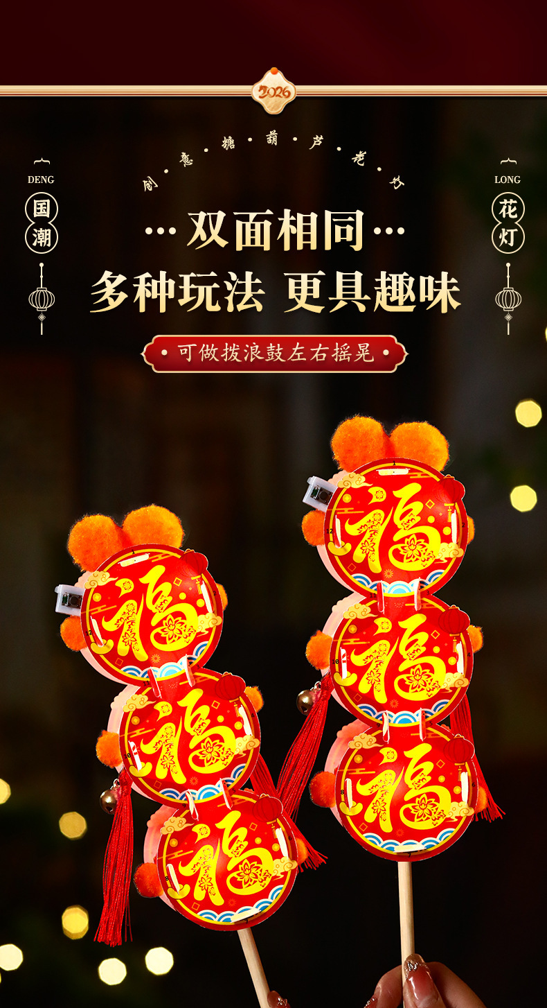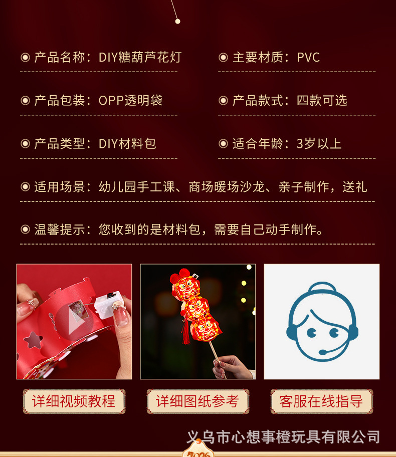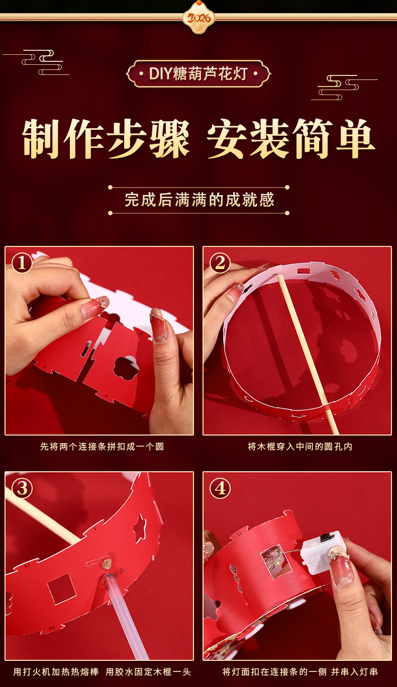 新年儿童手工diy糖葫芦发光花灯拍照制作材料包春节元宵灯笼批发