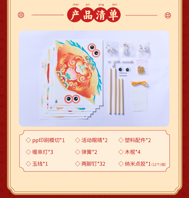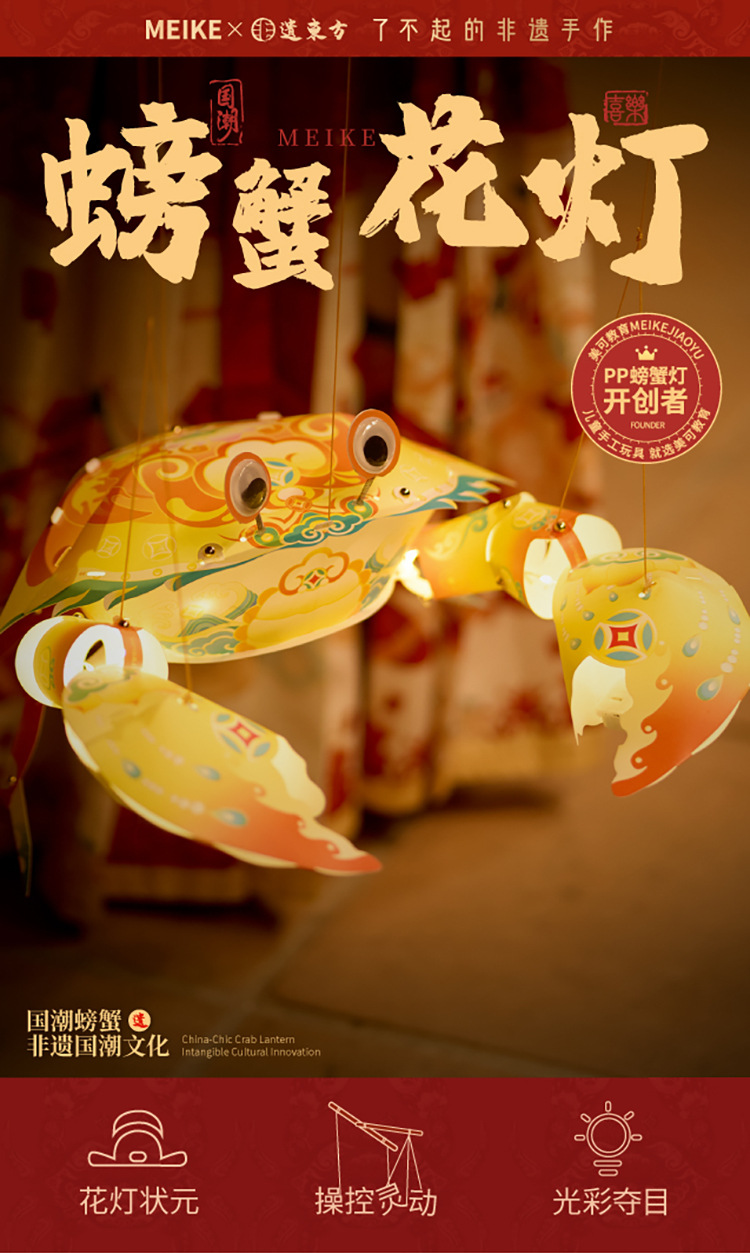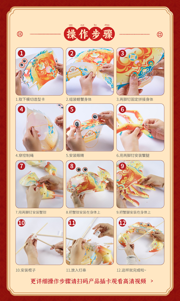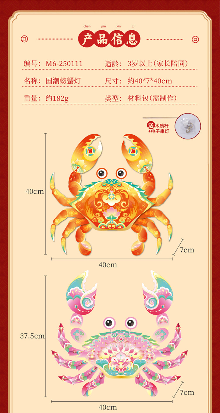 马年传统儿时鱼虾蟹系列之国潮螃蟹灯手工制作材料儿童玩具