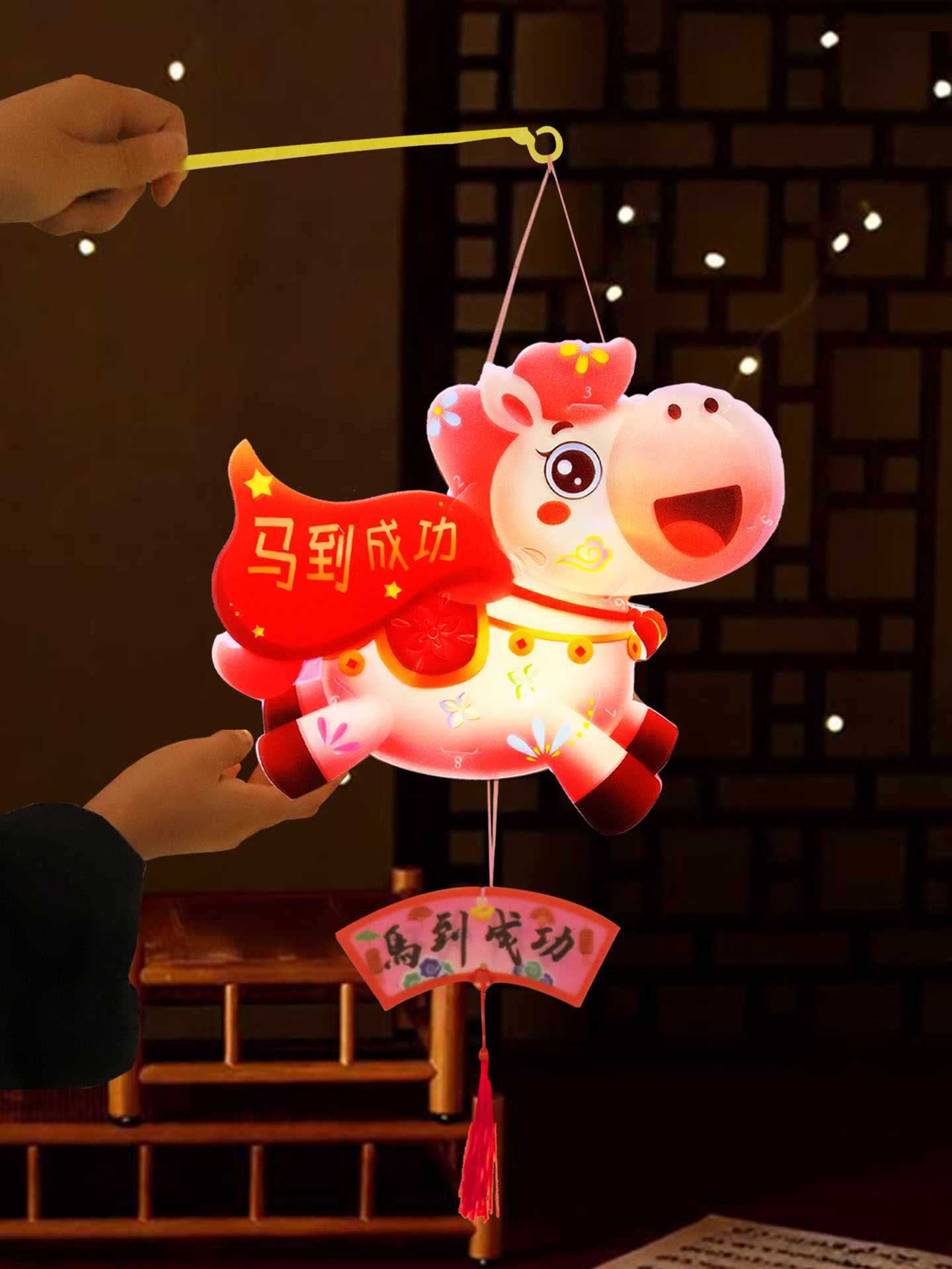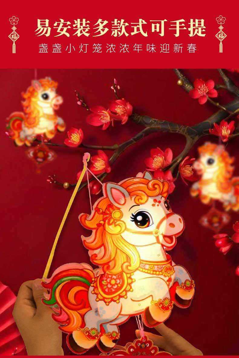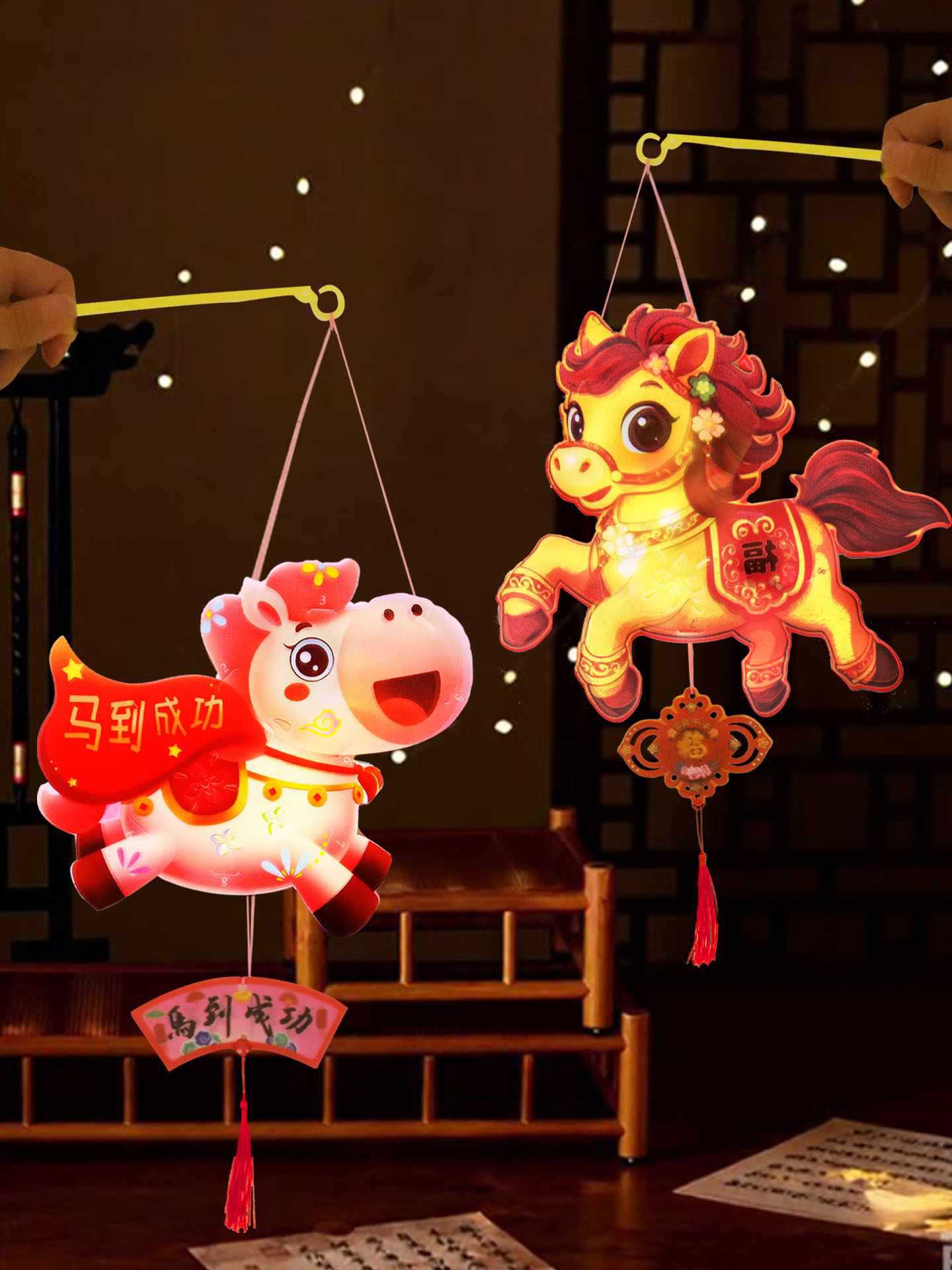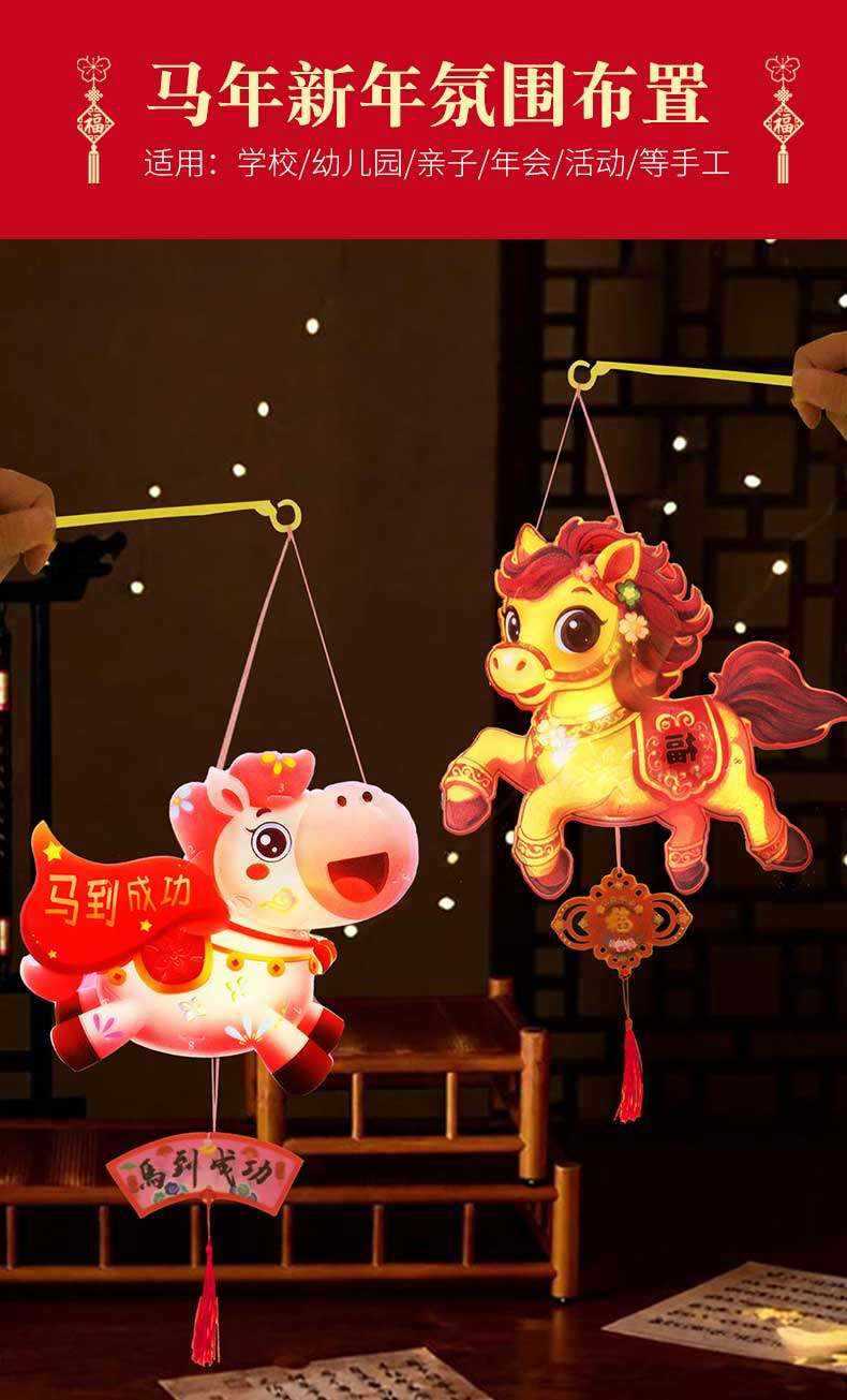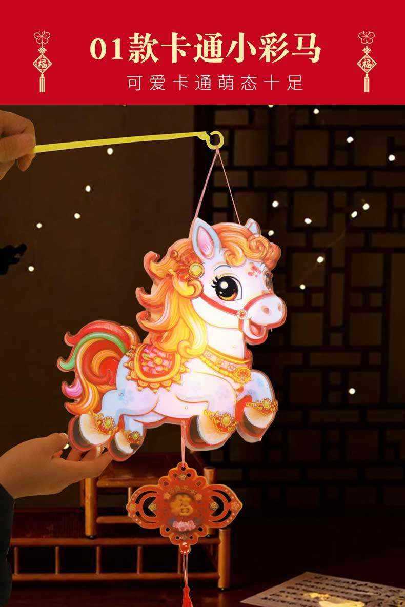 2026年 马年手工灯笼diy材料新年儿童手提发光花灯元宵新款小马灯