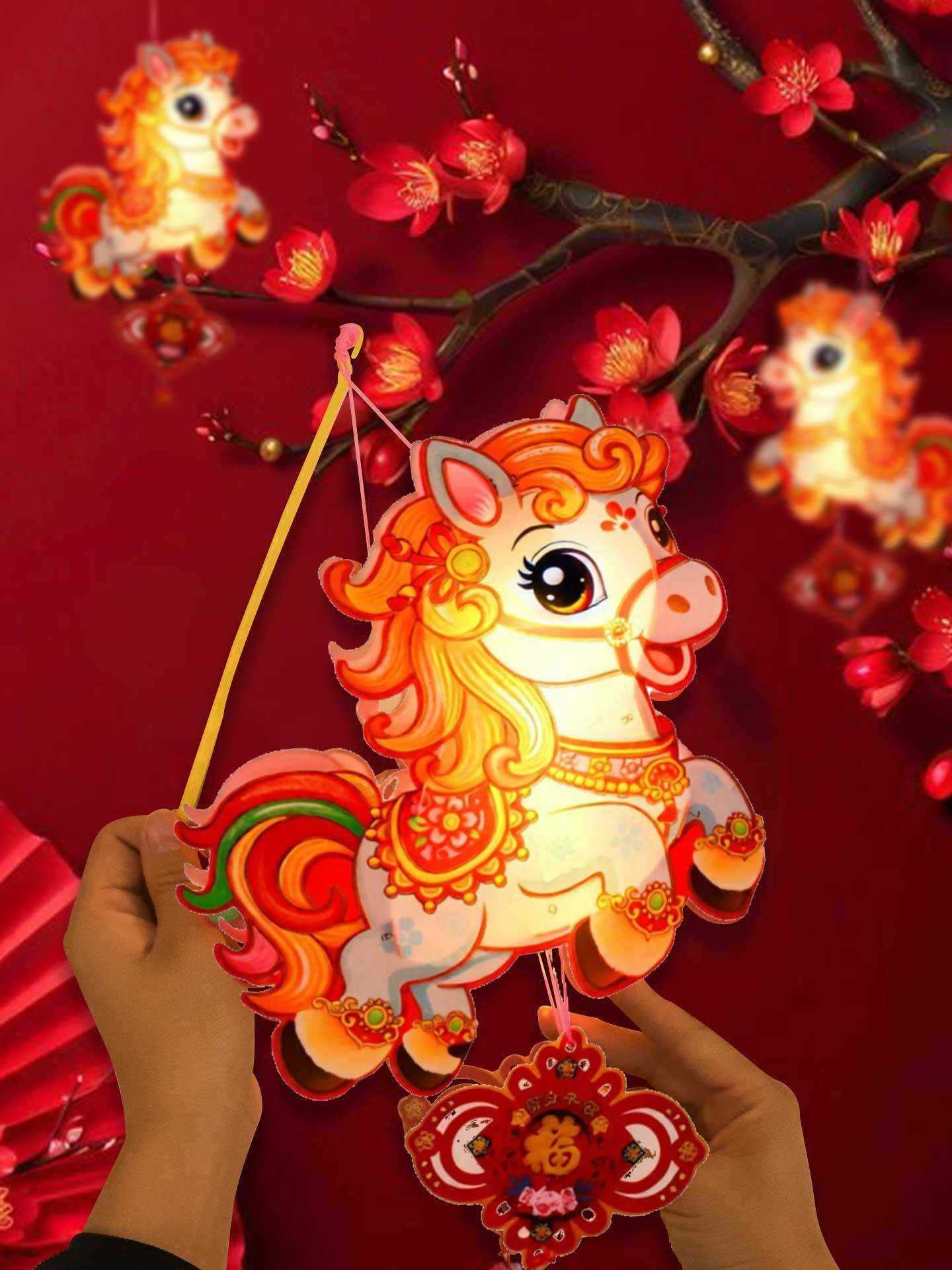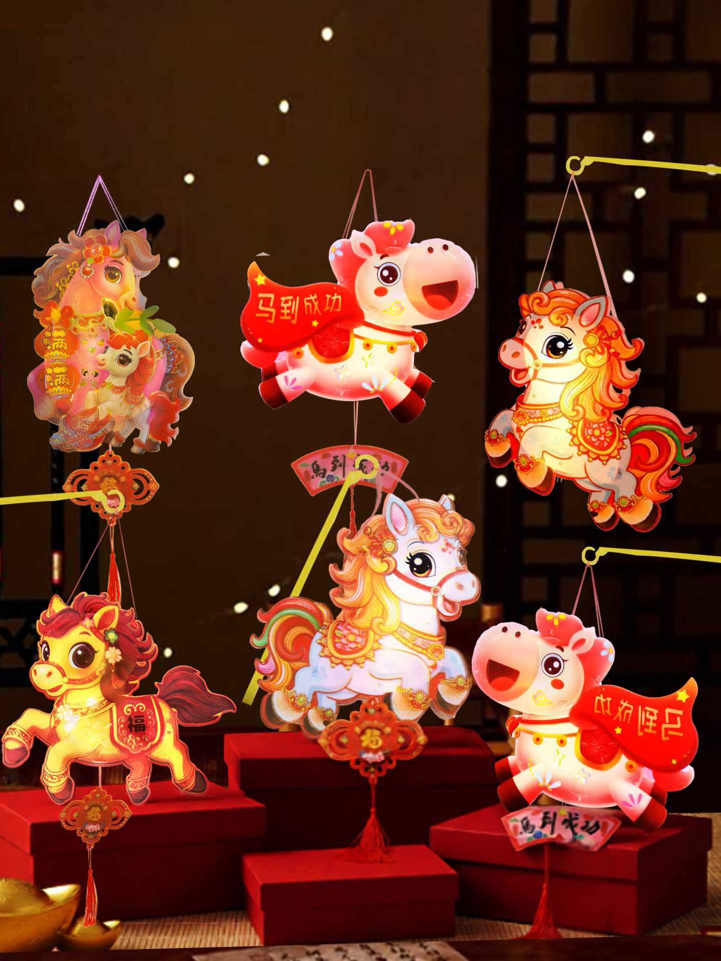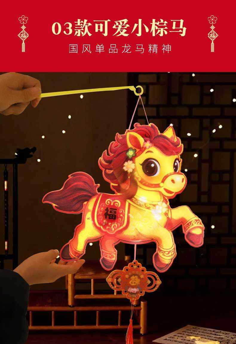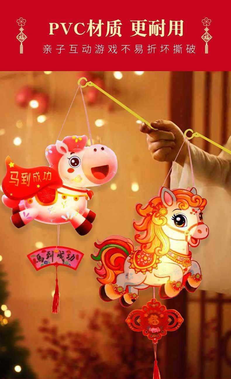 2026年 马年手工灯笼diy材料新年儿童手提发光花灯元宵新款小马灯