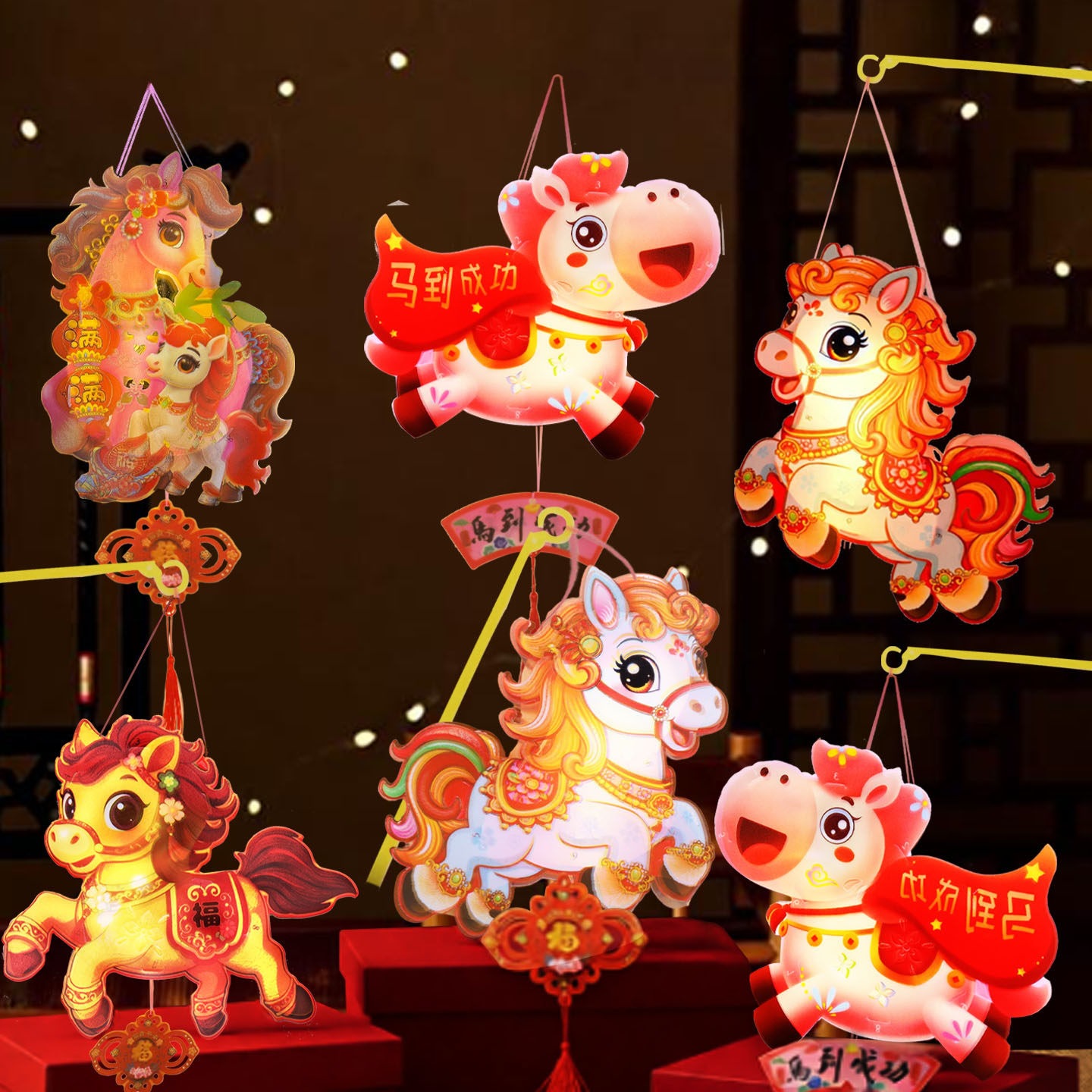 2026马年手工灯笼diy材料包新年儿童手提发光花灯 元旦自制小马灯