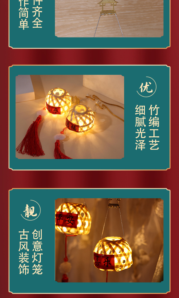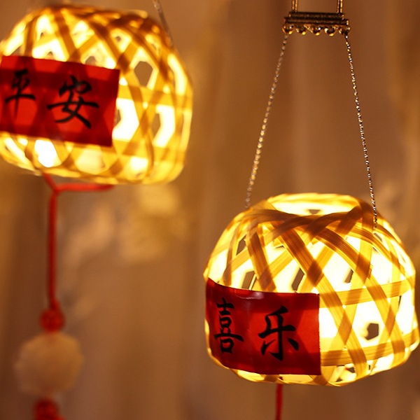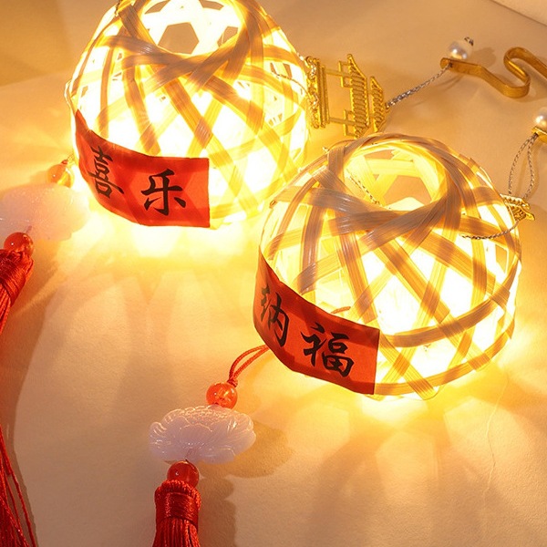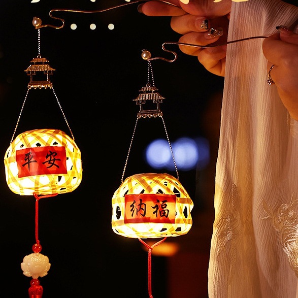 中秋灯笼发光手提小灯笼手工diy成品竹编灯笼儿童花灯汉服材料包