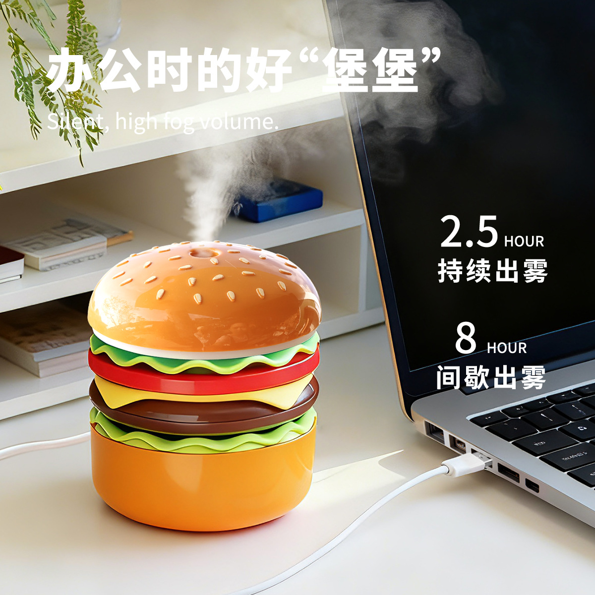 萌趣汉堡加湿器车载小型喷雾补水仪七彩氛围汉堡小夜灯创意摆件
