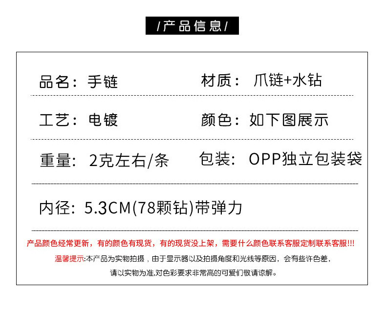 跨境欧美多色弹力水钻手链时尚多层彩钻爪链缠绕手环气质手饰批发