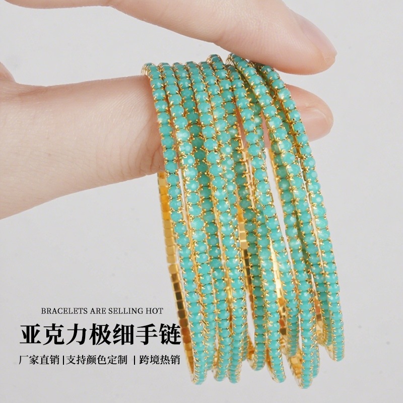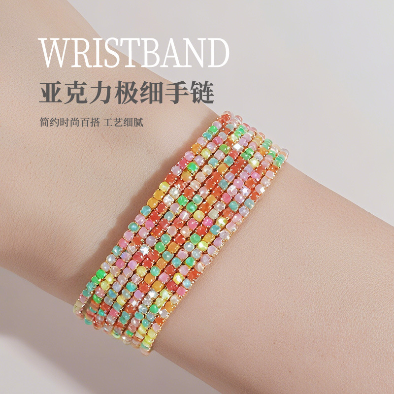 跨境新品不规则手链混色亚克力弹力水砖方糖水晶秀气手串饰品热销