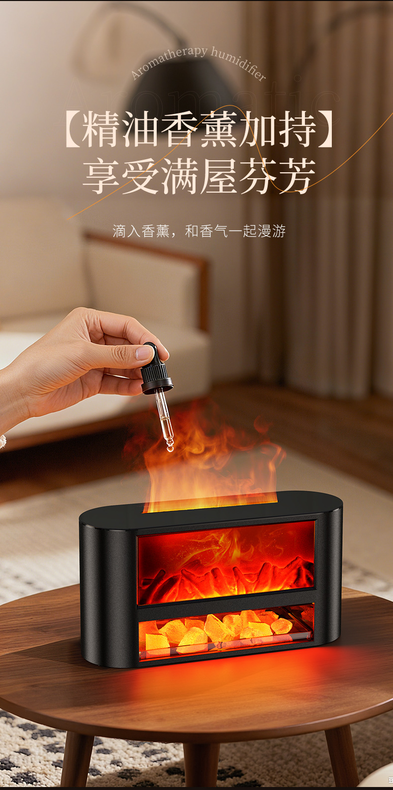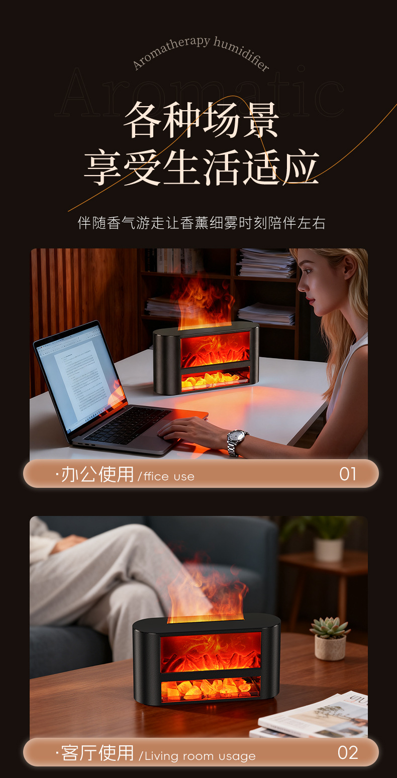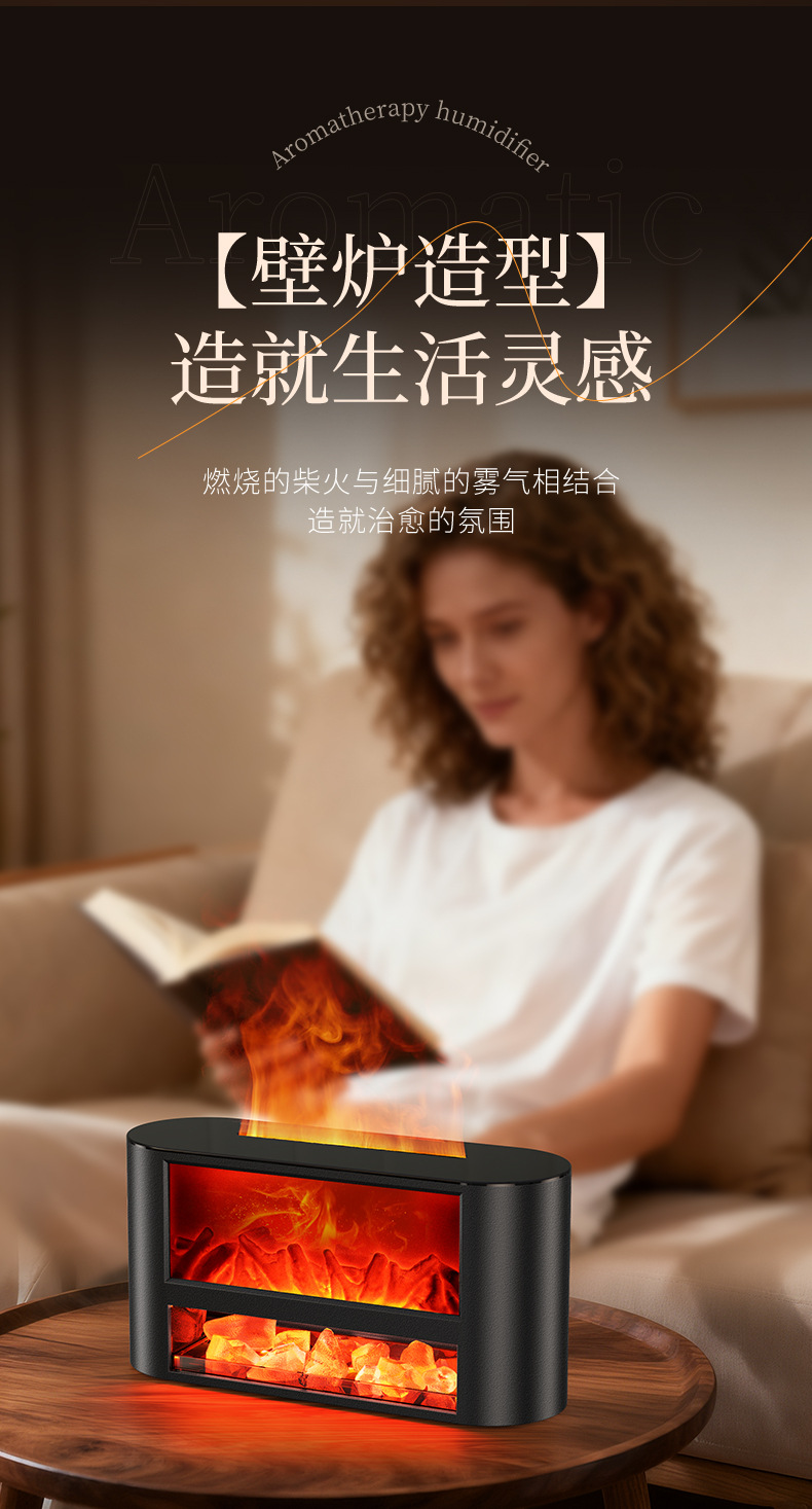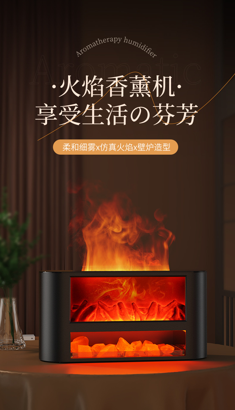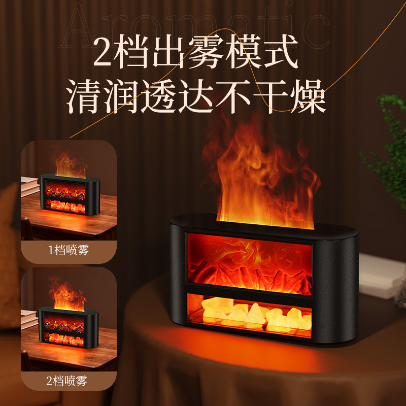 USB仿真柴火壁炉加湿器桌面小型火焰卧室家用氛围夜灯摆件香薰机