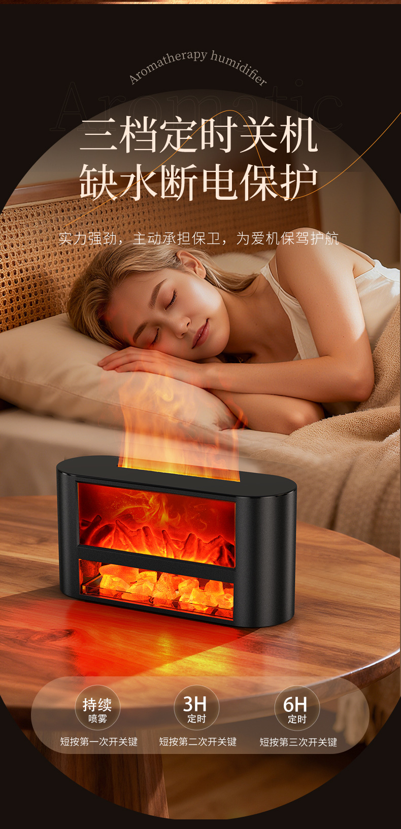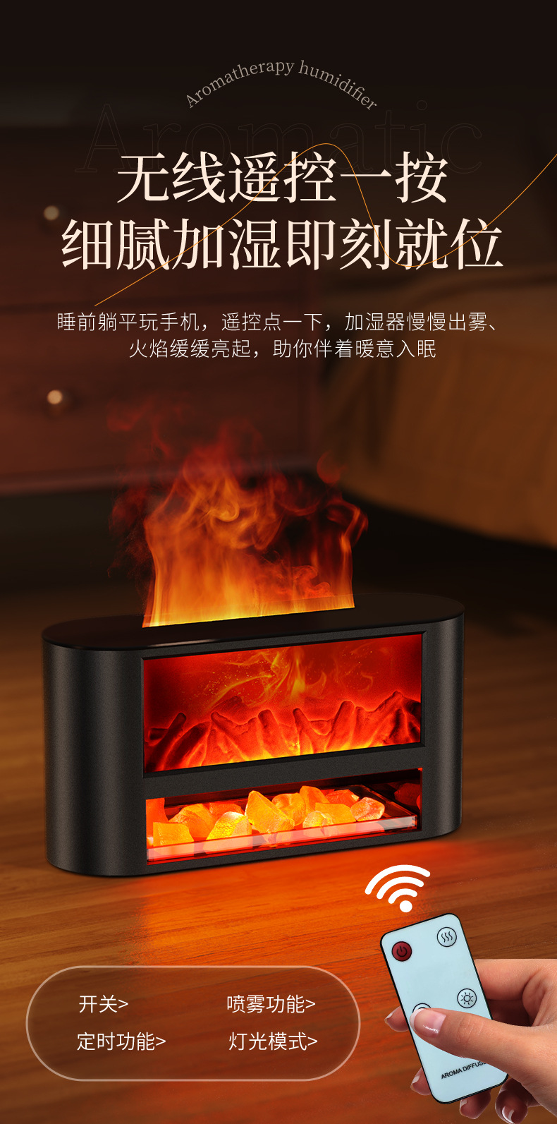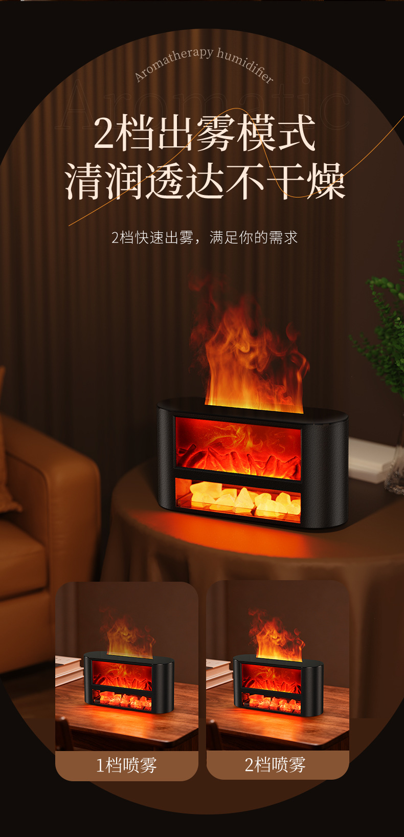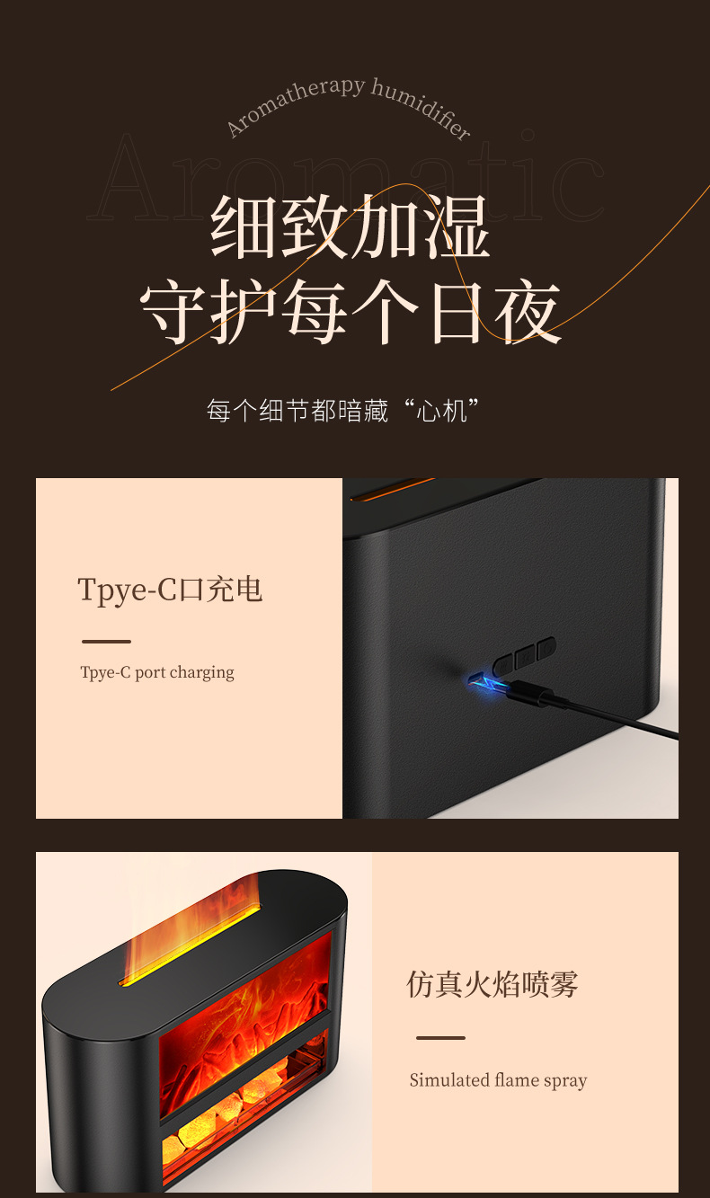 USB仿真柴火壁炉加湿器桌面小型火焰卧室家用氛围夜灯摆件香薰机
