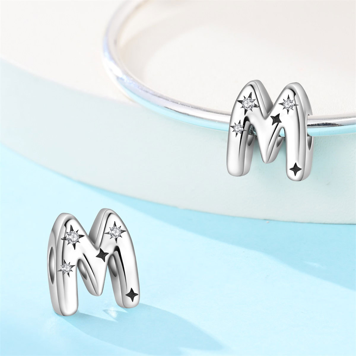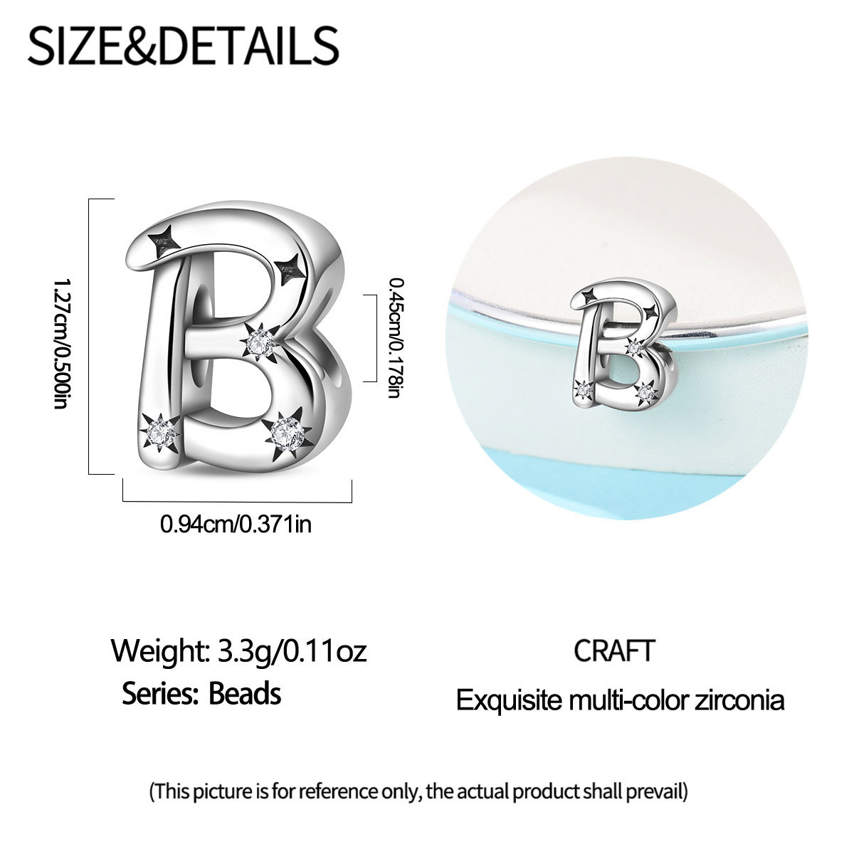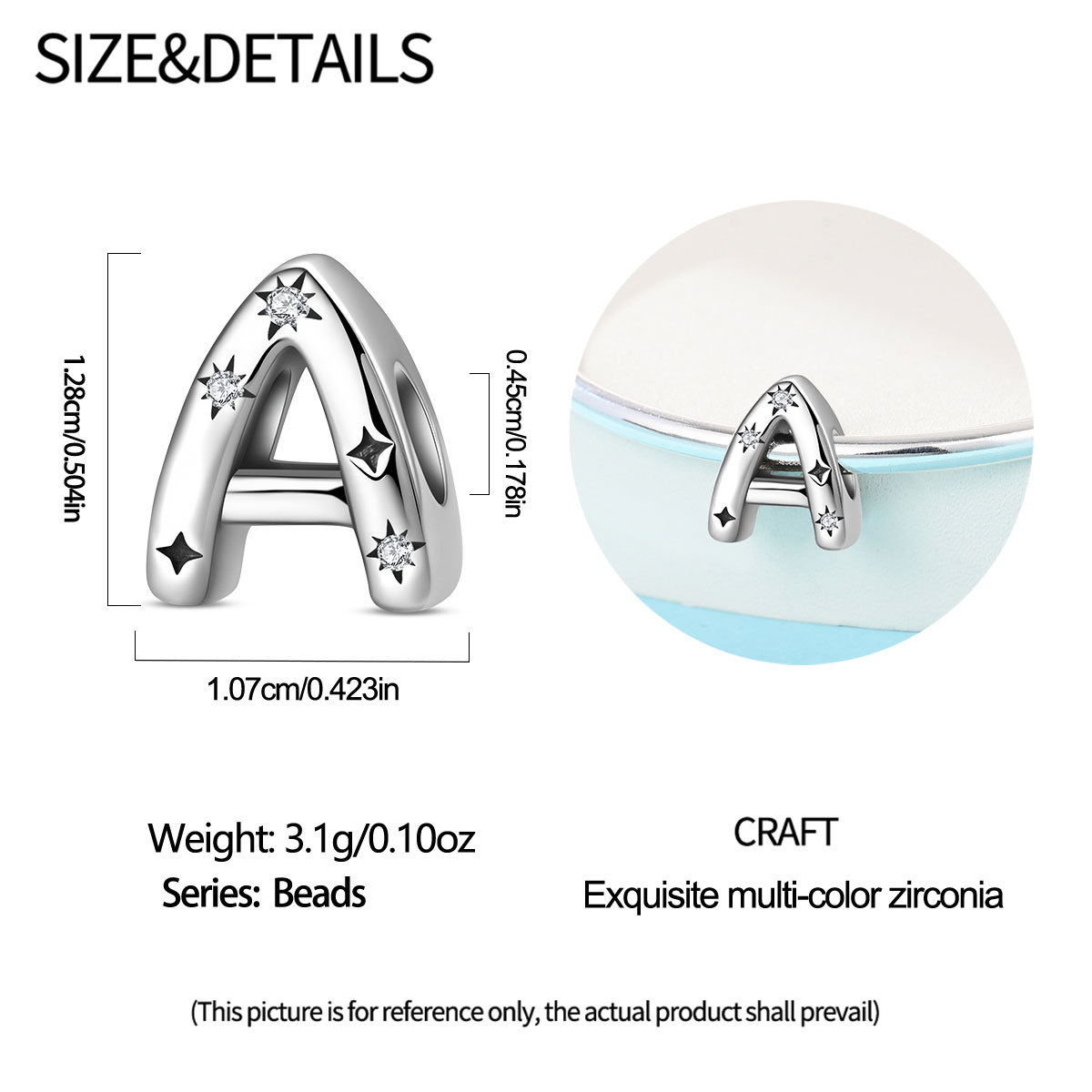 新款魅力英文字母串珠吊饰DIY饰品手链项链配件铜镀银亚马逊热卖