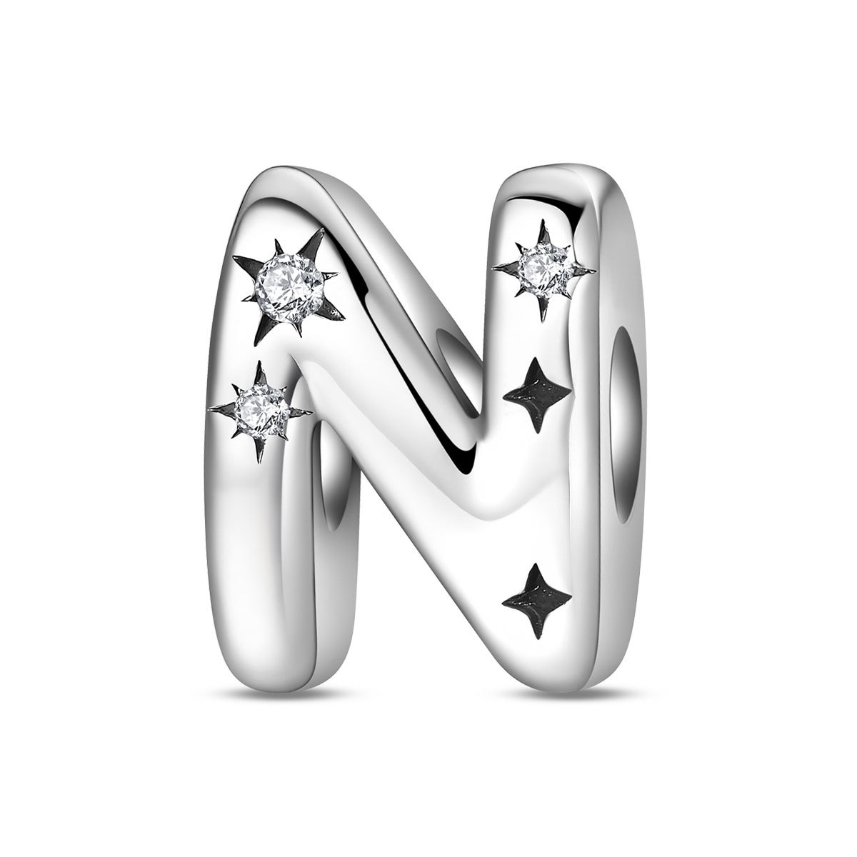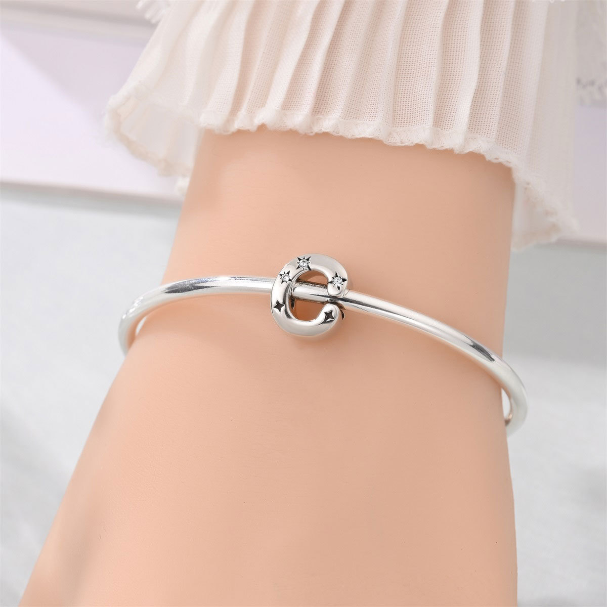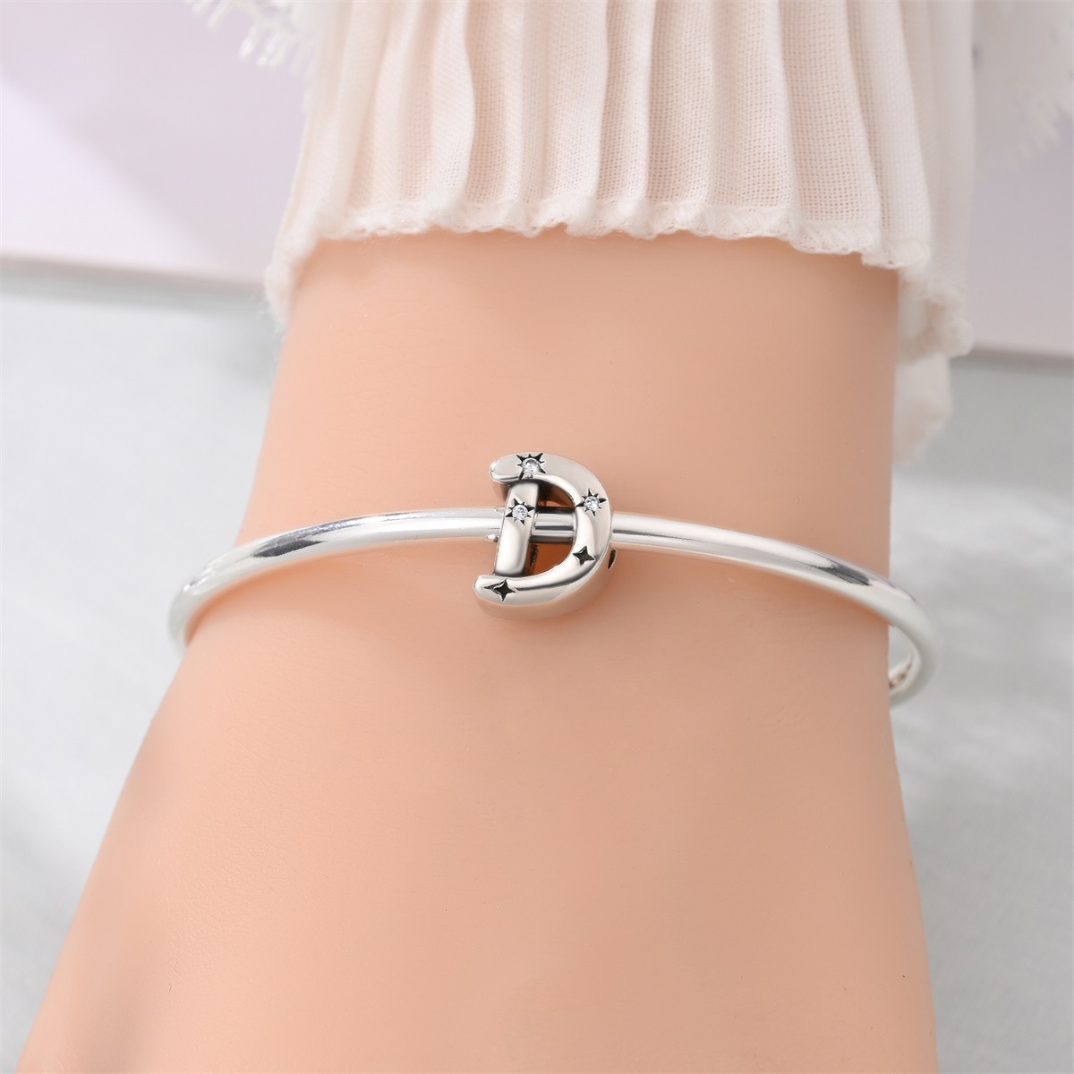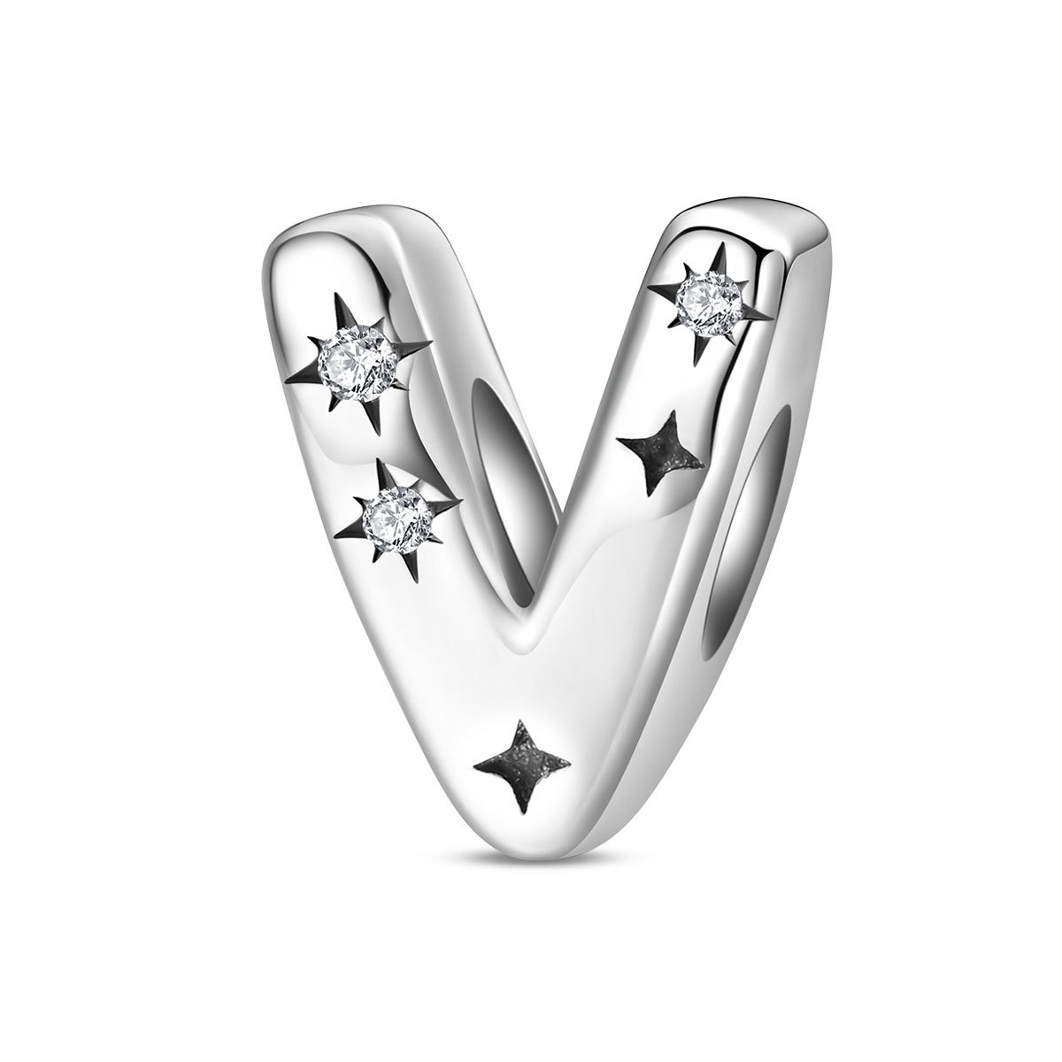 新款魅力英文字母串珠吊饰DIY饰品手链项链配件铜镀银亚马逊热卖