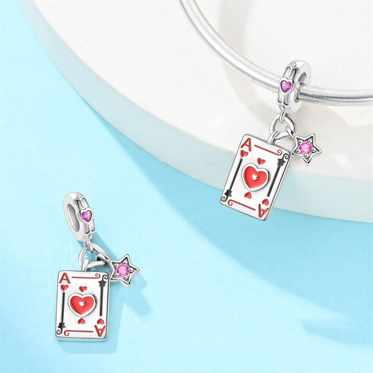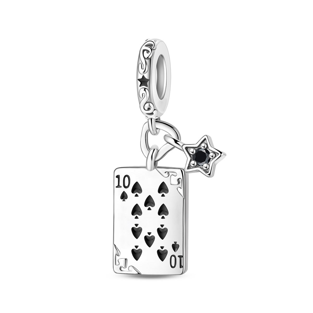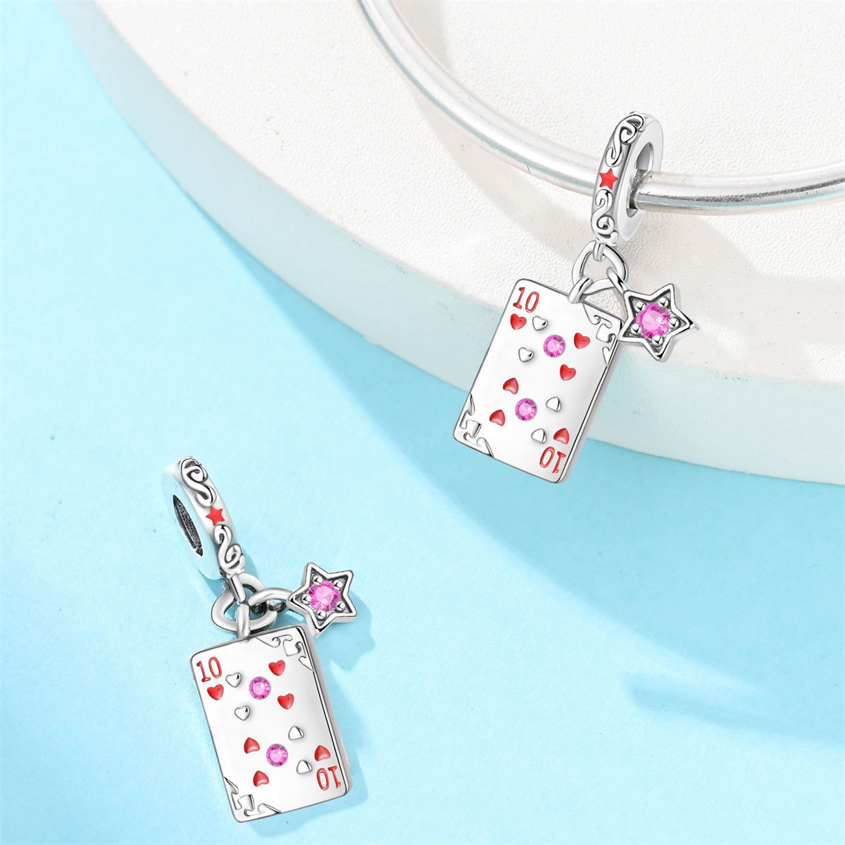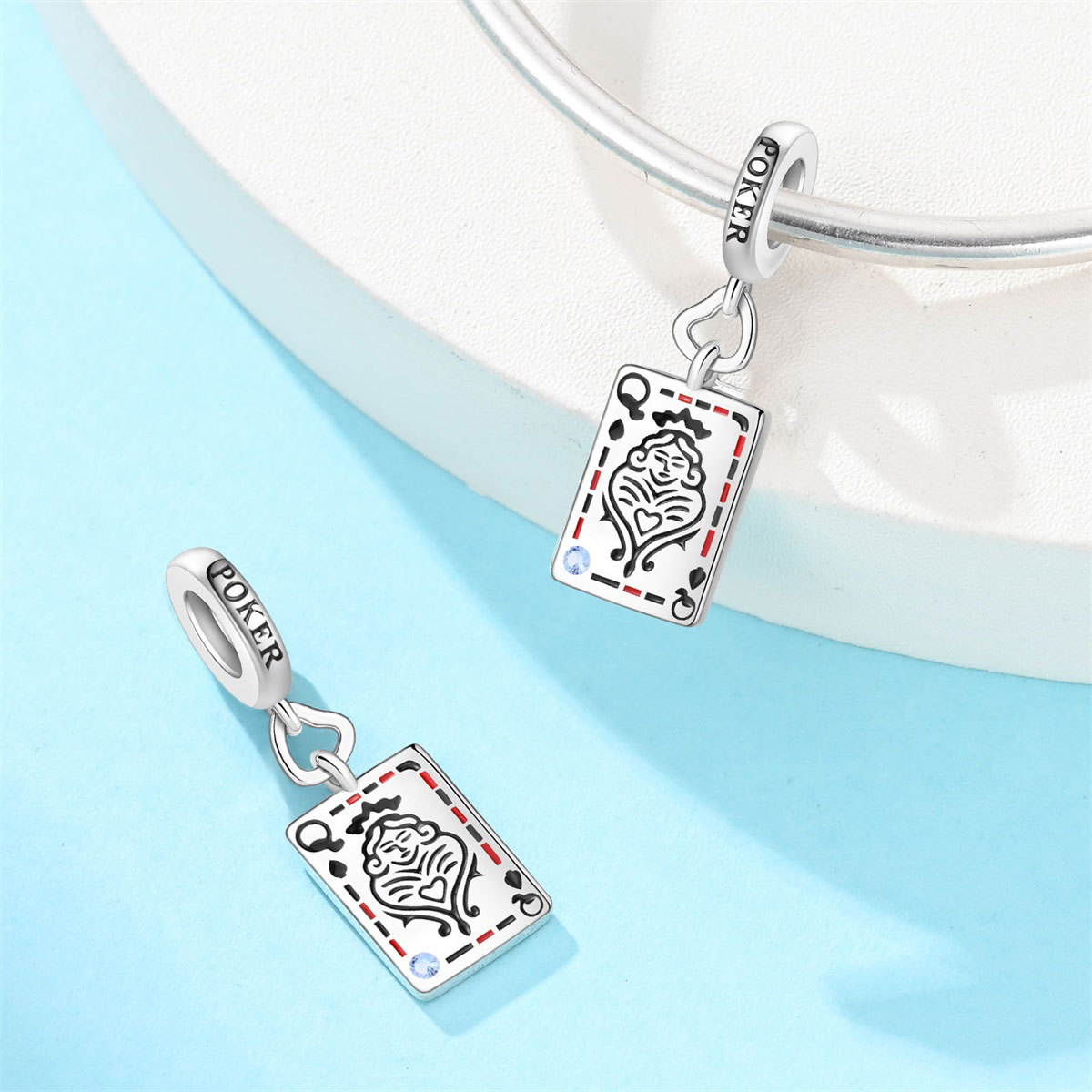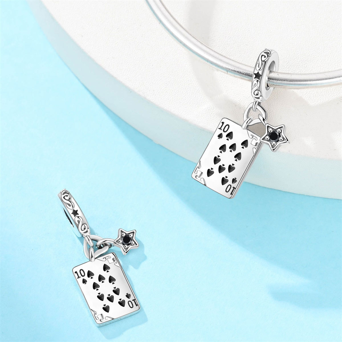 跨境货源魅力扑克牌10JKQA吊坠珠DIY饰品手链项链配件铜镀银新款