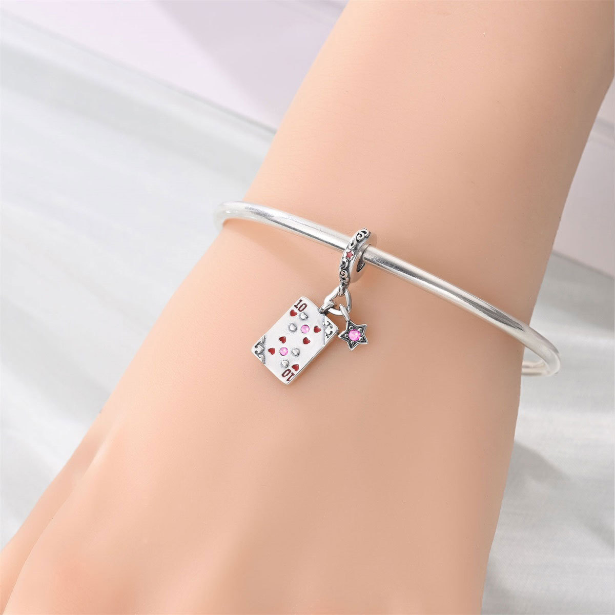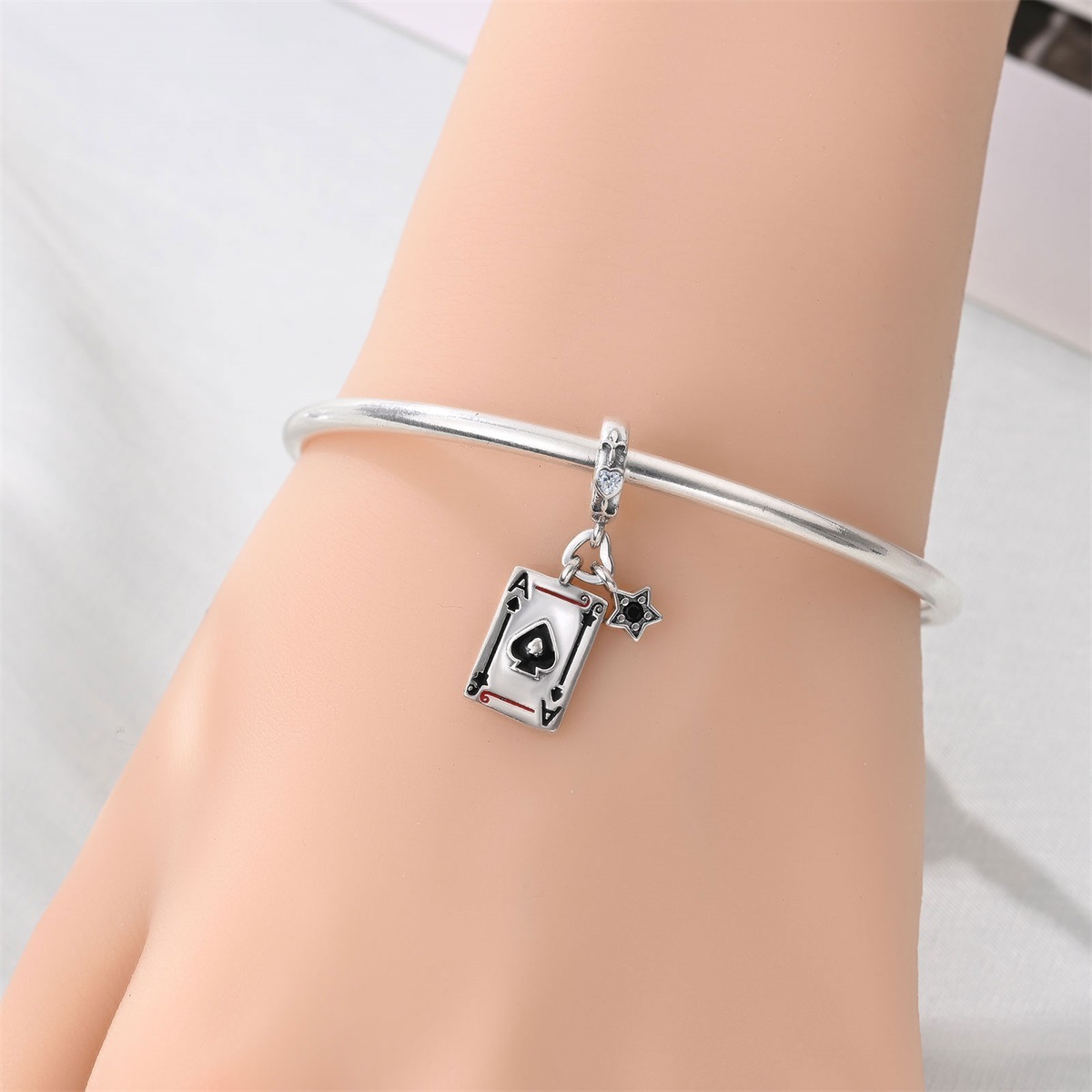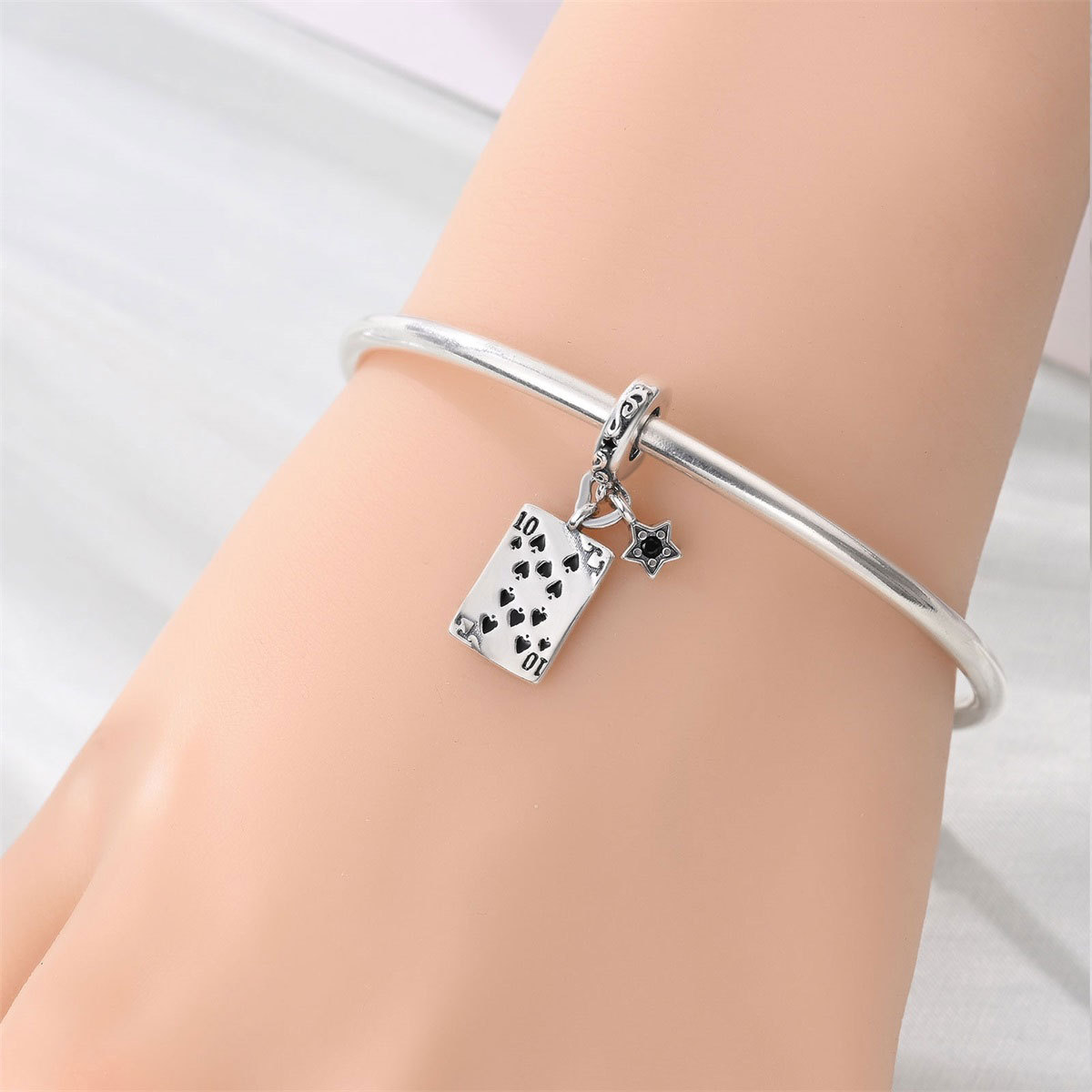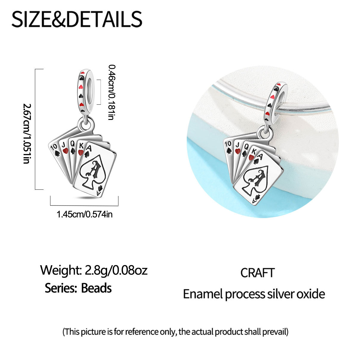 跨境货源魅力扑克牌10JKQA吊坠珠DIY饰品手链项链配件铜镀银新款