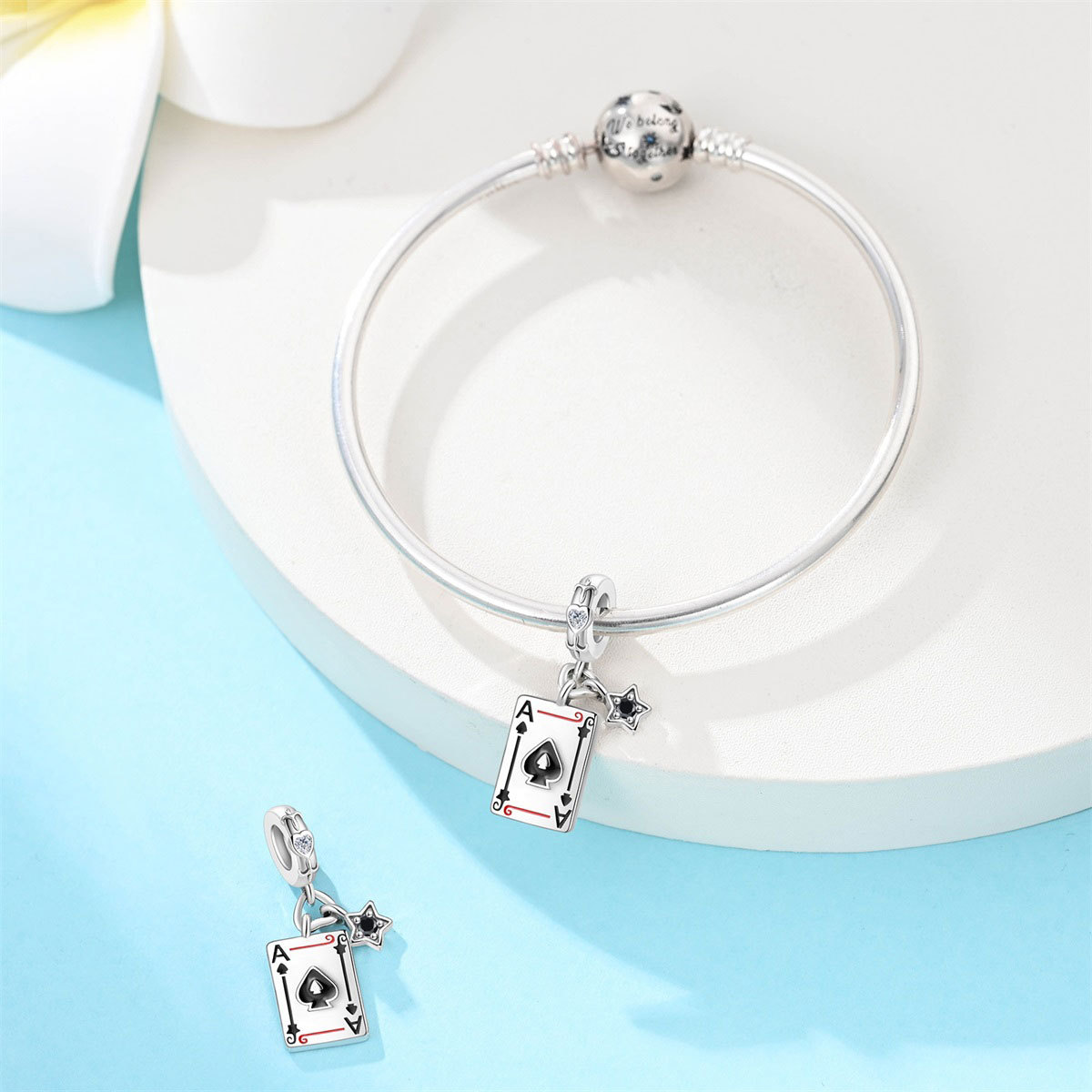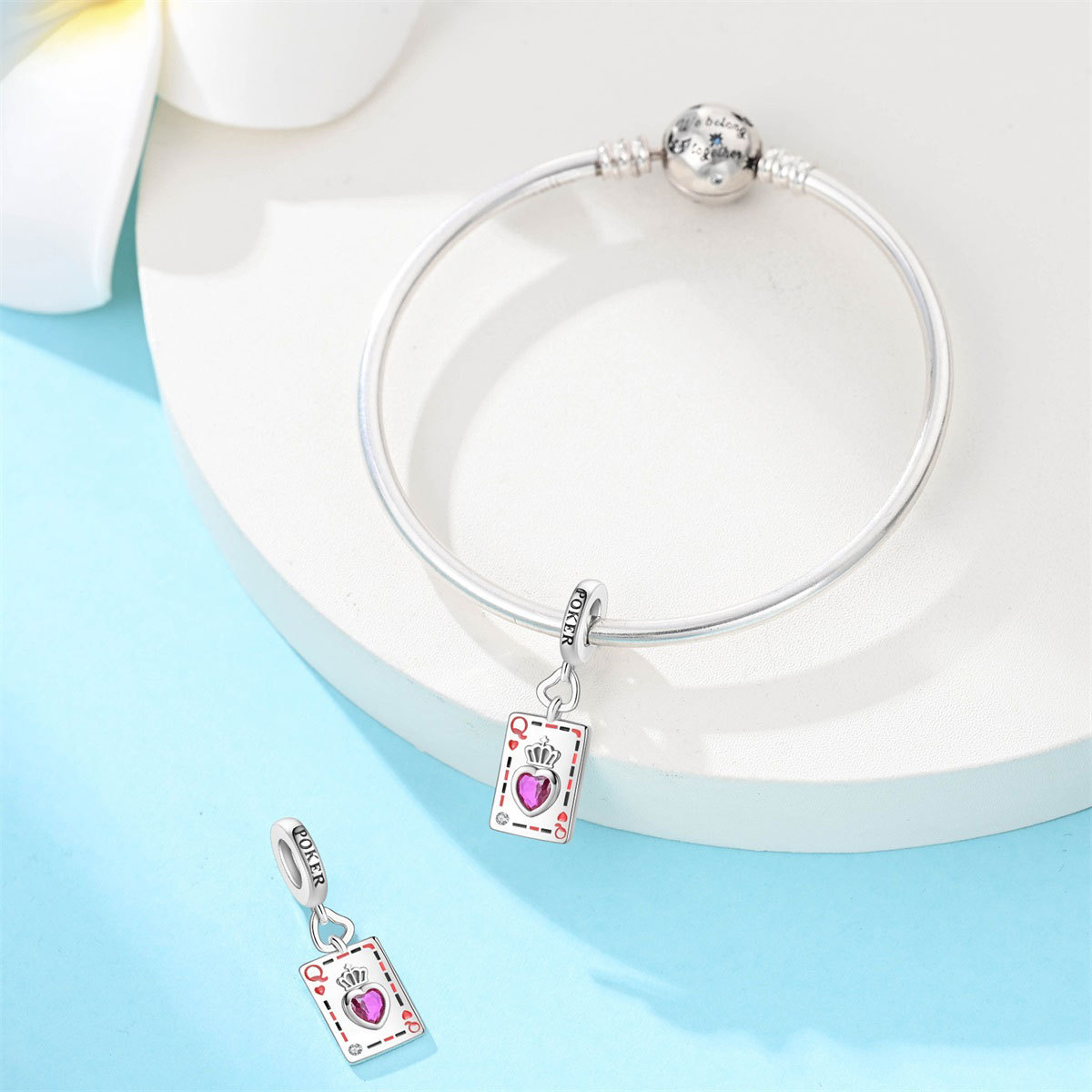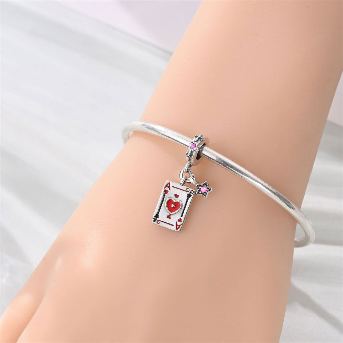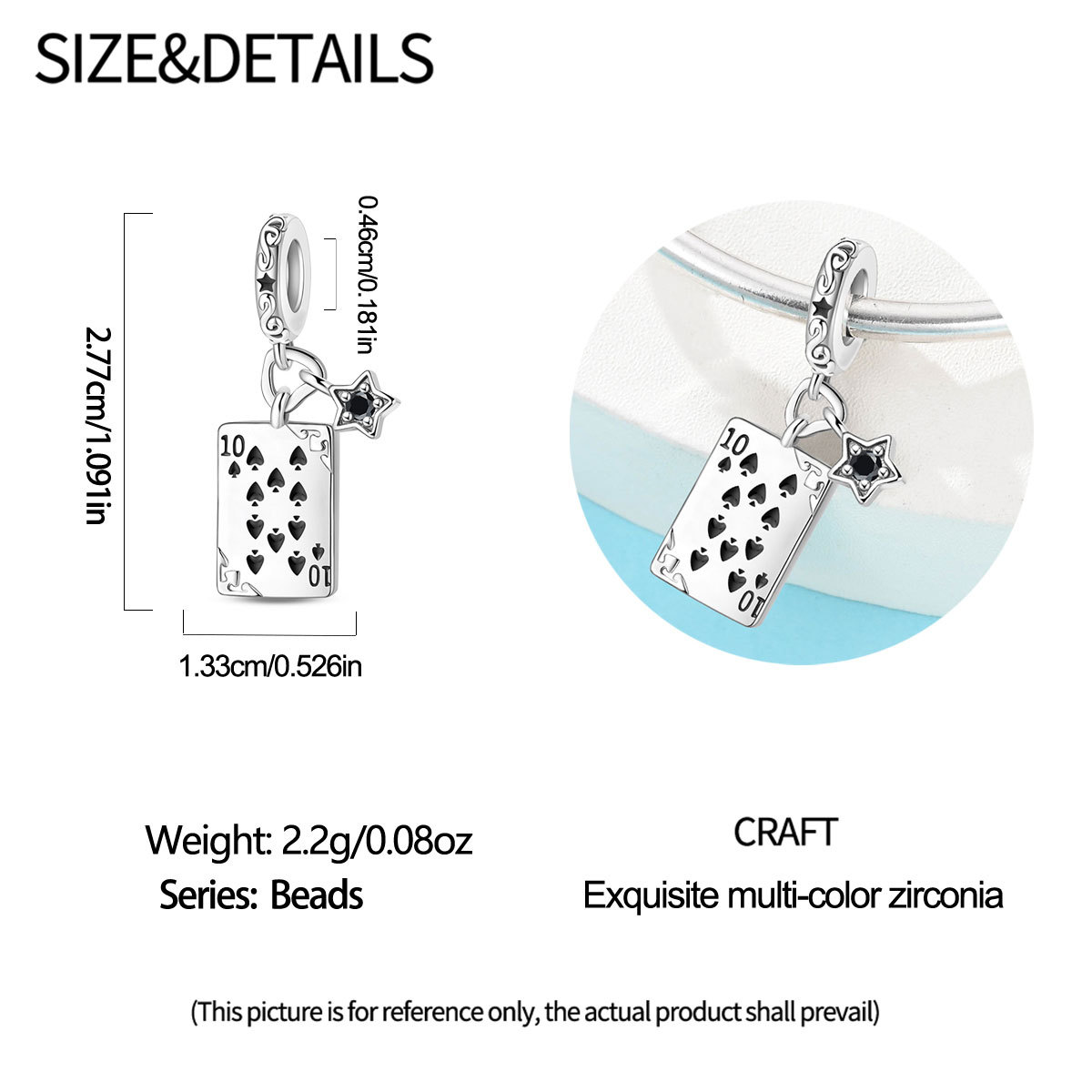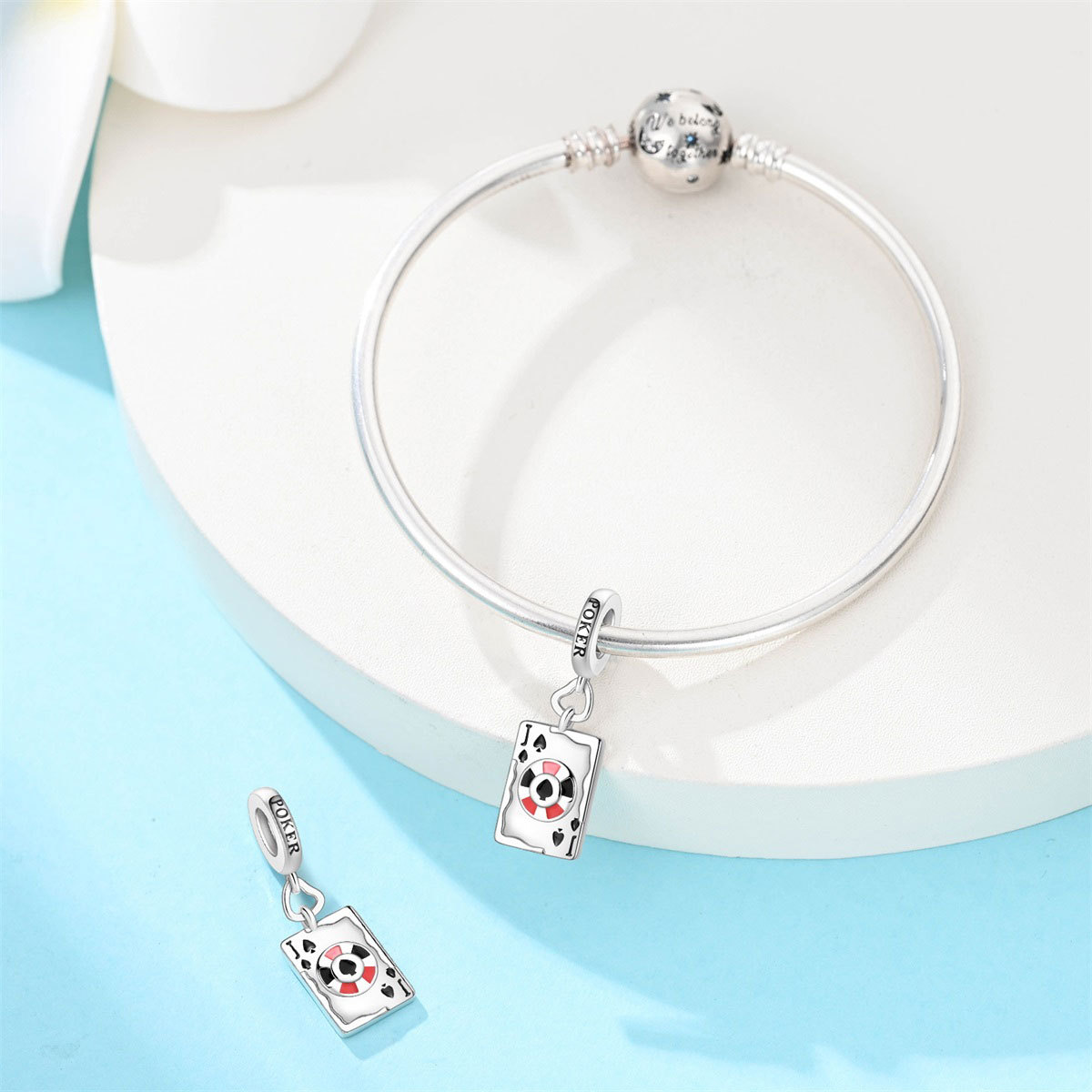 跨境货源魅力扑克牌10JKQA吊坠珠DIY饰品手链项链配件铜镀银新款