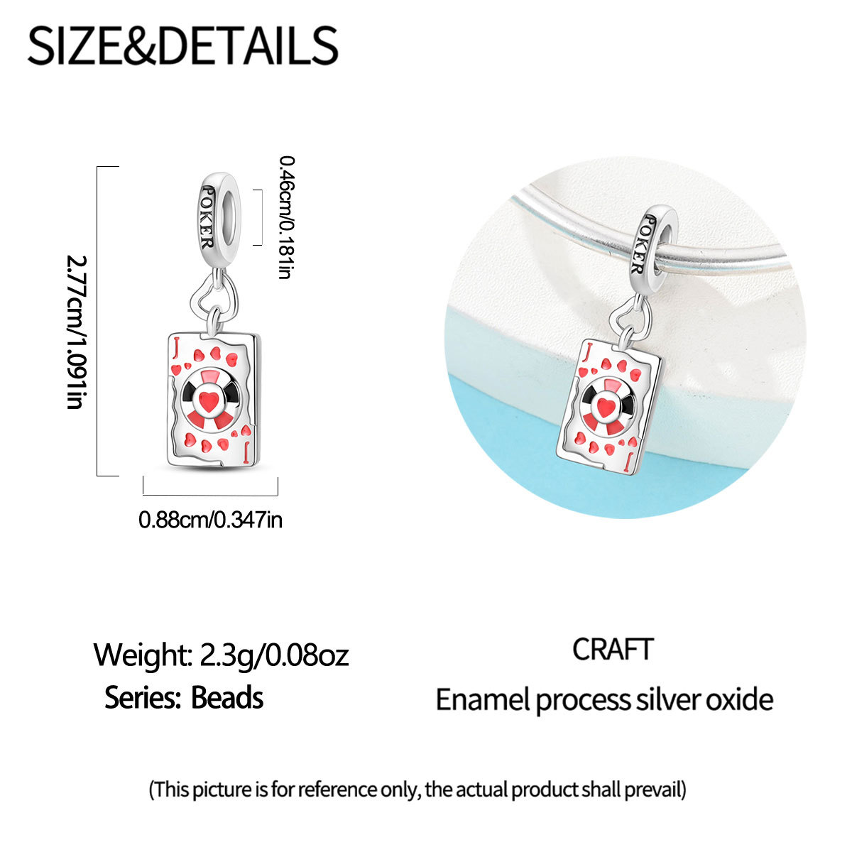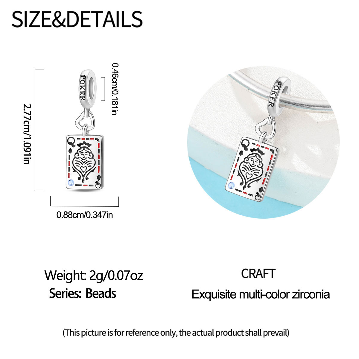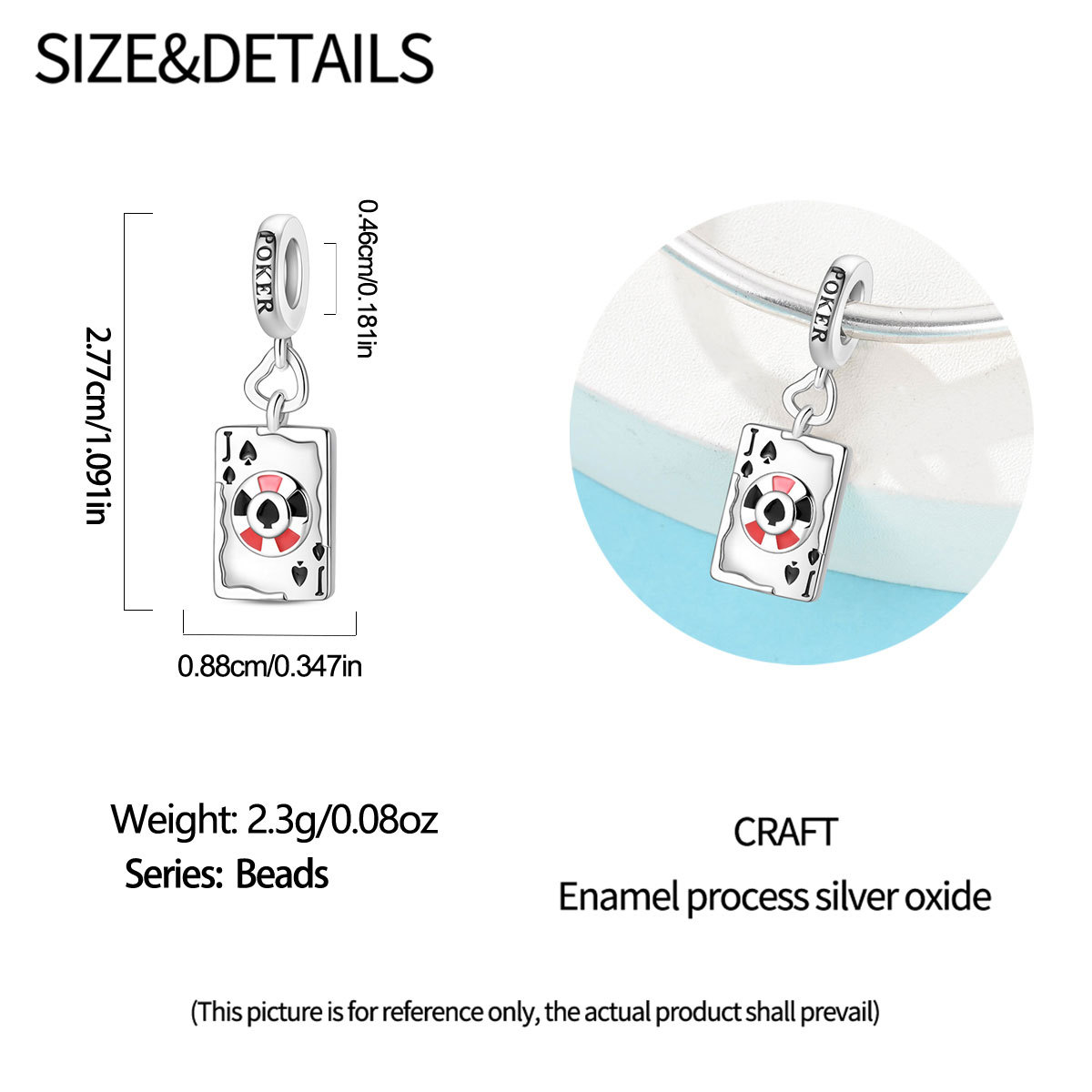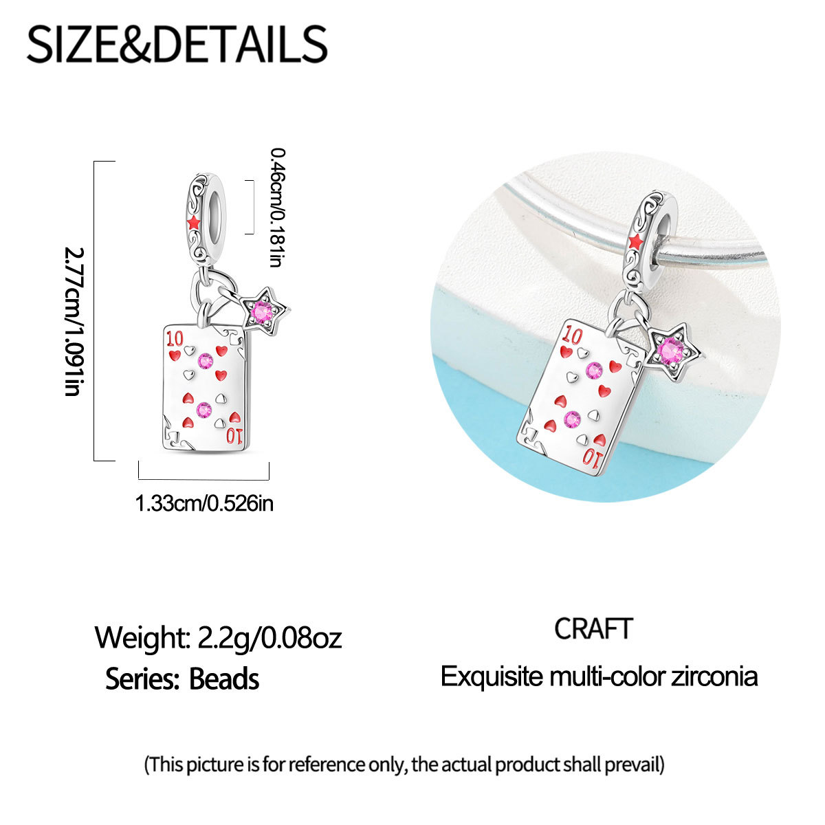 跨境货源魅力扑克牌10JKQA吊坠珠DIY饰品手链项链配件铜镀银新款