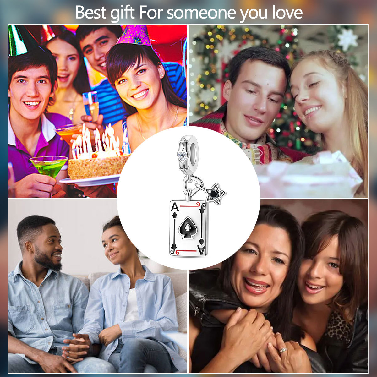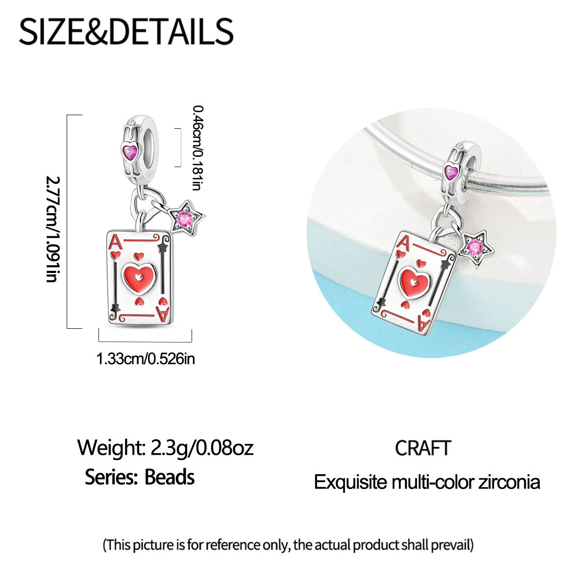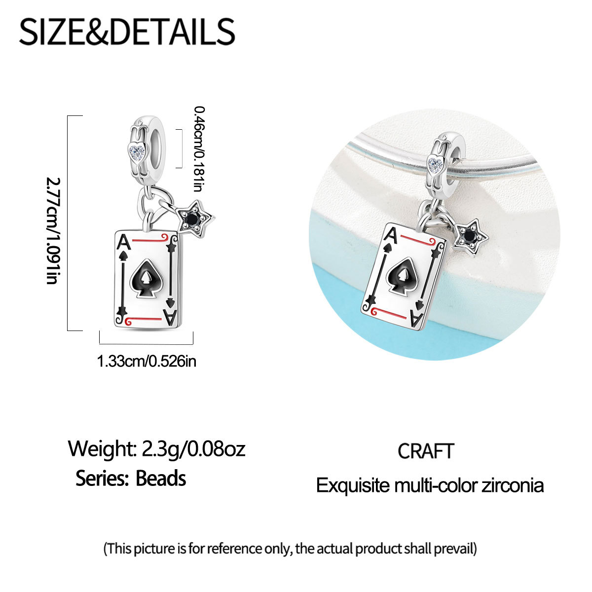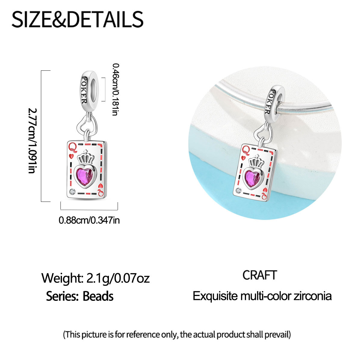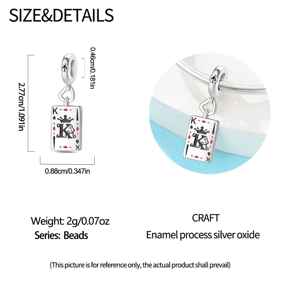跨境货源魅力扑克牌10JKQA吊坠珠DIY饰品手链项链配件铜镀银新款