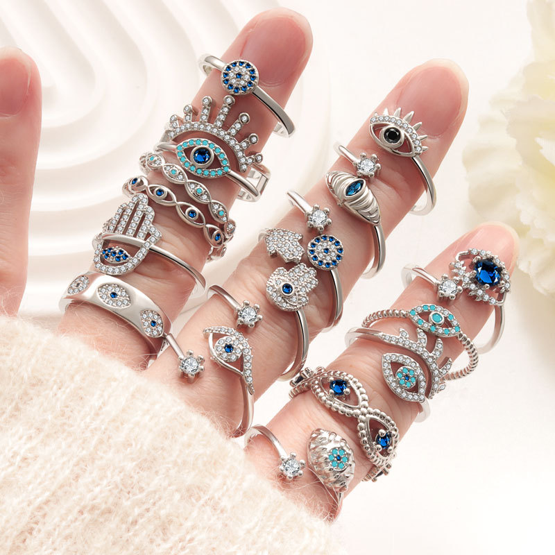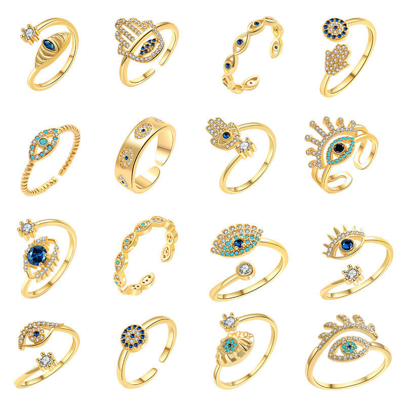 跨境爆品眼睛戒指女13只装铜电镀电镀眼瞳手饰厂家批发
