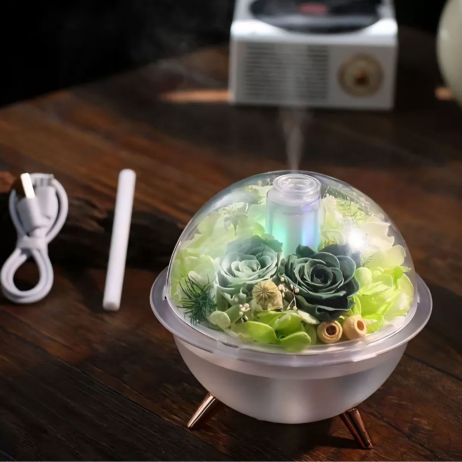 永生花加湿器 氛围灯补水星空投影加湿器圣诞节日礼品创意DIY