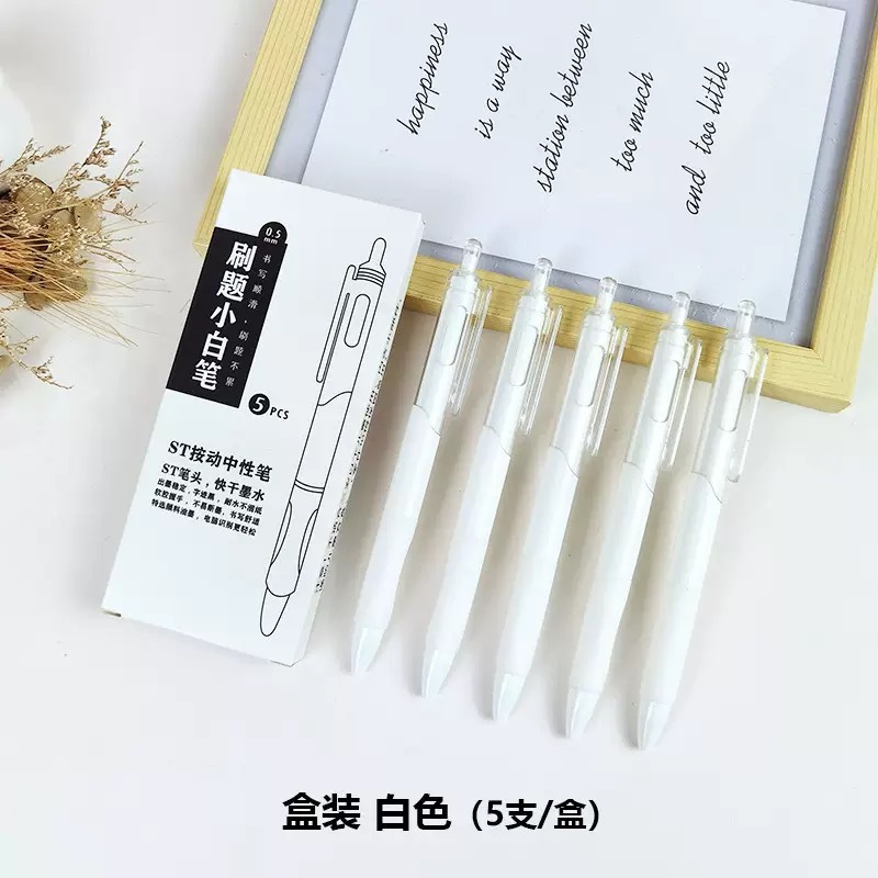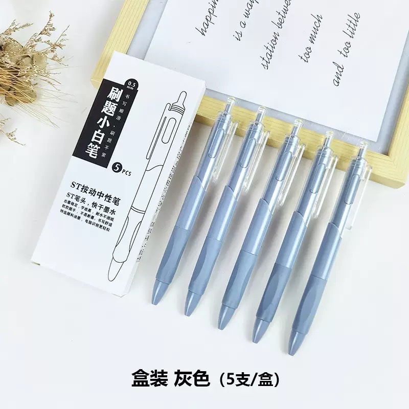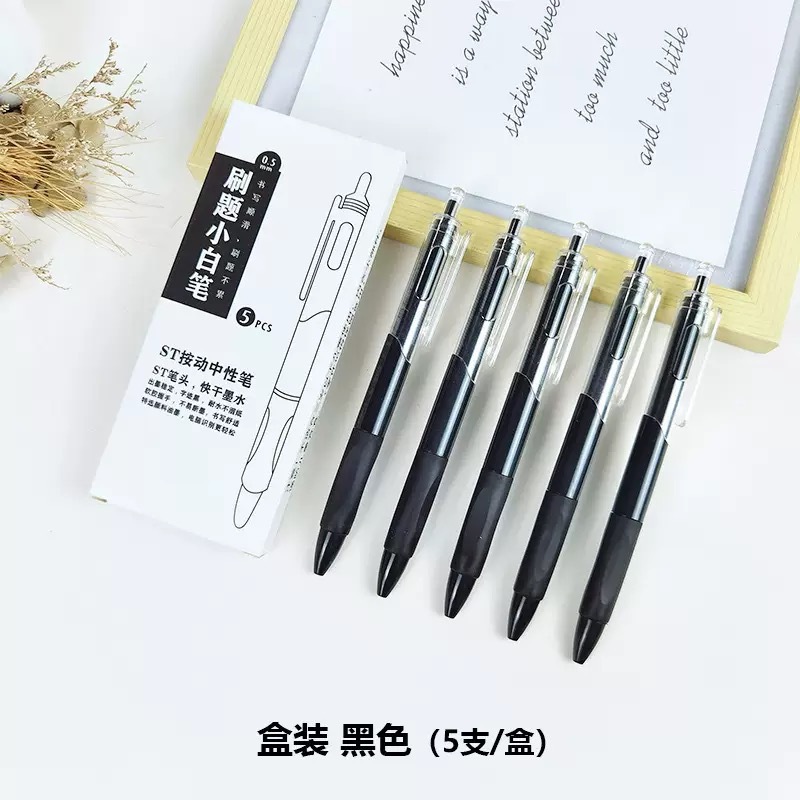 莫兰迪色按动小白笔st头速干刷题笔中性笔黑笔学生考试办公圆珠笔