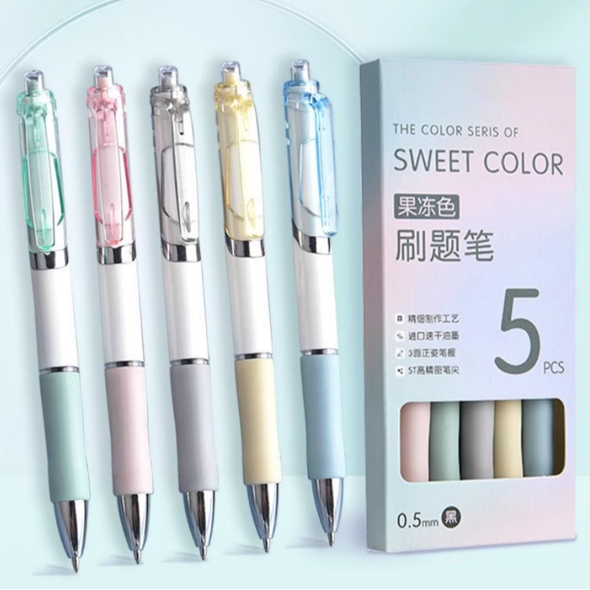 可爱糖果色K35按动中性笔子弹头学生考试刷题笔黑色0.5办公签字笔