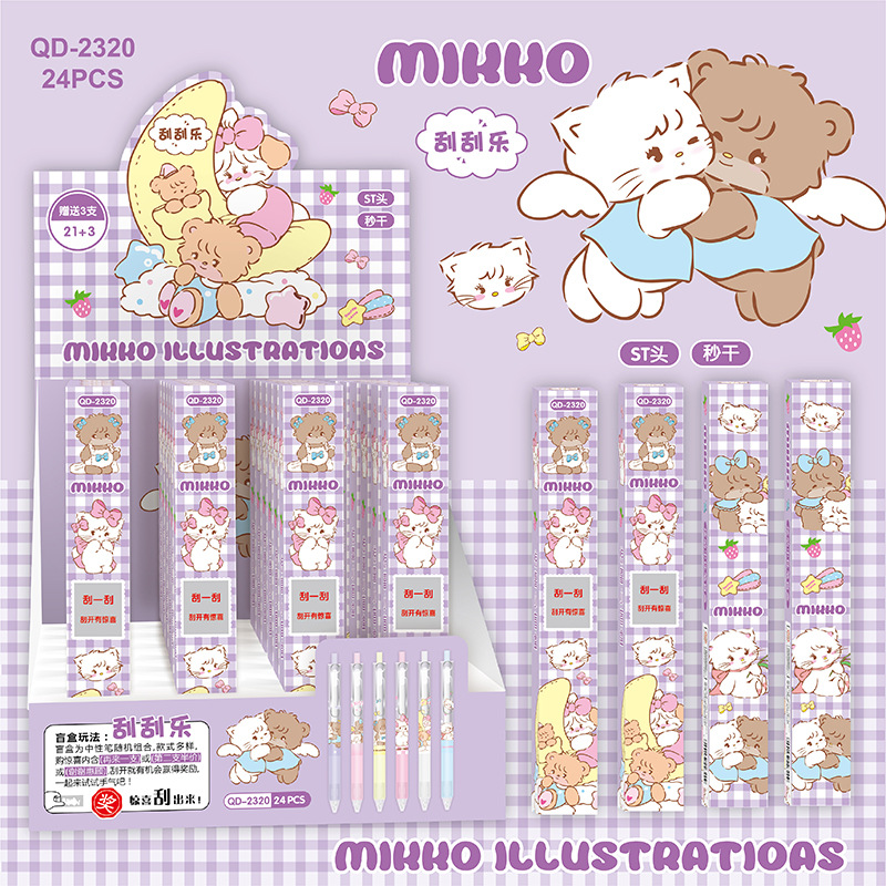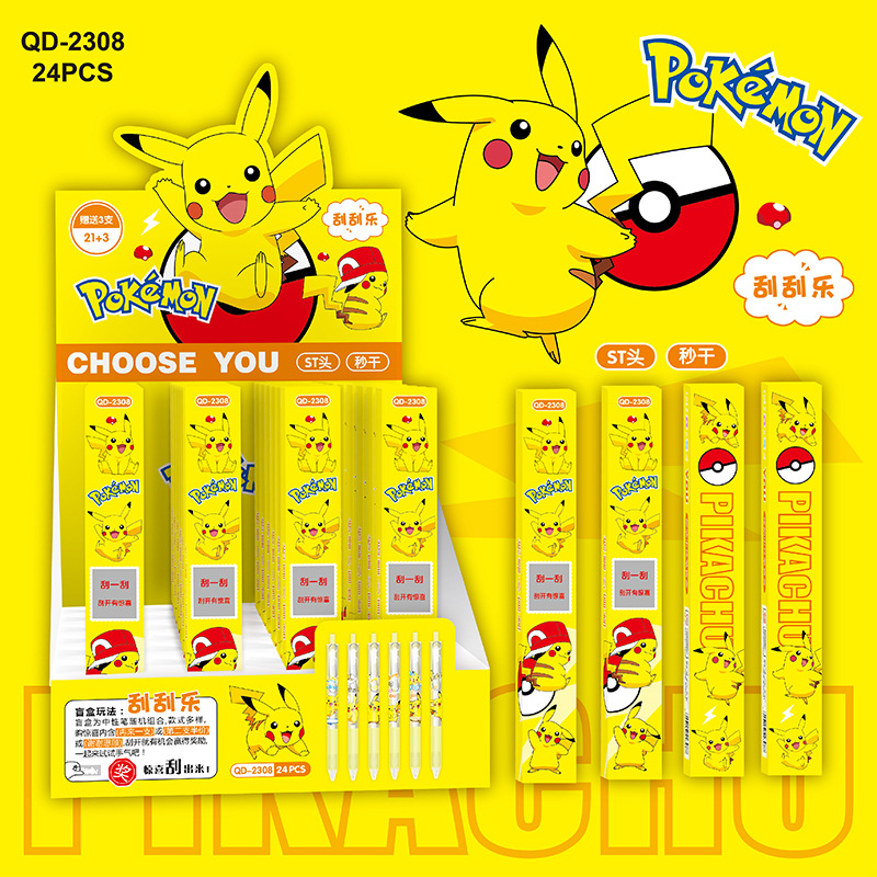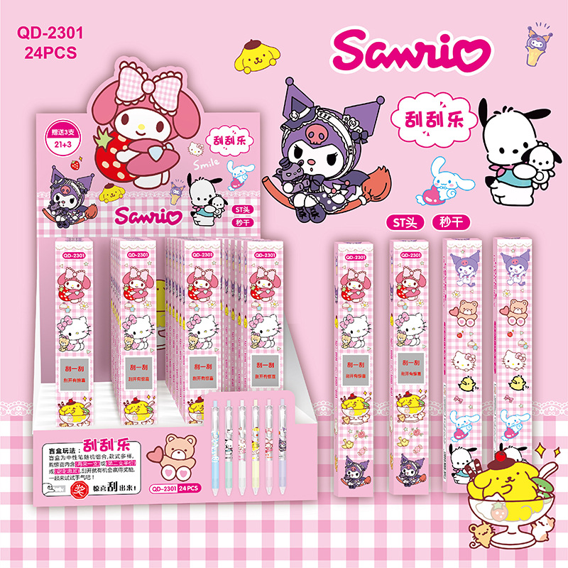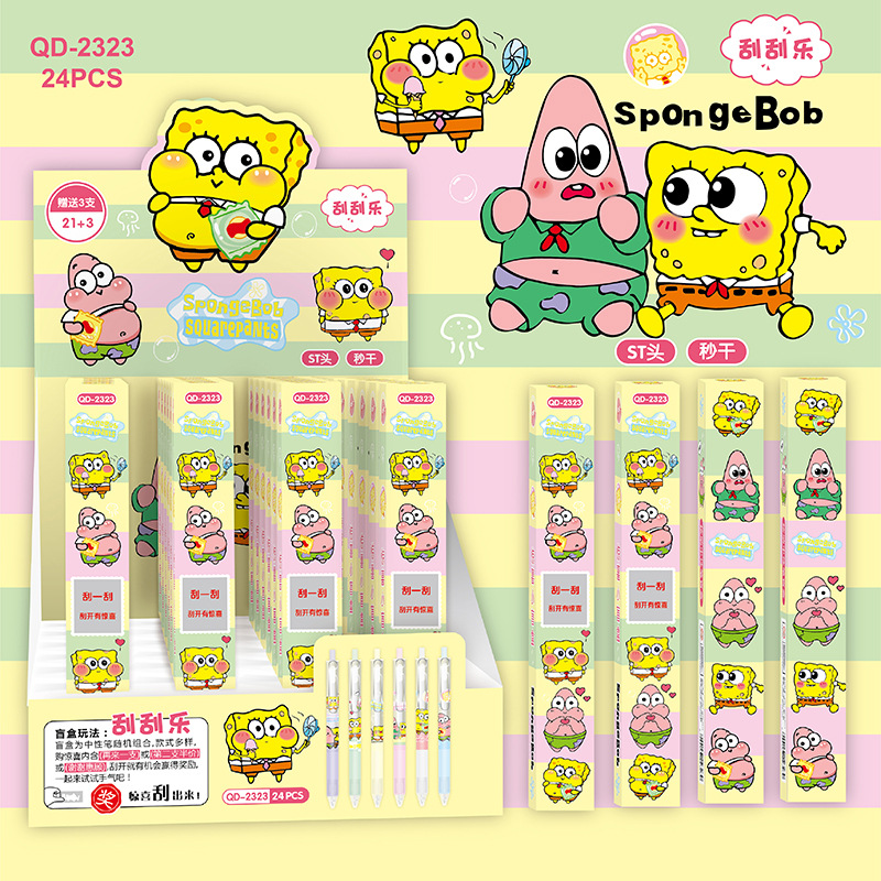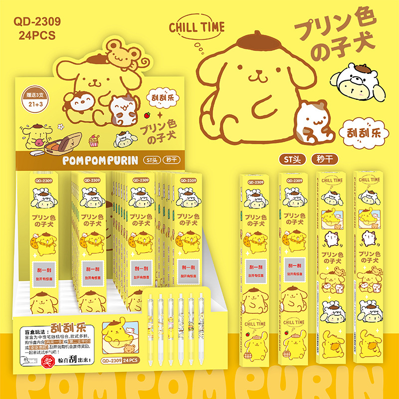 YQiDuo男生女生小精灵刮刮乐盲盒按动笔金属笔夹按压中性笔ST21+3