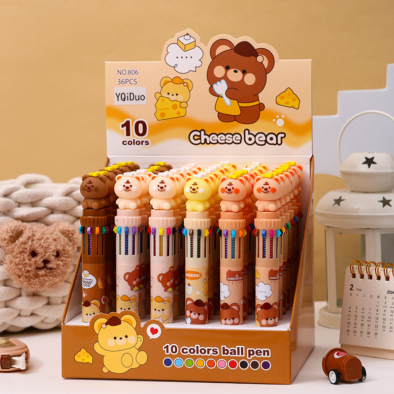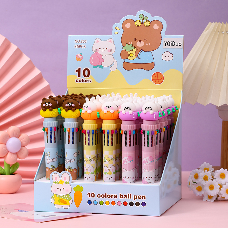 卡通系列十色圆珠笔学生可爱彩色手帐笔儿童奖品笔礼品笔创意文具