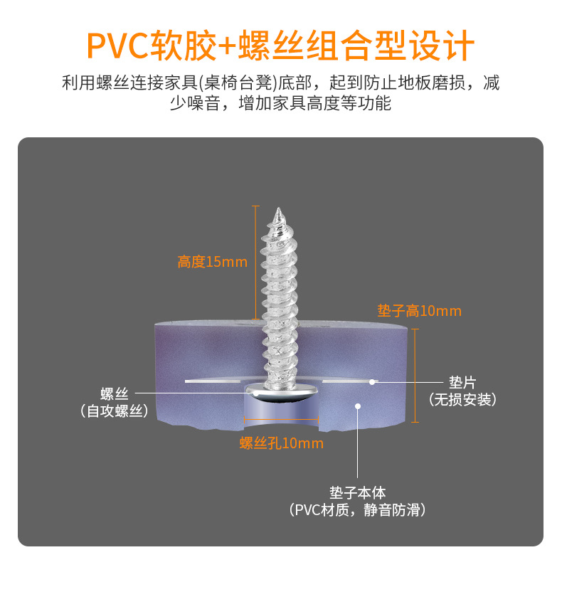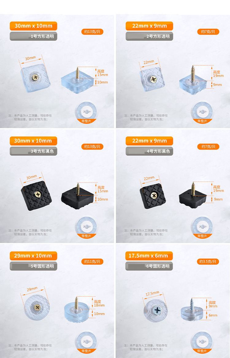 椅子脚钉静音耐磨家具柜子茶几沙发腿桌腿垫凳子脚垫保护地板