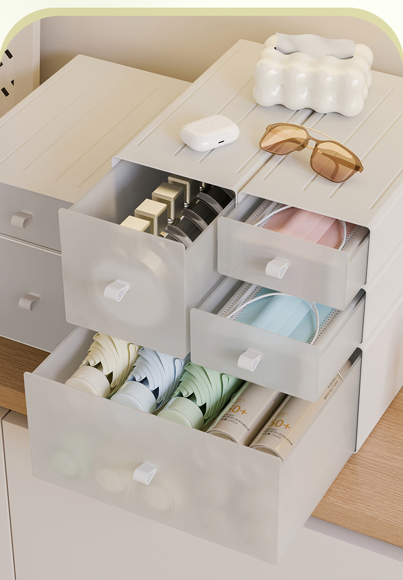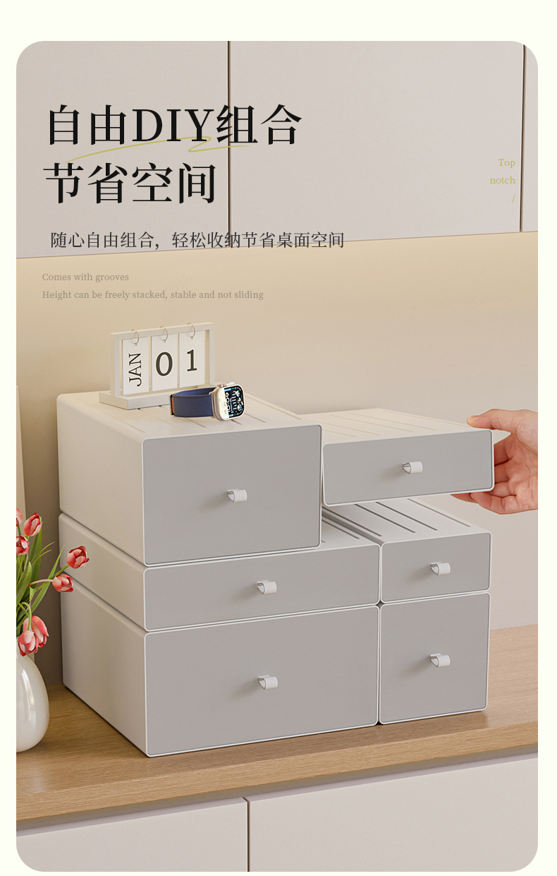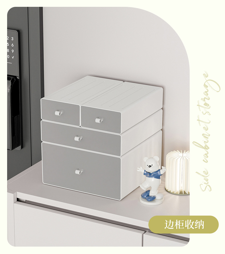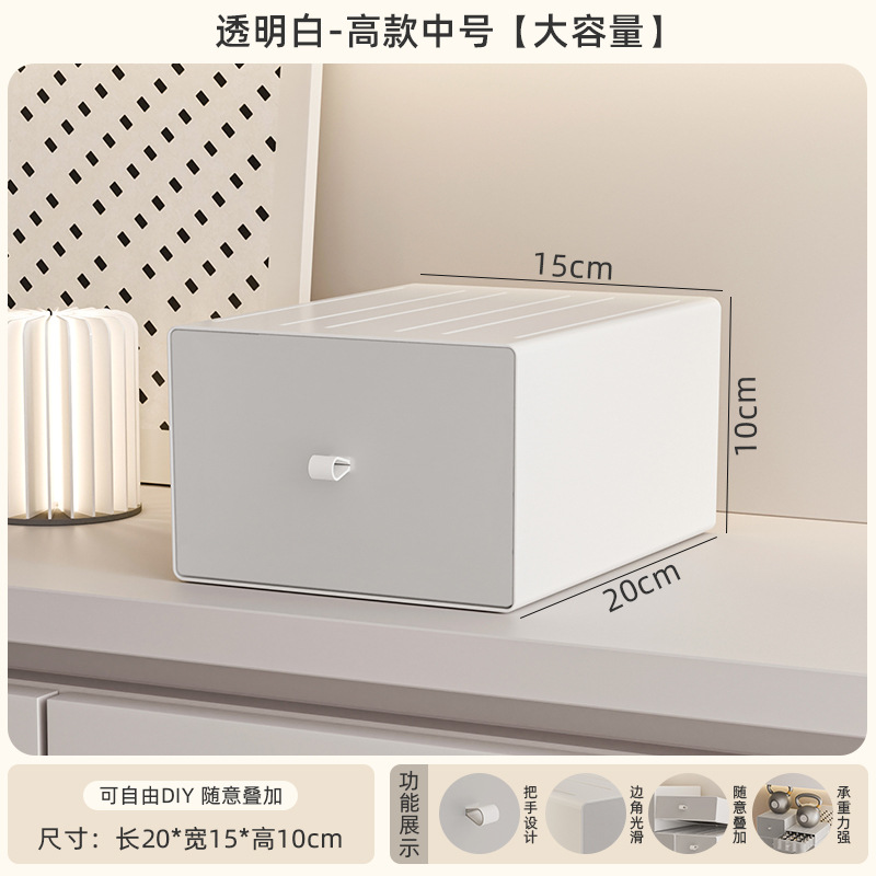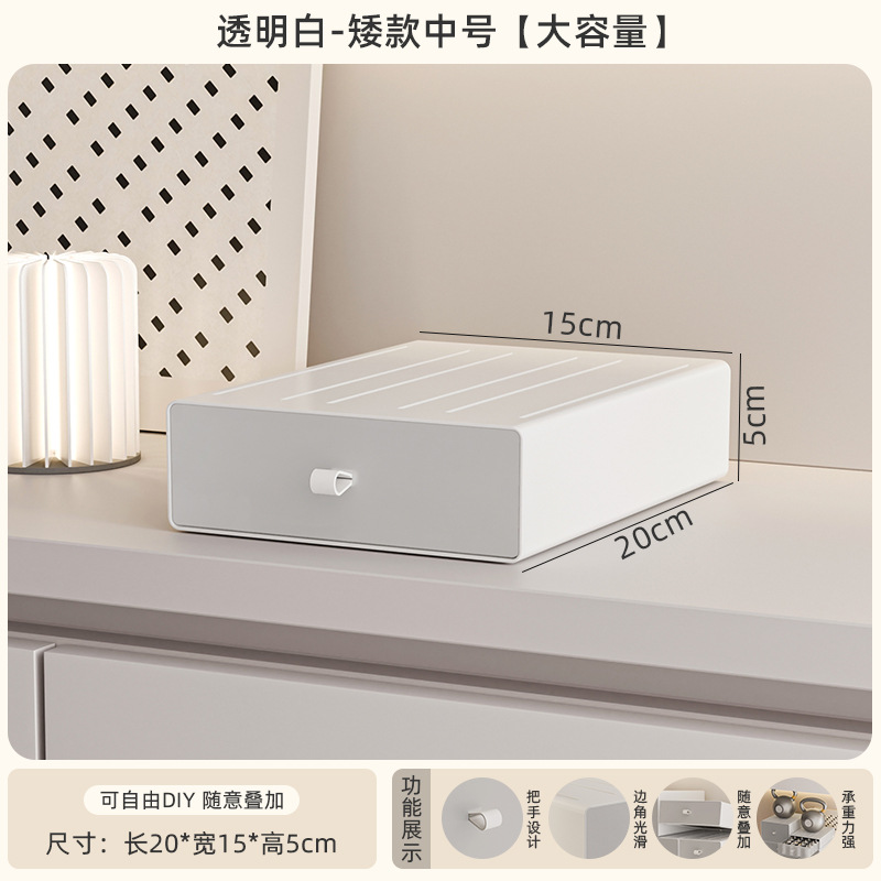 DIY纯白塑料桌面收纳盒 学生宿舍办公室整理收纳纯色小抽屉盒批发