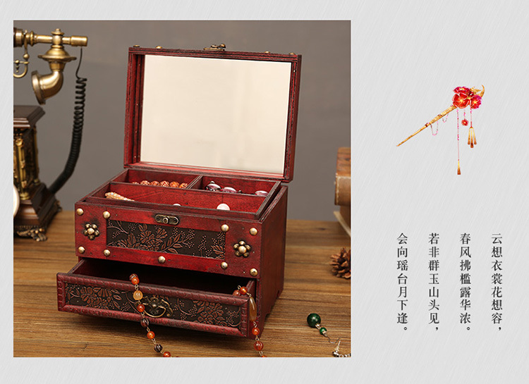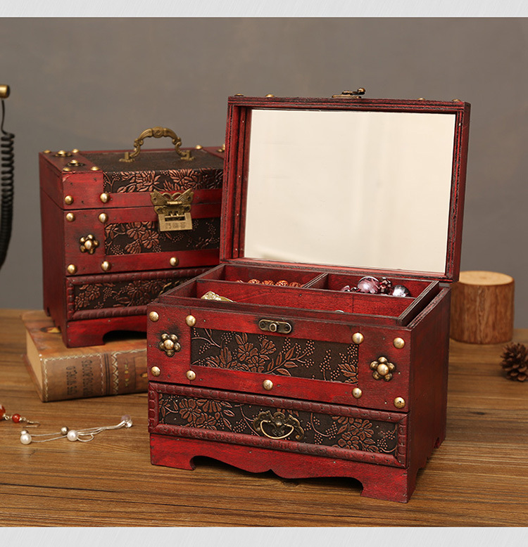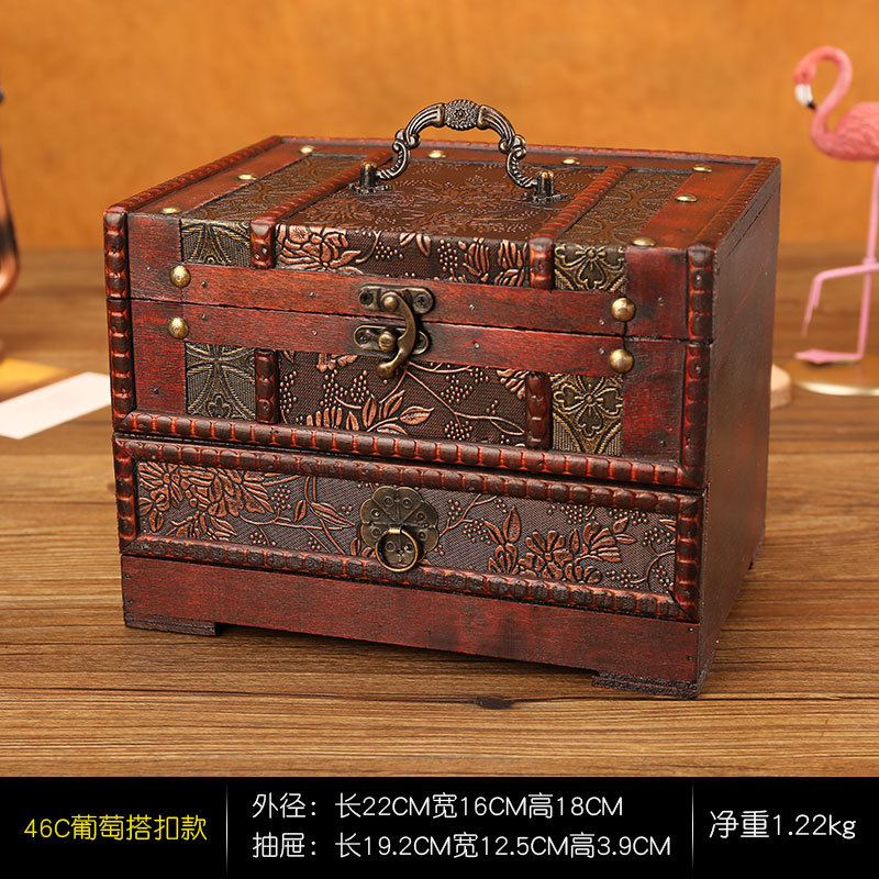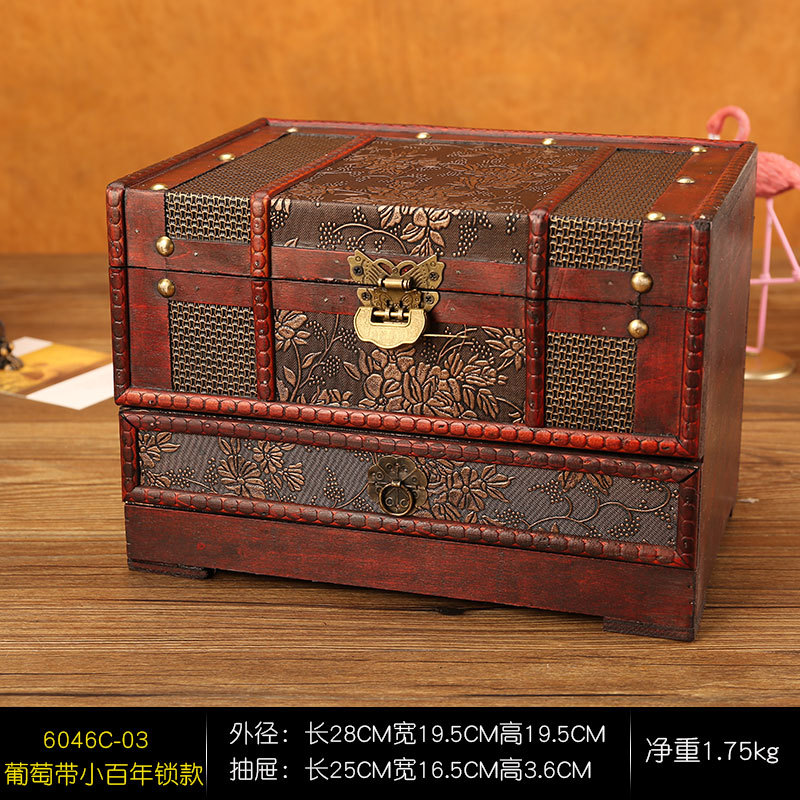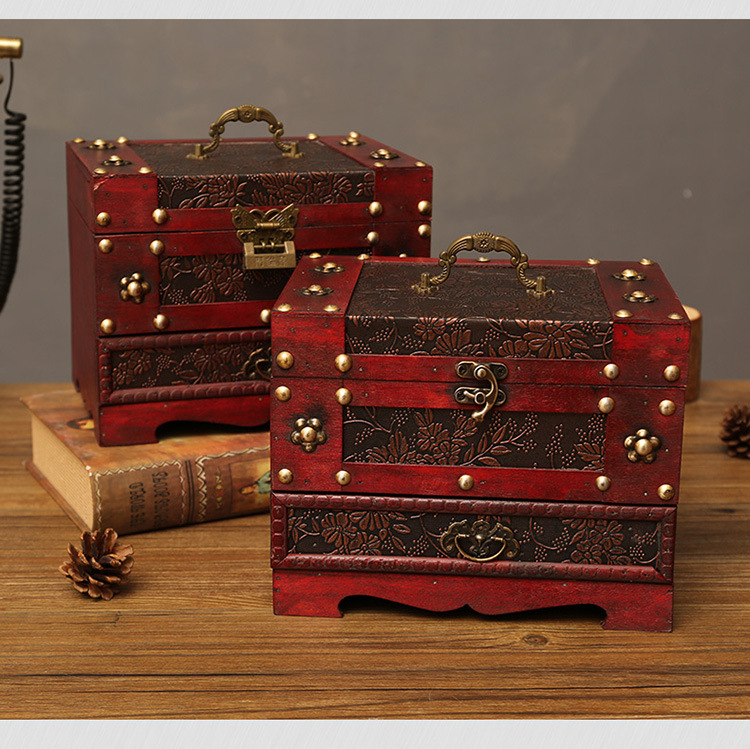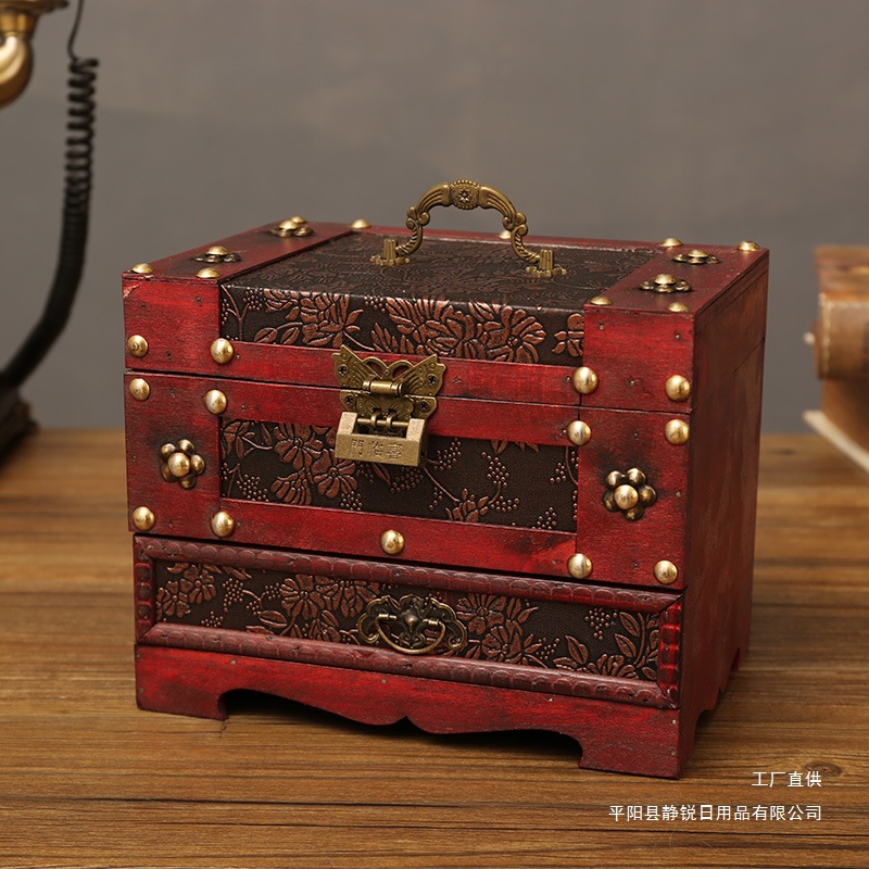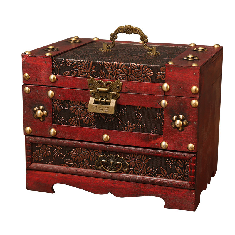 创意古风结婚带锁手饰品项链发簪首饰盒复古收纳盒木盒子梳妆盒