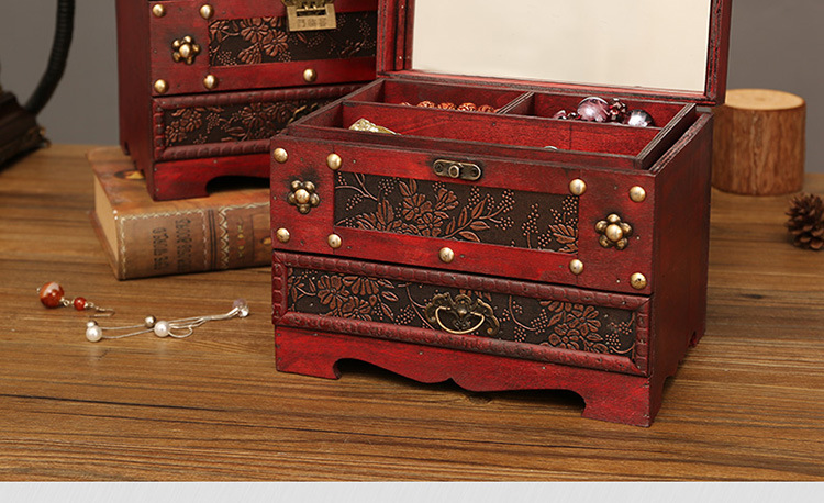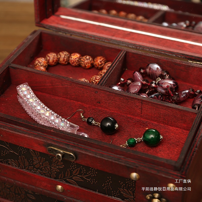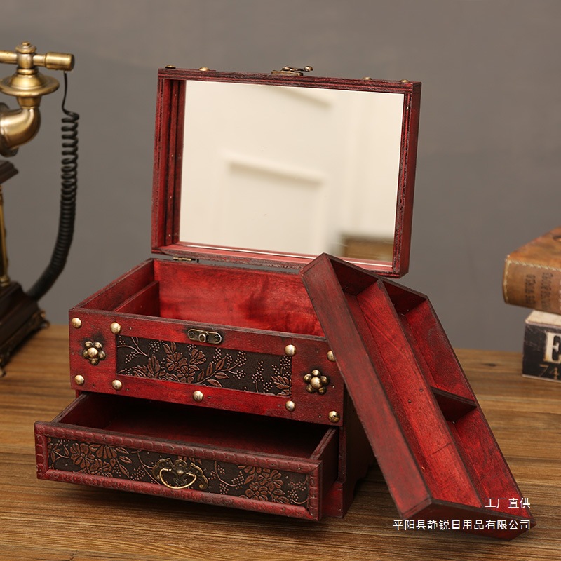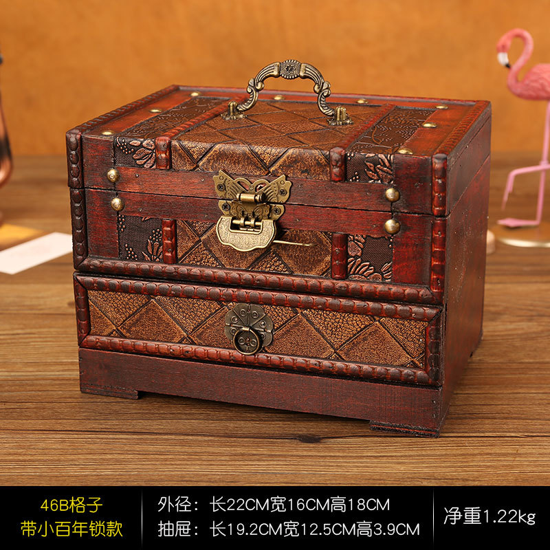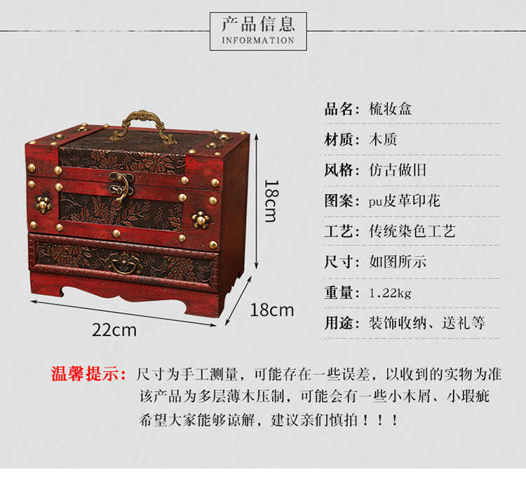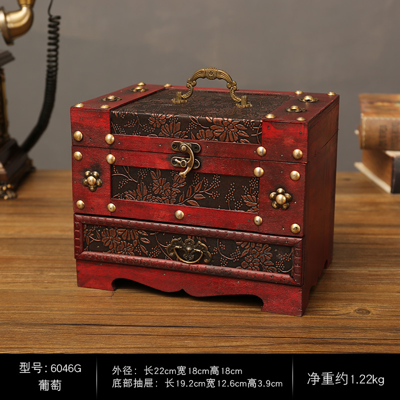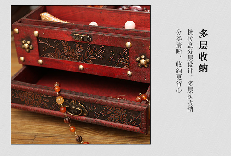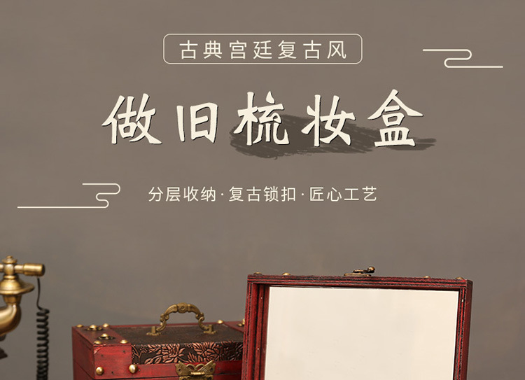 创意古风结婚带锁手饰品项链发簪首饰盒复古收纳盒木盒子梳妆盒