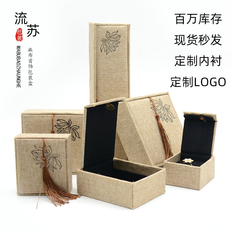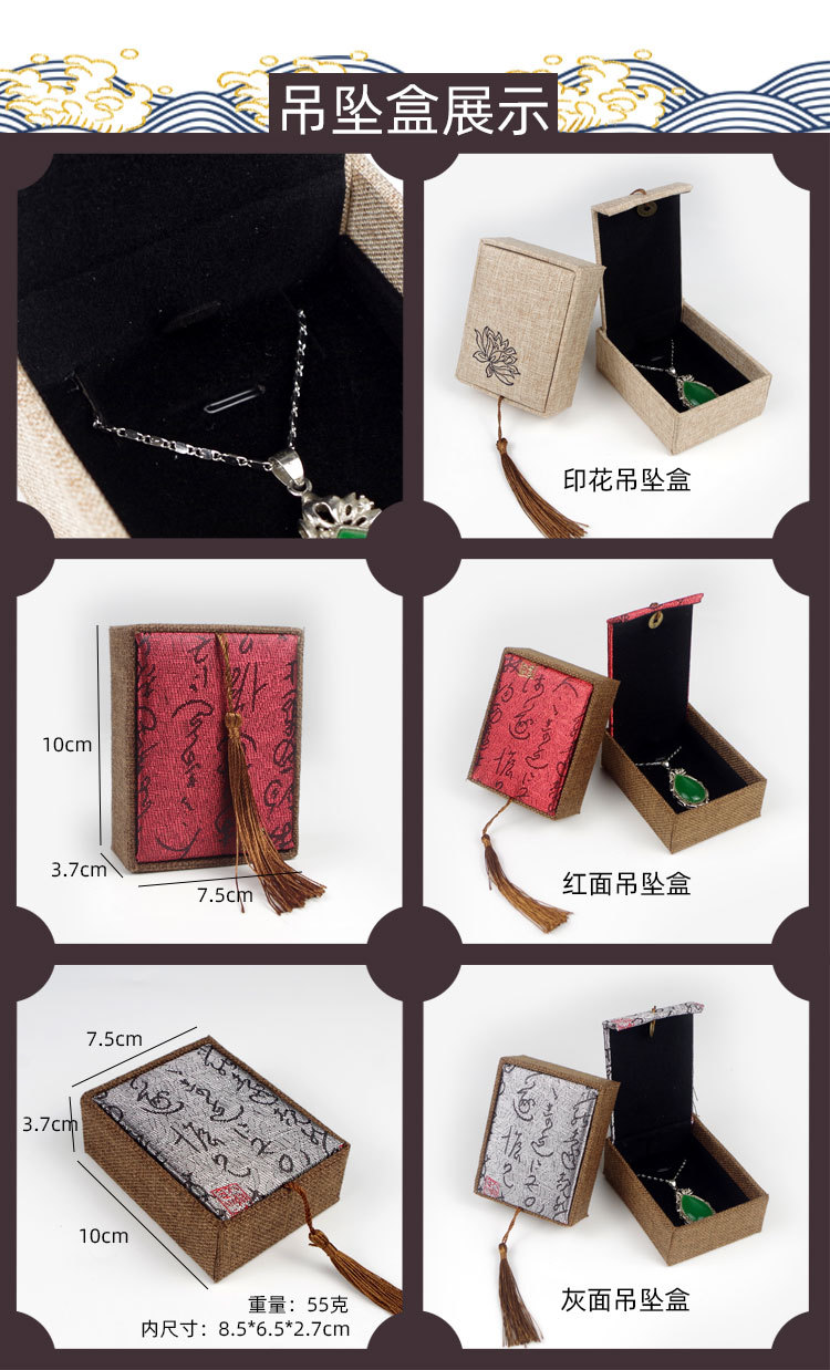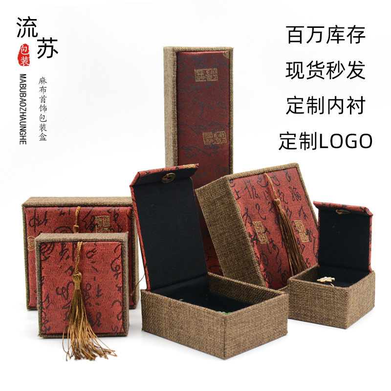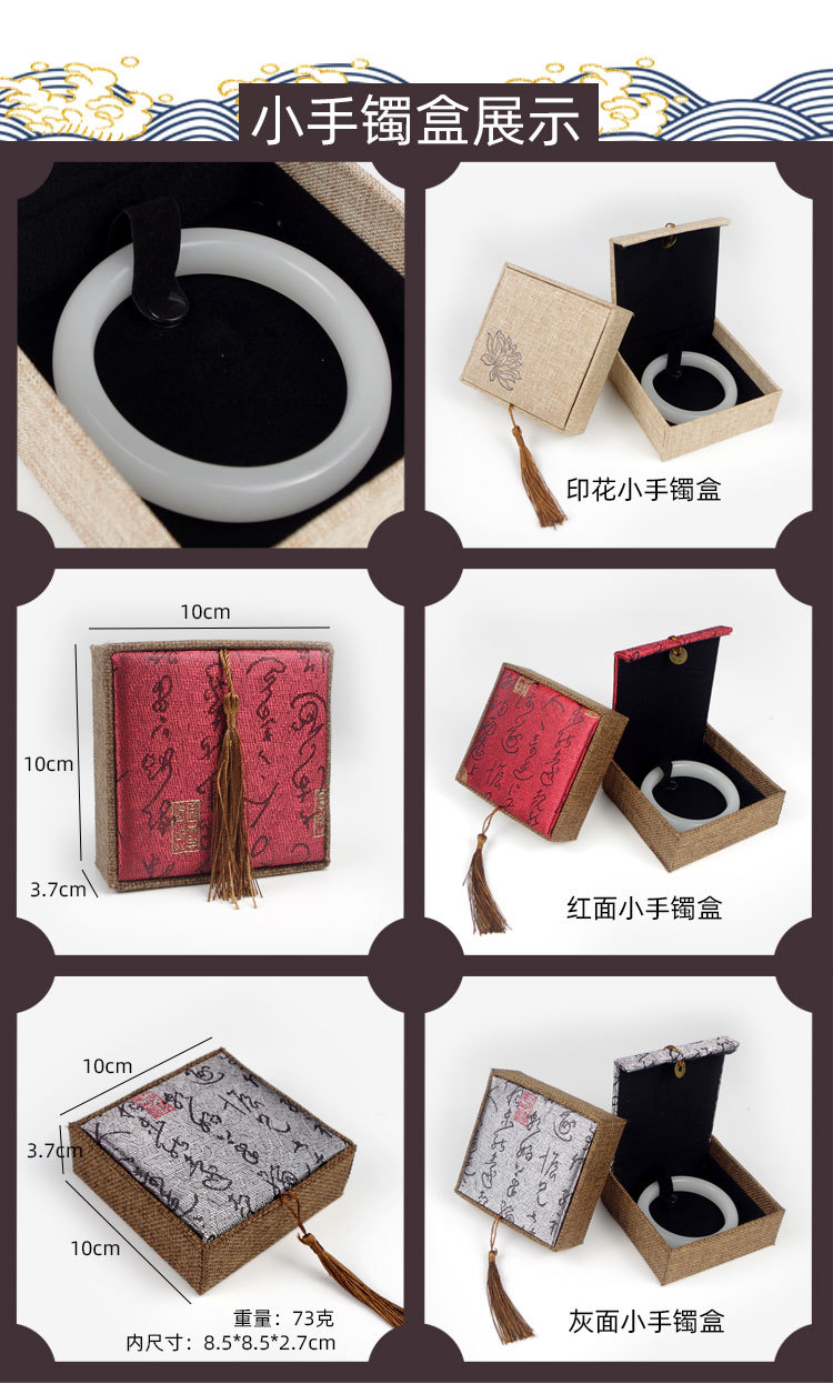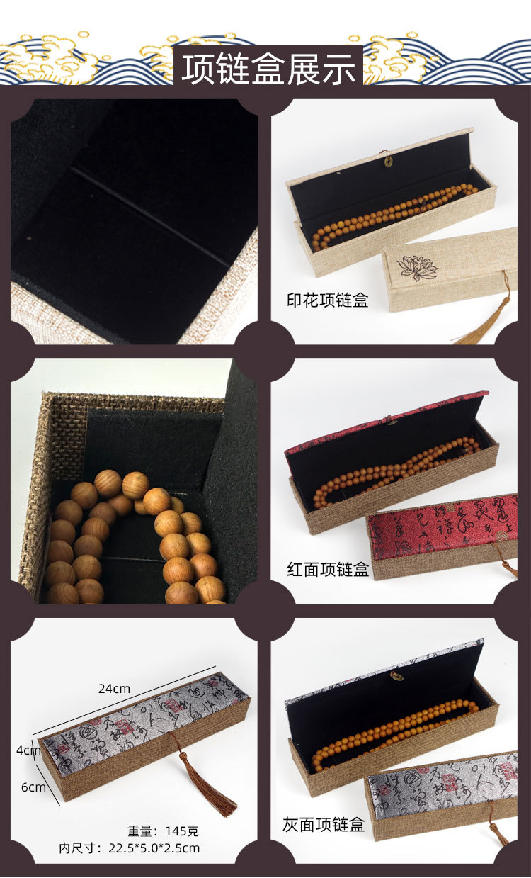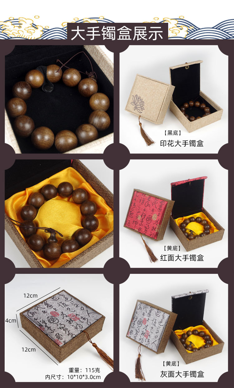 木质麻布流苏大号佛珠首饰品盒玉器手镯手链手串包装盒子批发