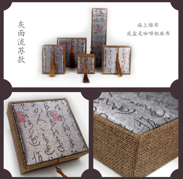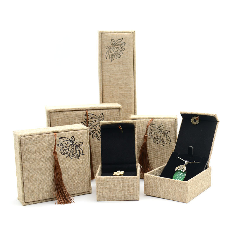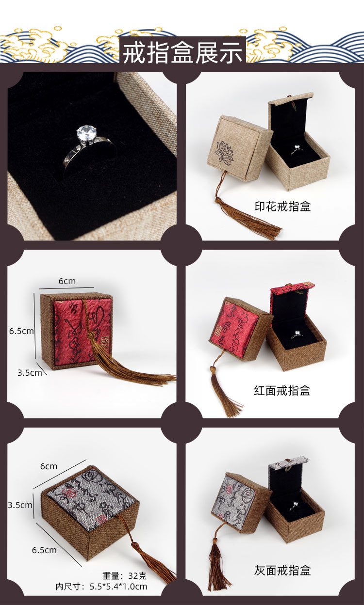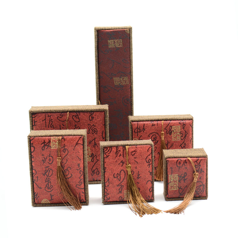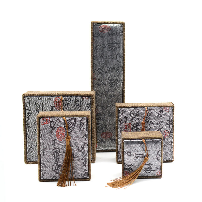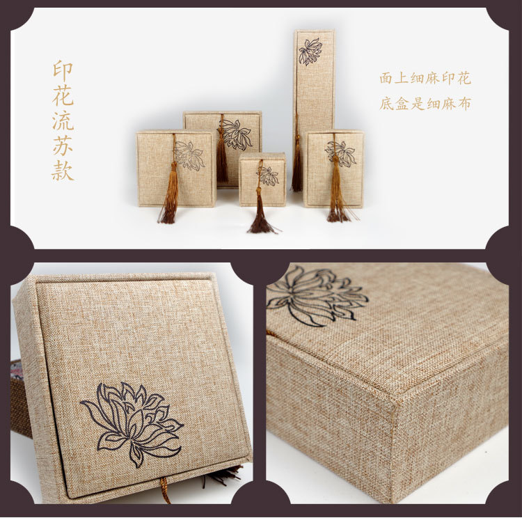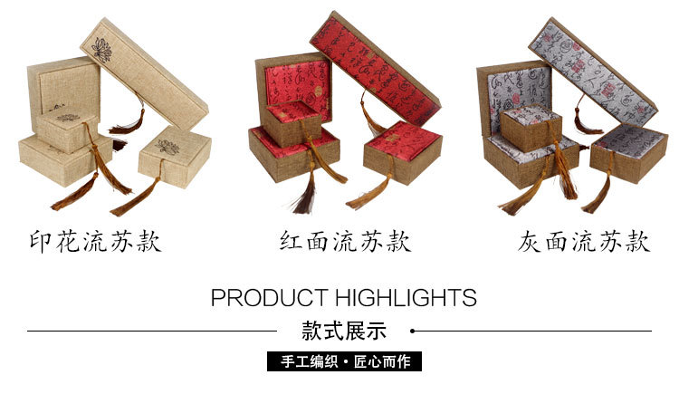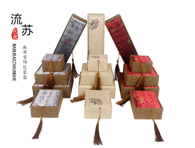 木质麻布流苏大号佛珠首饰品盒玉器手镯手链手串包装盒子批发