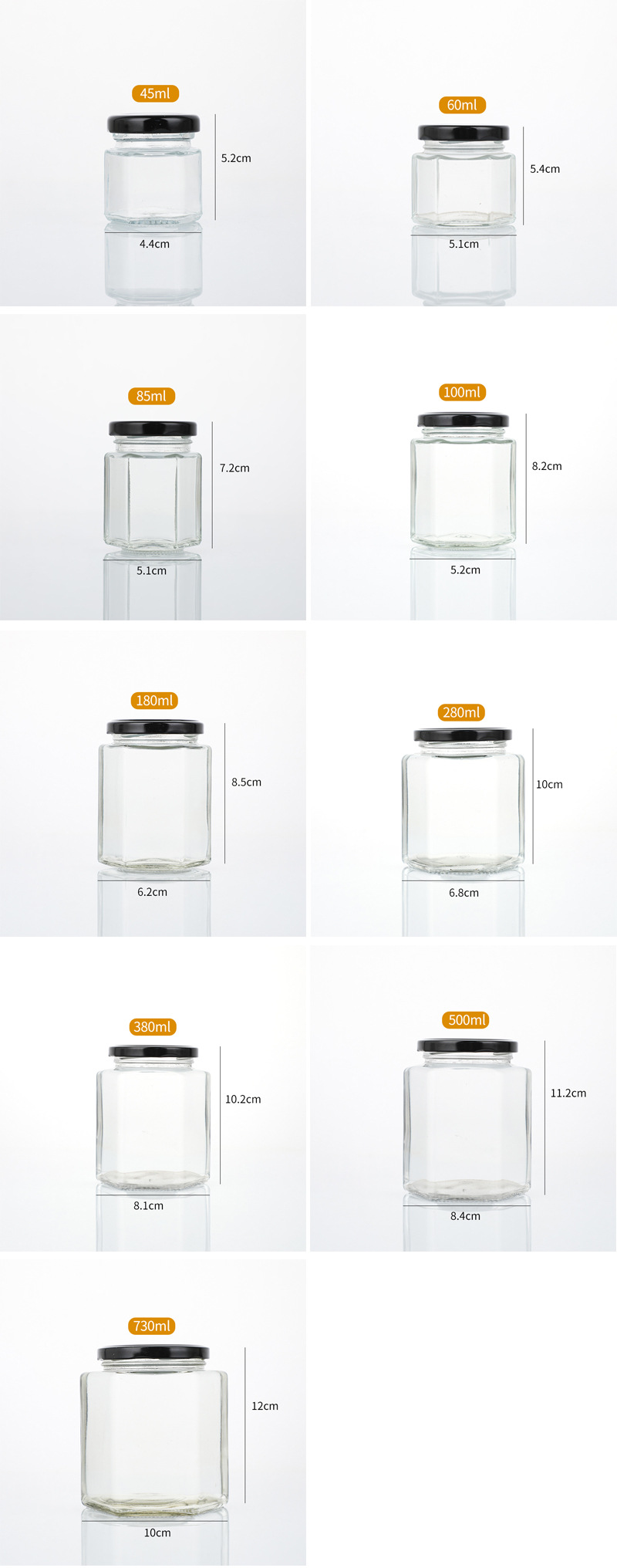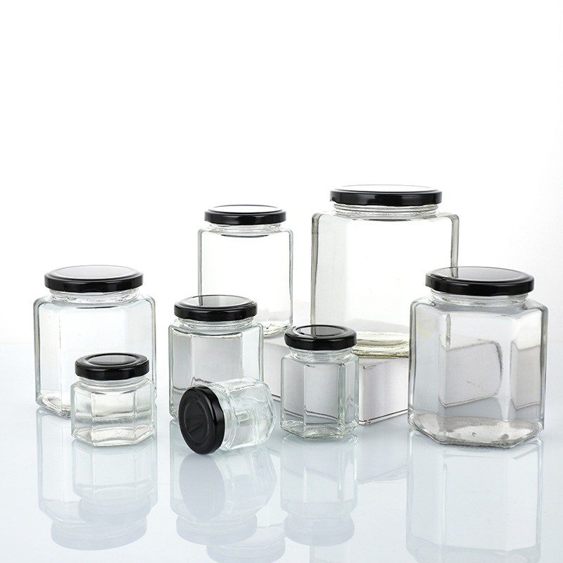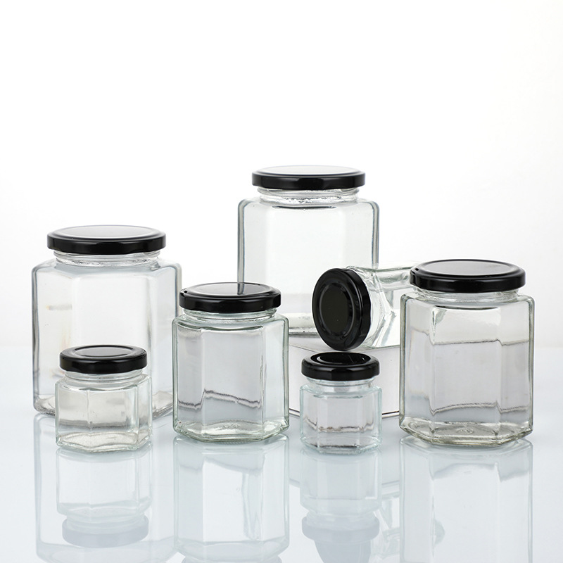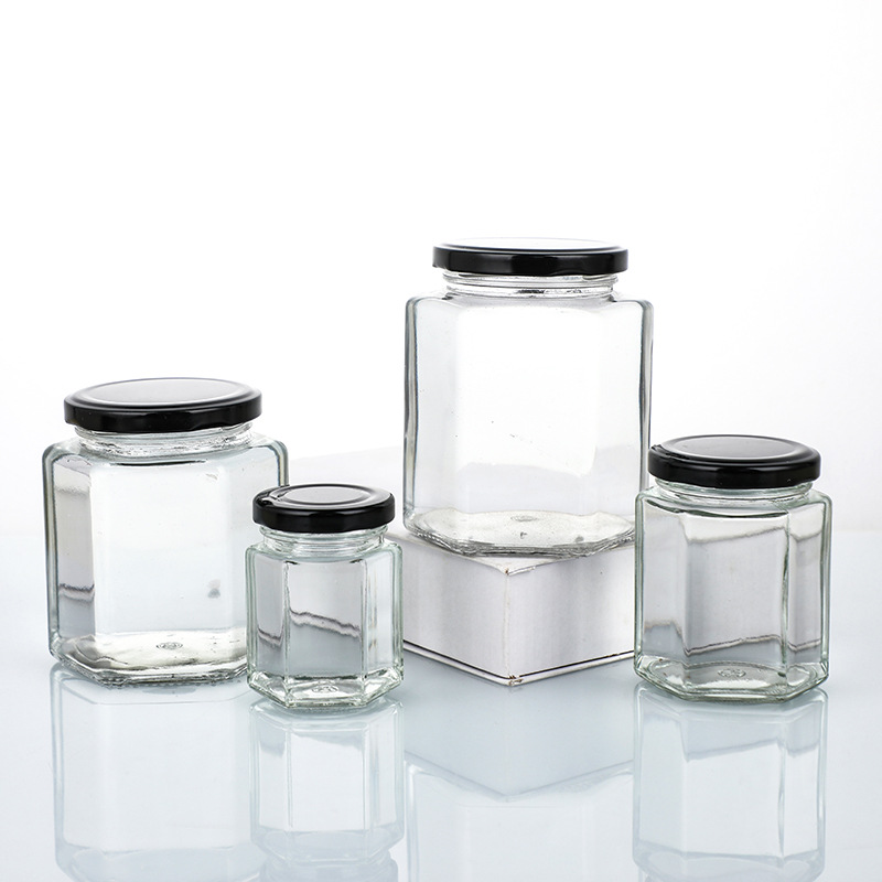 厂家批发六棱蜂蜜玻璃瓶酱菜牛肉酱罐头瓶辣椒酱玻璃罐子酱菜瓶