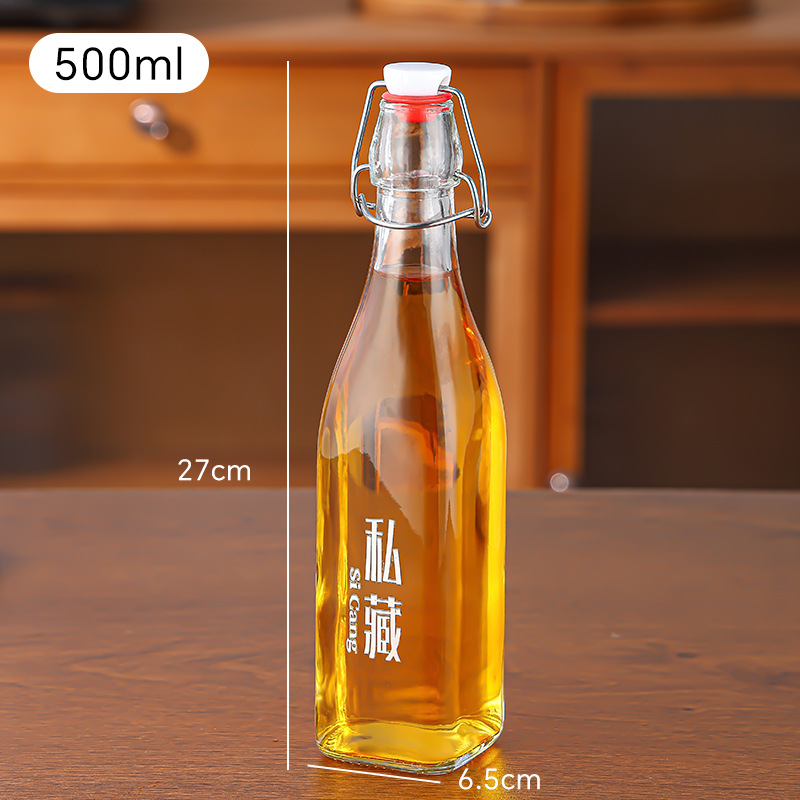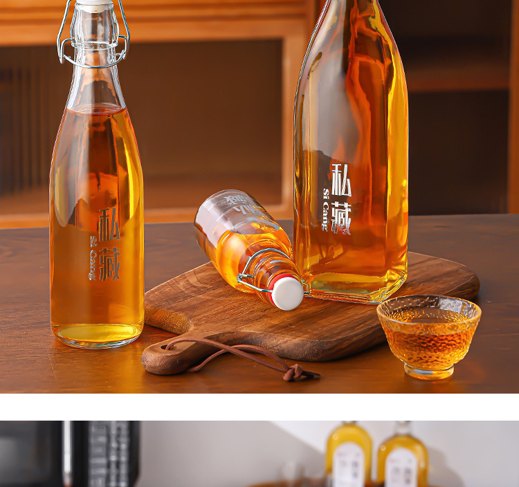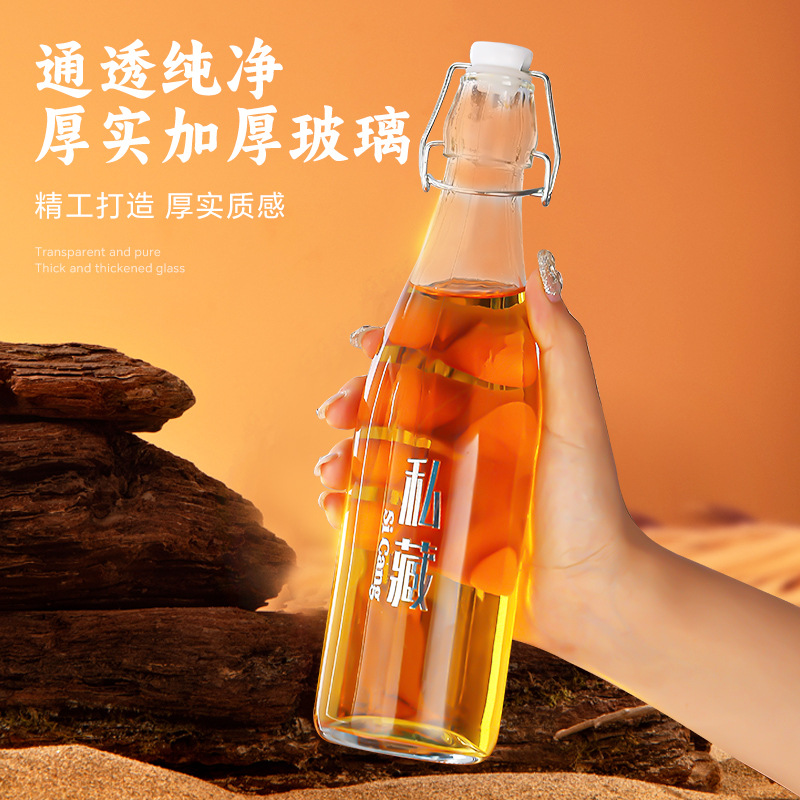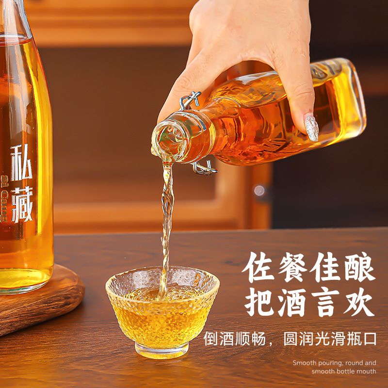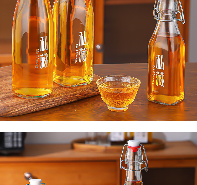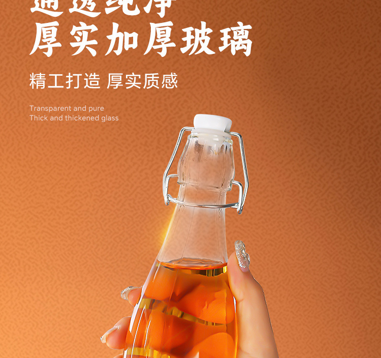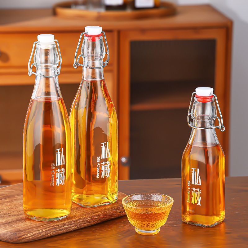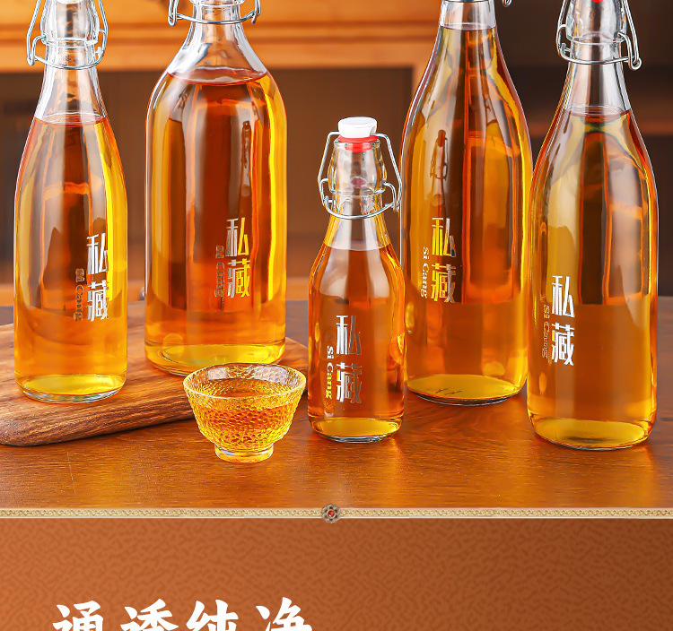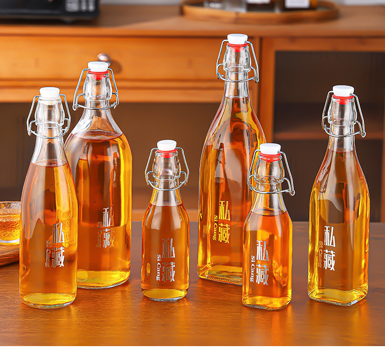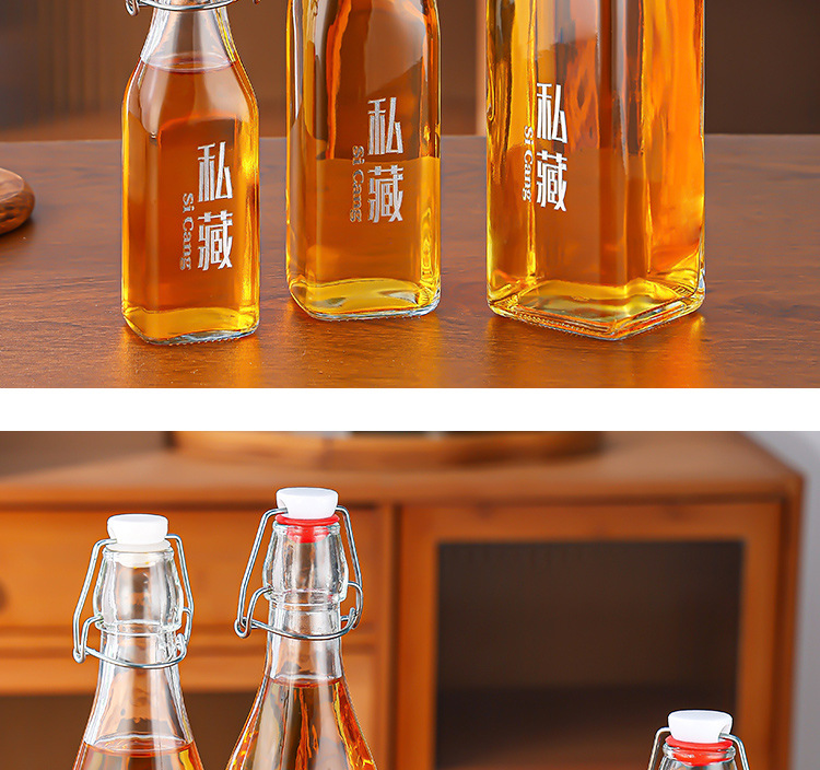厂家直供卡扣玻璃白酒瓶空瓶密封圆形方形透明加厚洋酒饮料分装瓶