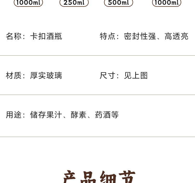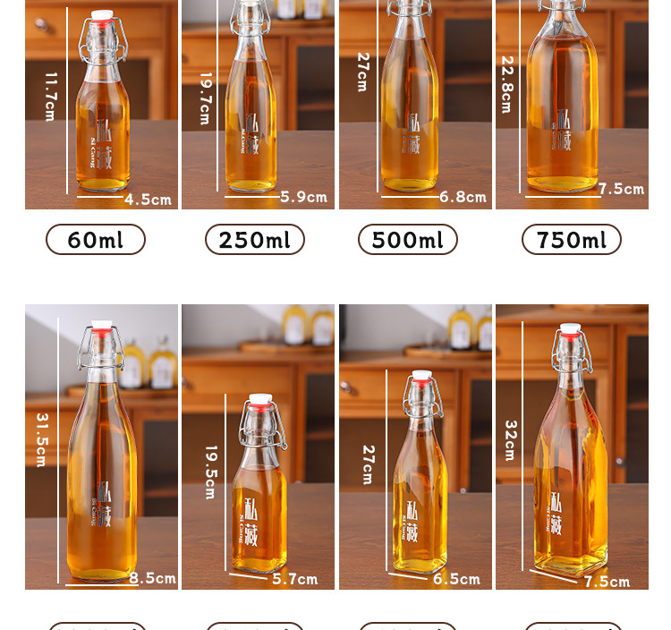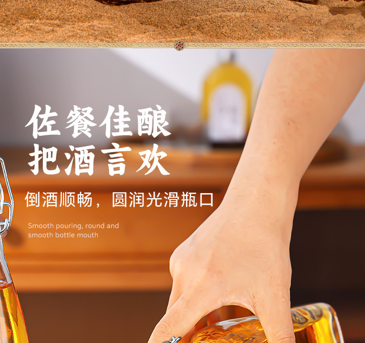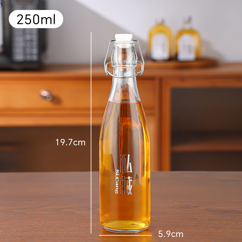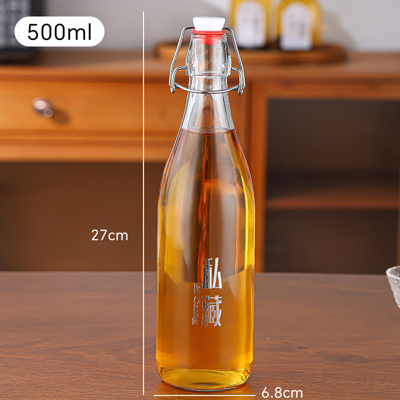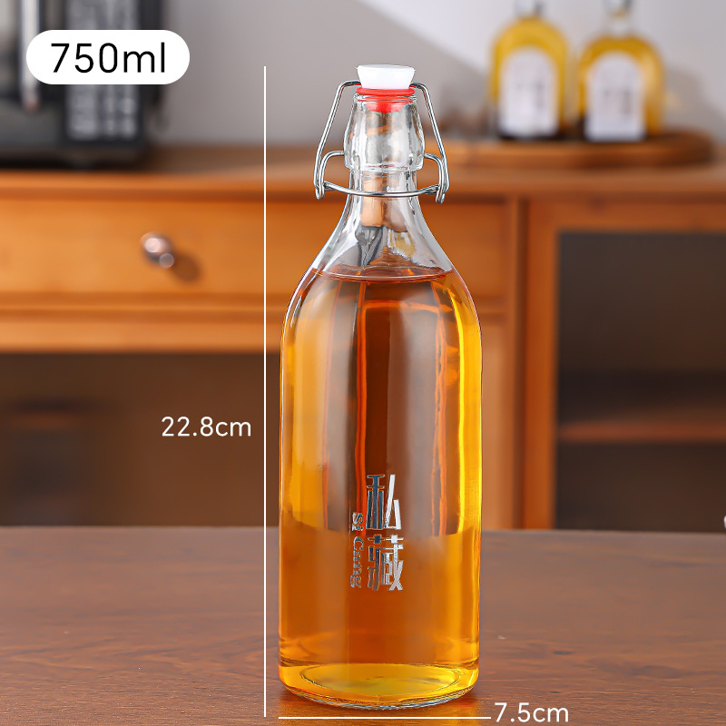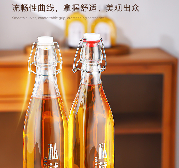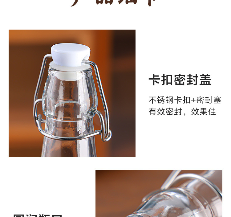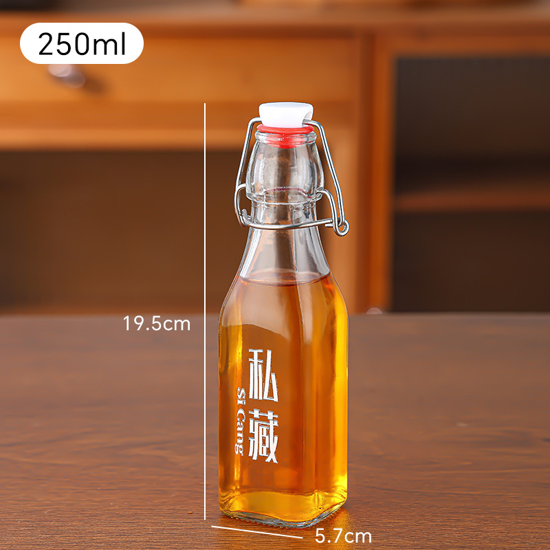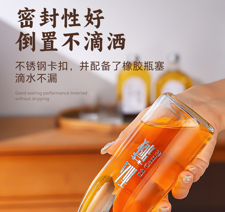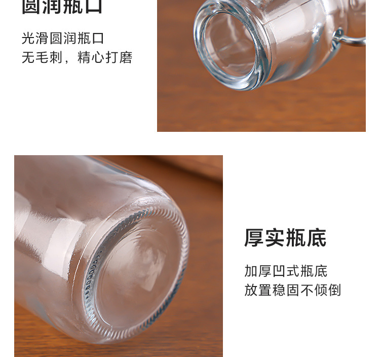 厂家直供卡扣玻璃白酒瓶空瓶密封圆形方形透明加厚洋酒饮料分装瓶