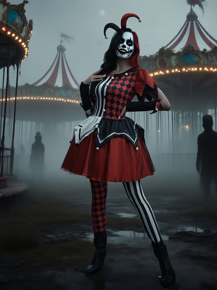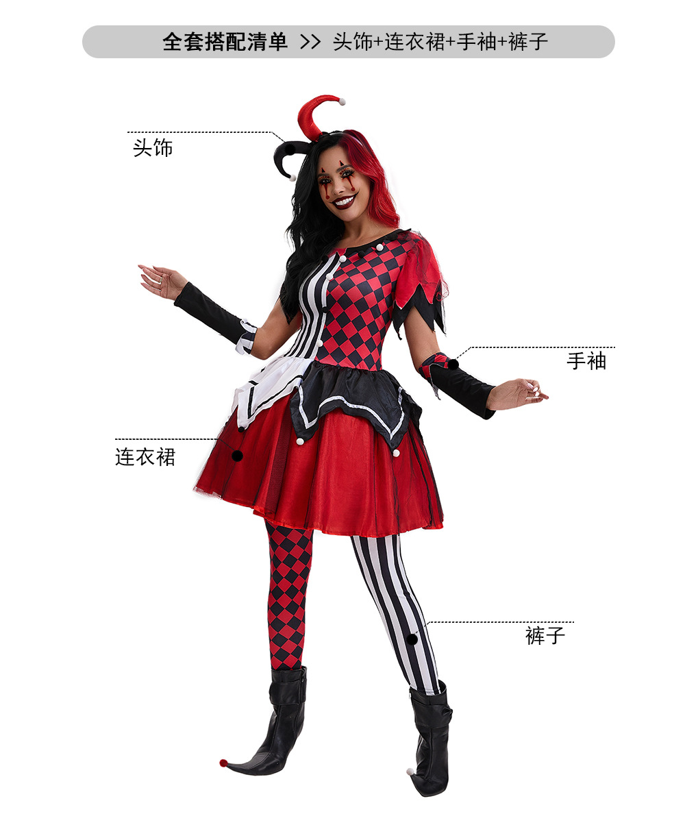 2025万圣节新款恐怖小丑cosplay服装怨灵惊魂节日派对舞台表演服