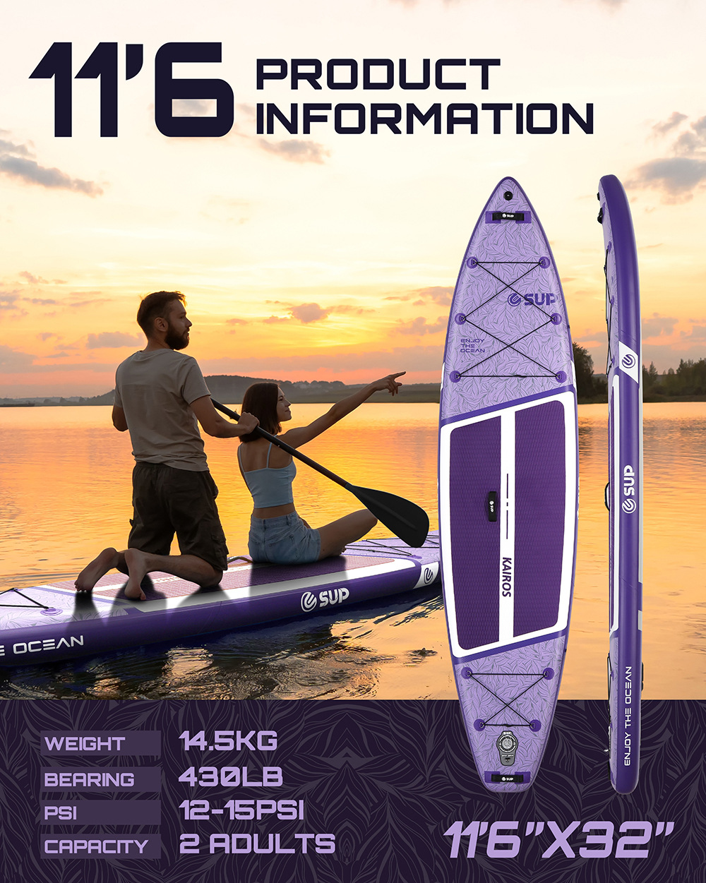ESUP350 情侣进阶充气站立式浆板,旅行ISUP冲浪板