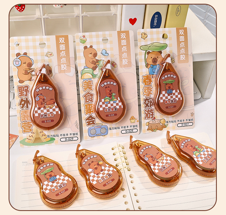 创意卡皮巴拉点点胶学生专用大容量双面胶水豚高颜值手工手账胶带