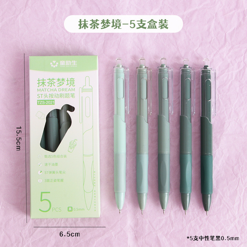 莫兰迪系彩色刷题笔小学生高颜值按动中性笔书写顺滑速干黑笔水笔
