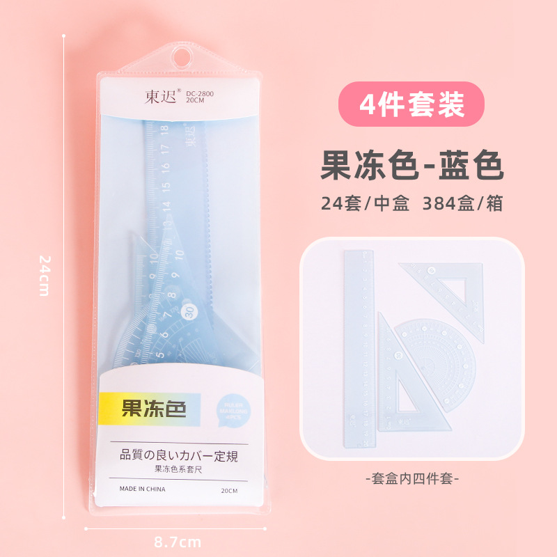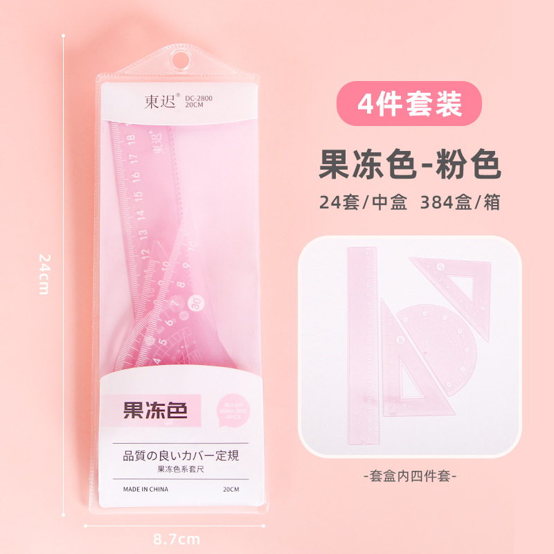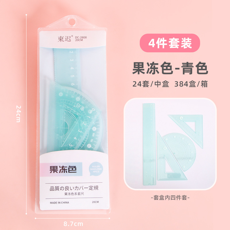 卡通果冻色套尺四件套学生用20cm直尺套装高颜值学习文具用品批发