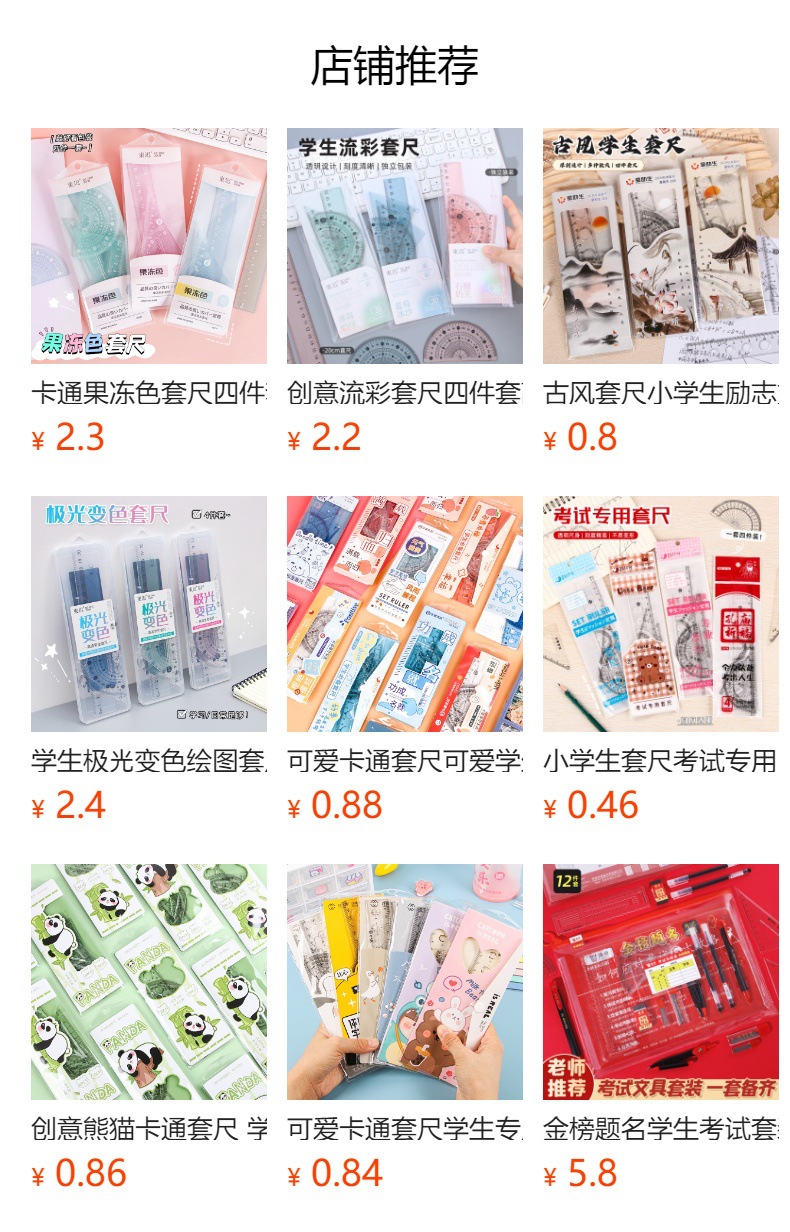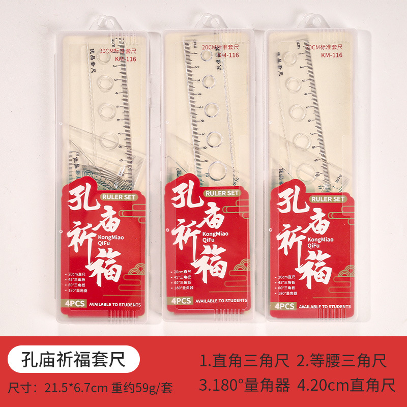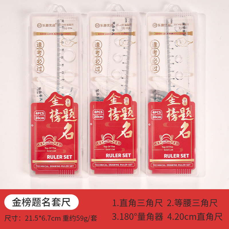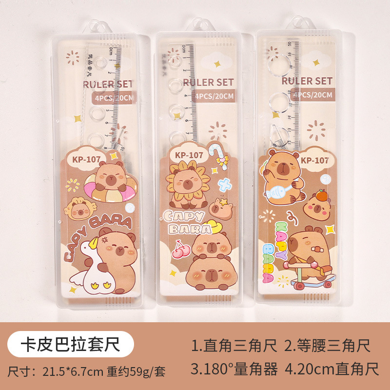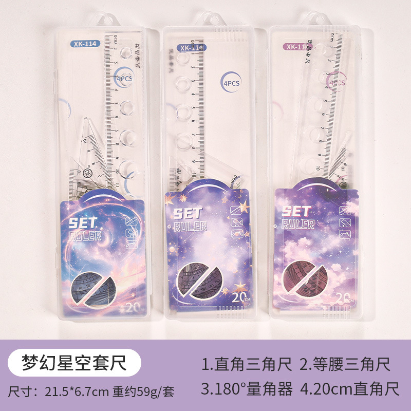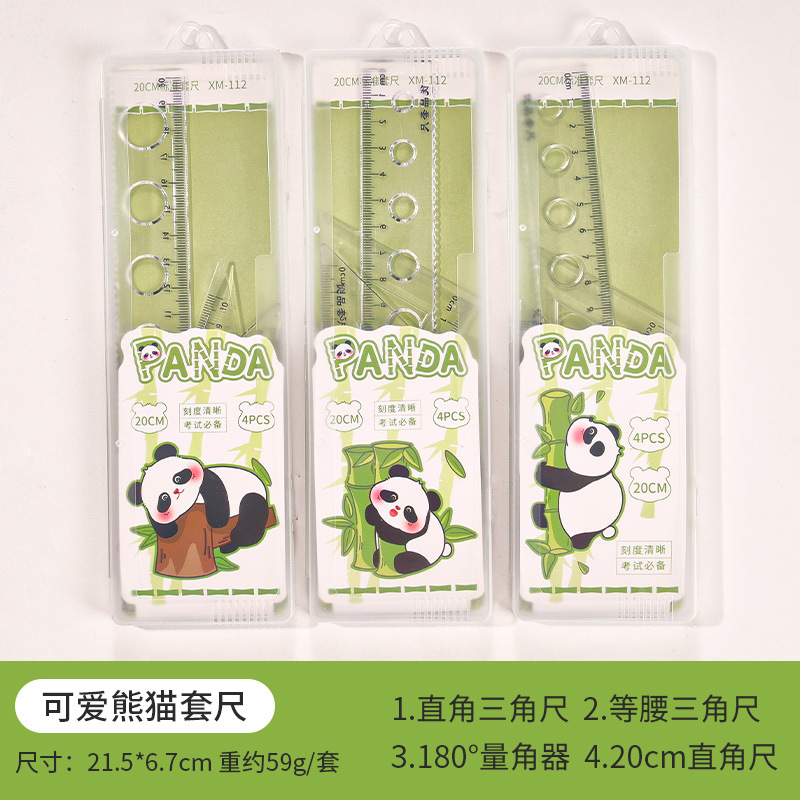 创意卡通尺子套装四件套可爱小学生20cm盒装直尺三角尺量角器批发