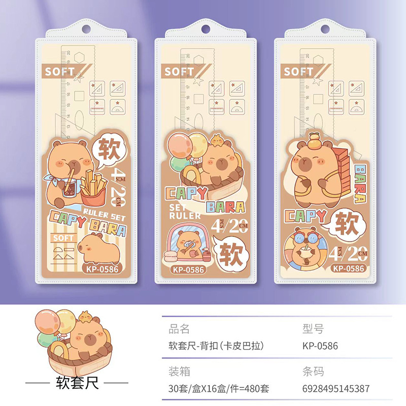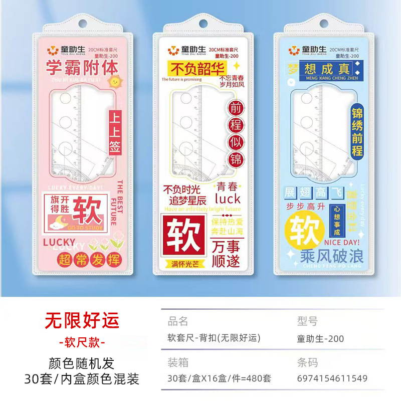 卡通软尺套装文具小学生软直尺4件套折不断三角板量角器儿童尺子