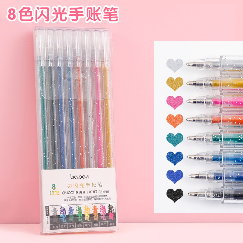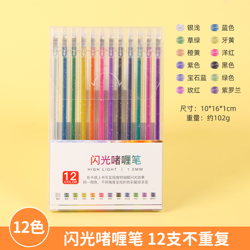 创意闪光啫喱笔8色12色18色糖果彩色记号笔中性笔套装1.0mm荧光笔