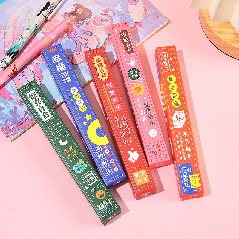 创意卡通励志盲盒笔小学生按动中性笔礼物惊喜签字笔义乌文具批发