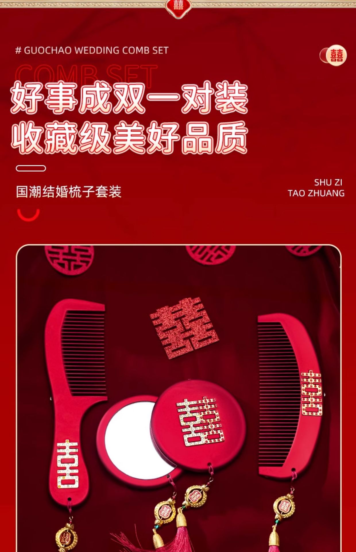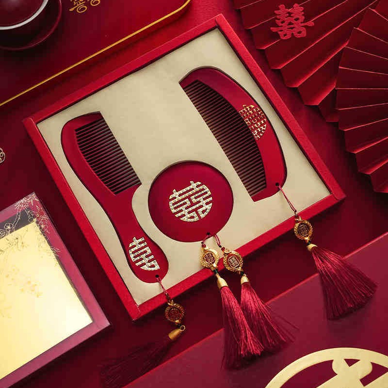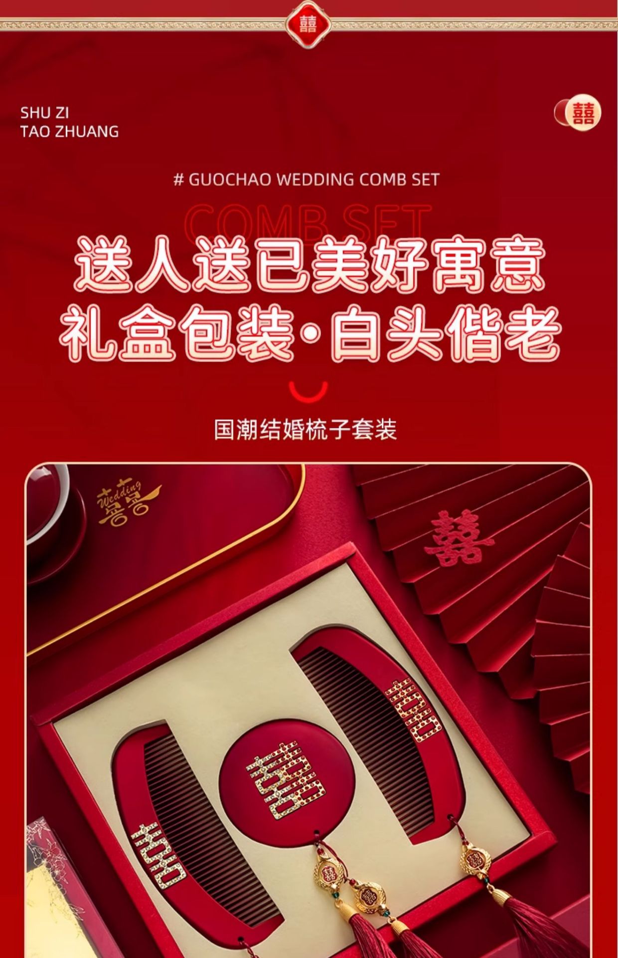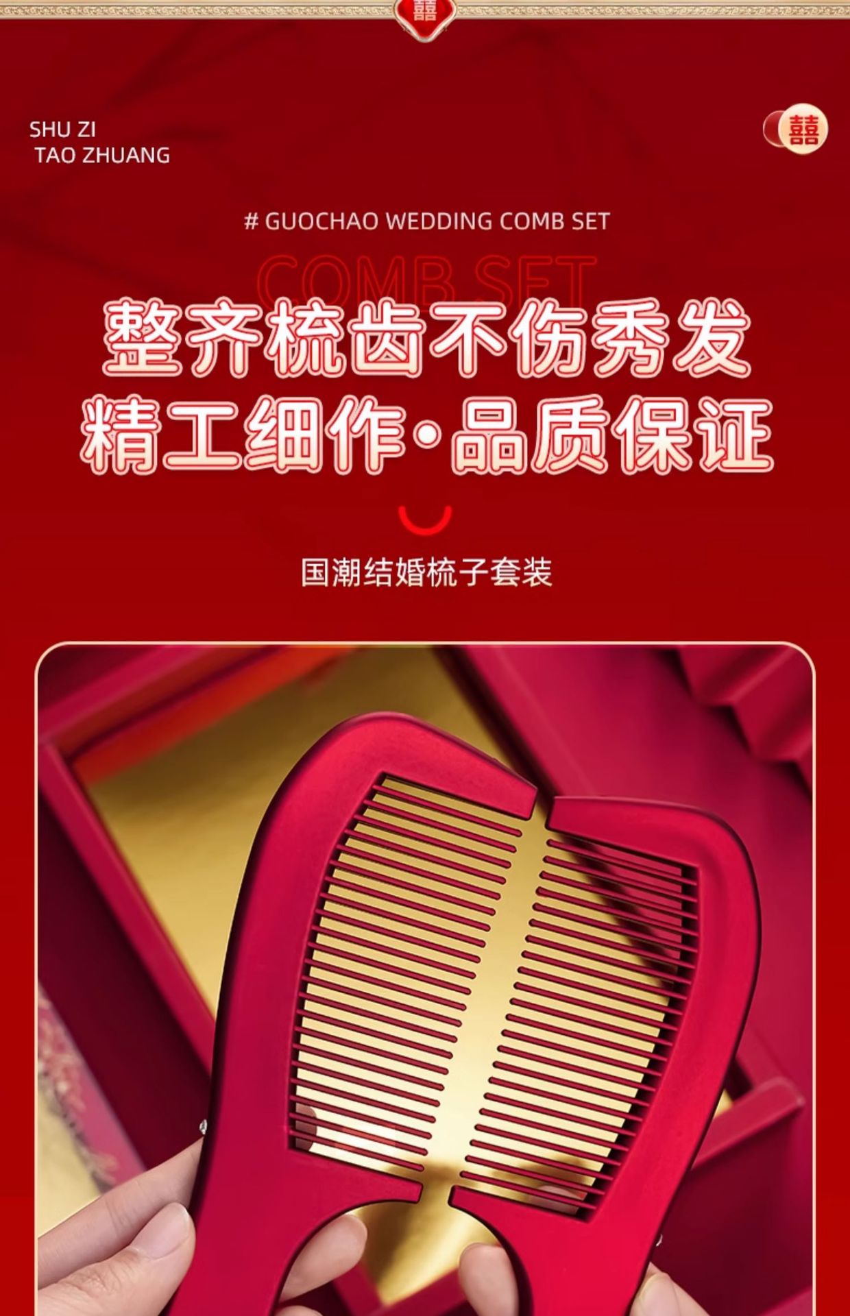 结婚喜梳婚礼陪嫁全套套装红色礼盒新人新娘礼物婚庆女方龙凤物品